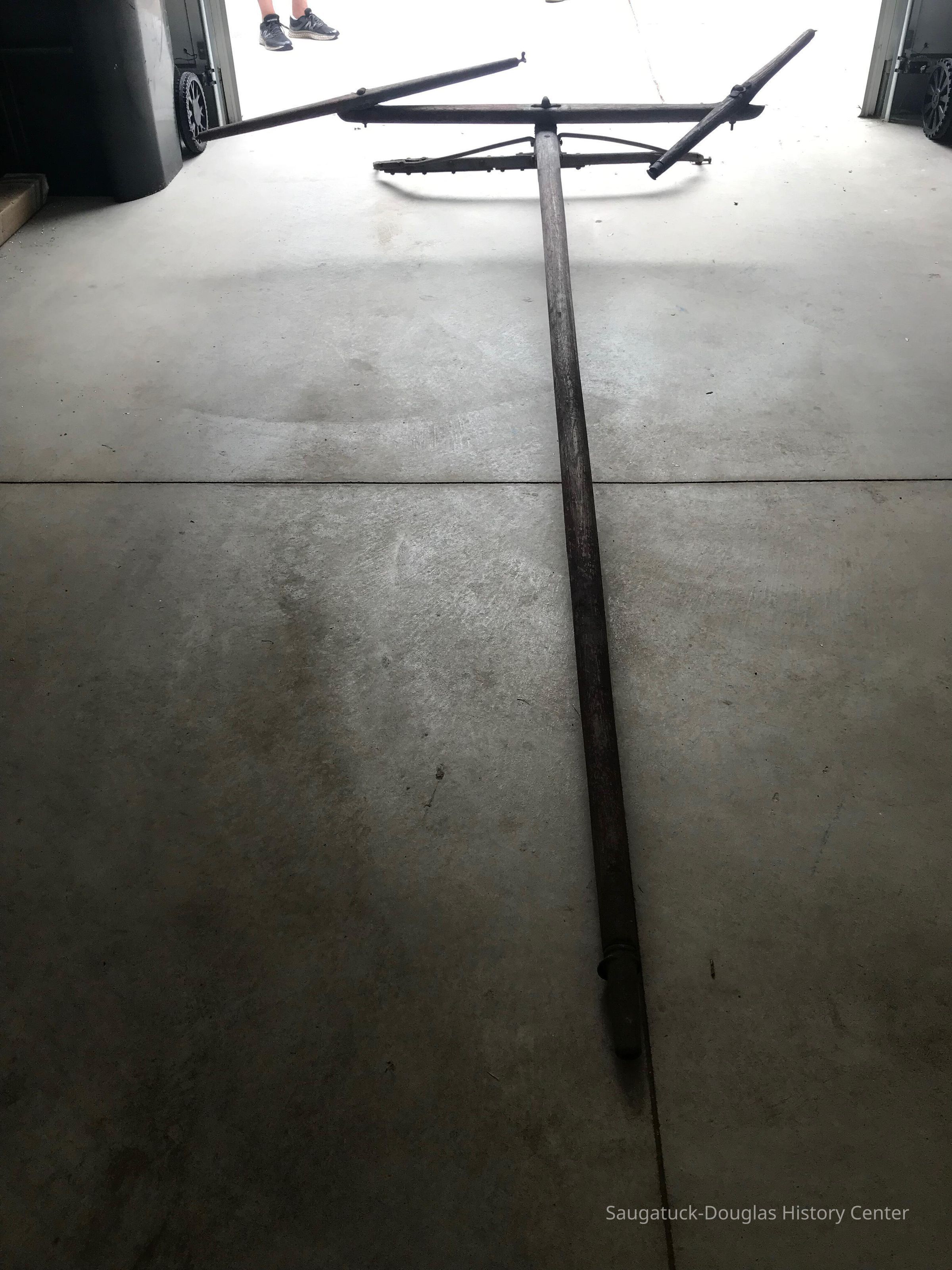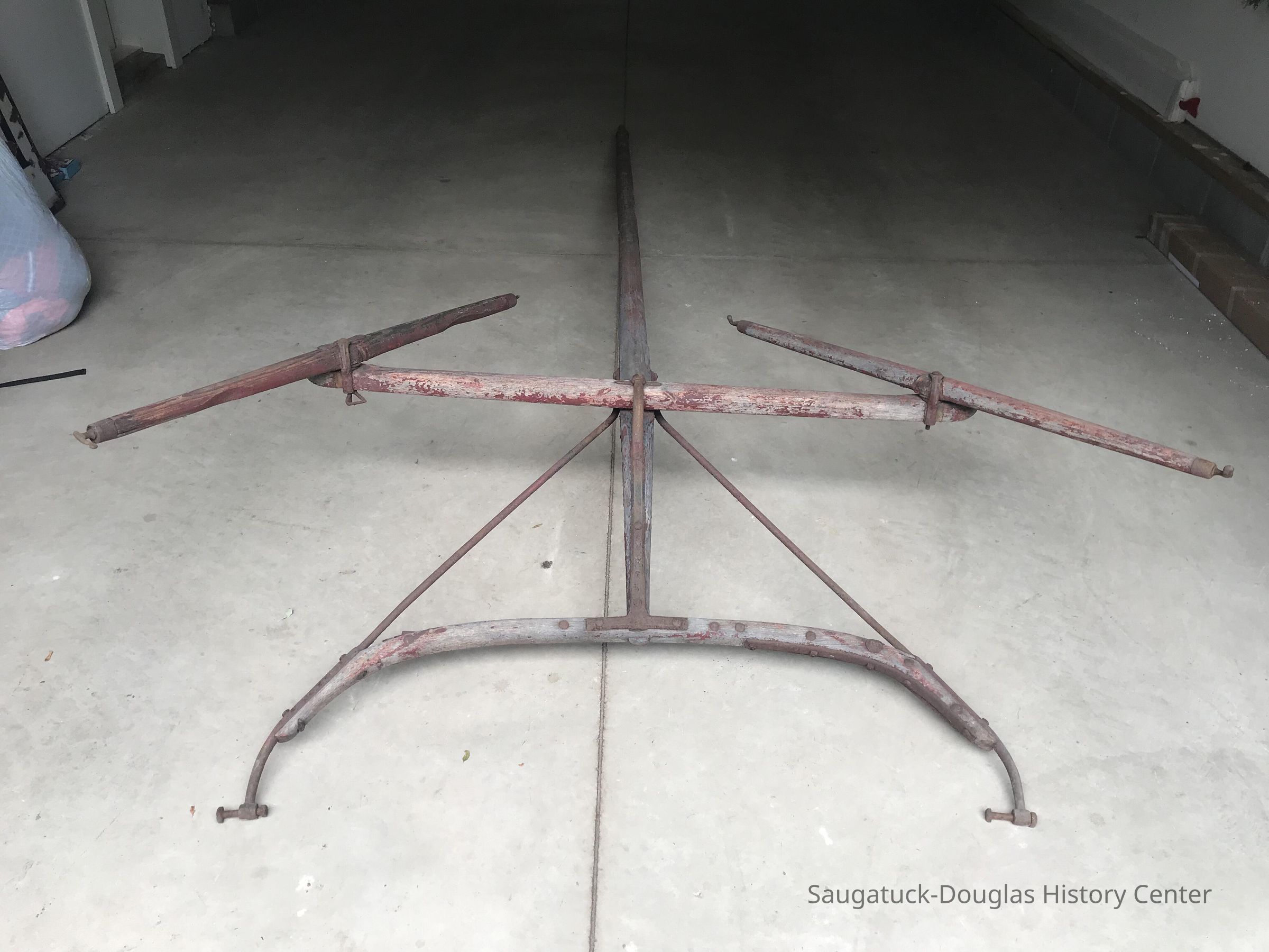 Discovered in enclosed attic in Dr. Walker's house and barn site during restoration. The lightness of the construction suggest it was used for transportation rather than farming or hauling.