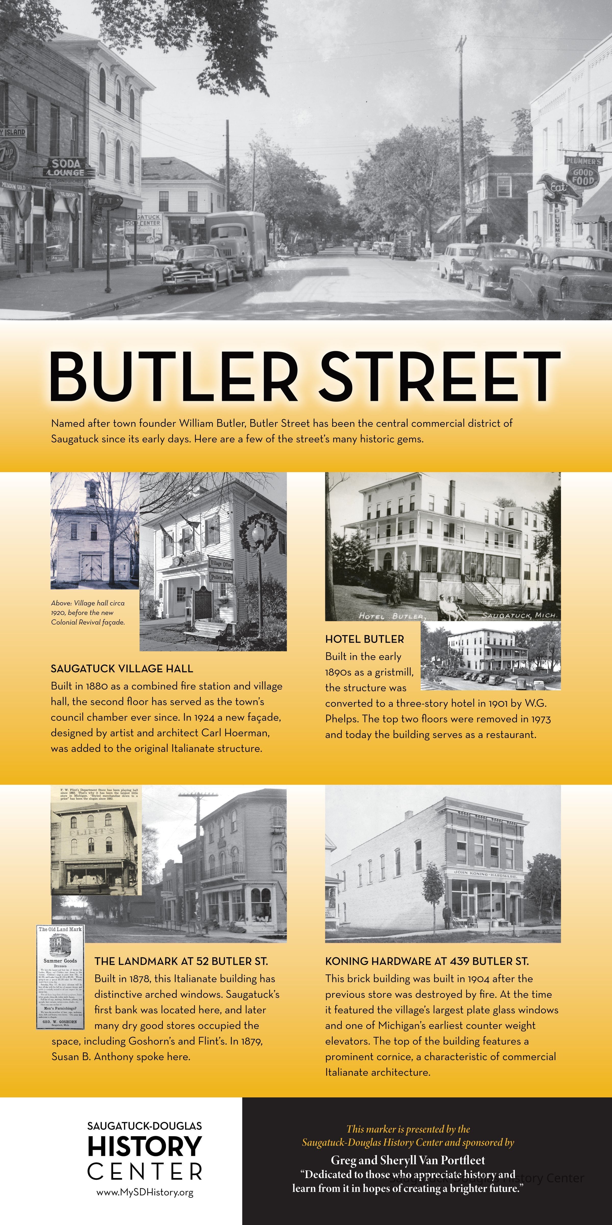 Kirby, Willard John "Bud" 1887-1961Wicks, Frank Herman 1883-1961Beery Field/Douglas Athletic FieldCenter StreetOx-Bow House/Old Library/Douglas Athletic Clubhouse/Methodist Episcopal ChurchDutcher Lodge building 1867-33 W Center/Kerr BuildingEveryday People Cafe/11W Center/Douglas Dinette/Walz or Waltz Meat MarketHappystance/8W Center/Chaps/Auction House/Douglas Cafe/Wiegert's Model GroceryInterurban Railroad 1899-1927Interurban Transit Authority (Bus)Butler Street40 Butler/Hotel Butler/Grist Mill/Haymarket/Dutch windmill102 Butler/Saugatuck Village Hall152 Butler/Kilwins/Flint's Quality Store/Landmark Building/A.B. Taylor Store/Odd Fellow Hall439 Butler/Butler Pantry/Wilkins/Koning/Nies HardwareDouglas Beach, Stairs and ParkLakeshore Drive, DouglasBeachmont ResortOval Beach 1936-presentTurning Basin/Party CoveStout, Grover "the Rover"Bird's Bath HouseSaugatuck Beach House