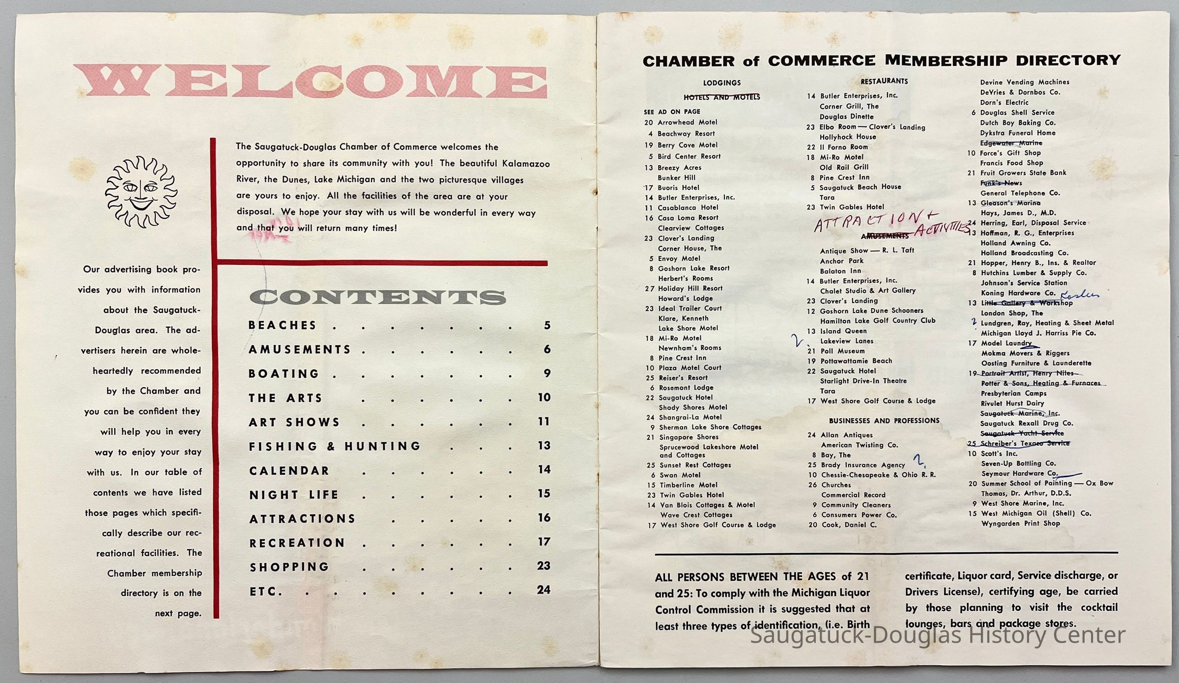 A snapshot of area businesses in 1963. On the bottom of page 3, persons between the ages of 21 and 25 were advised to bring three forms of identification if they plan to visit bars and lounges.