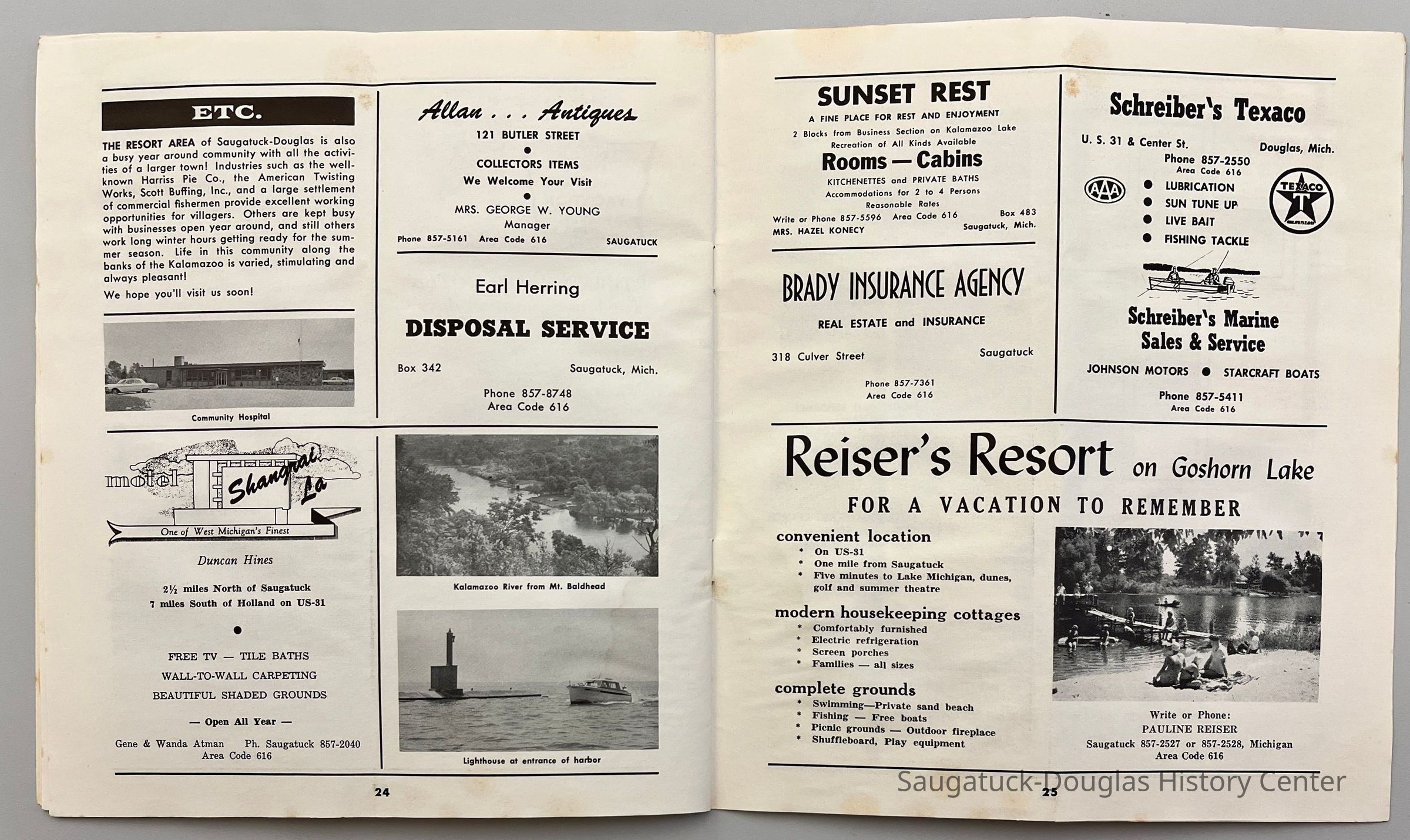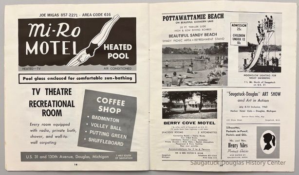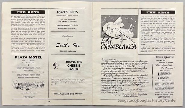 Beachway Inn/Ferry Inn c1905-Saugatuck Beach HouseEnvoy MotelBird Center ResortCaptains Quarters/Swan Motel236 Culver/Coast 236/Hercules/Loaf and Mug/Simonson Studio #1Shell Gas Station, DouglasRosemont Inn/Rosemont Lodge/Rose MontGoshorn Lake ResortWhite Dog Inn/Jocko's/Pine Crest Inn 1938-2012110 Butler St./Urban Found/Bay Building/Redebaugh homeDouglas Building Center/Hutchins Lumber and Supply Co.West Shore Marine/West Shore Ferry landing/Tisdale Boat Livery237 Butler/Puddingstone/Sinbad/Carl Walter's/Community Cleaners/Roche buildingSherman Lake Shore Cottages56 Blue Star Hwy/Pines Motor Lodge/Plaza Motel241 Butler/Momentum/BrigadoonHotel Casablanca/Grace Hotel/Roamers Inn 1904-1969Dune Rides650 Water/Saugataco/River Market/Gleason's Party StoreLittle Gallery & WorkshopBreezy Acres MotelIsland Queen I and II PaddlewheelersVan Blois Cottages & Motel40 Butler/Hotel Butler/Grist Mill/Haymarket/Dutch windmillWest Michigan Oil CompanyTimberline Motel405 Park/Unsalted Boat Rentals/Casa LomaBuoris Hotel132 Mason/'Round the Corner Ice Cream Shoppe/Model Laundry/Metzger BuildingWest Shore Golf Course 1920-Isabel's Market & Eatery/NorthernLights/310 BSHwy/Zing/Blue Moon/Mi-RoPottawattamie Beach ClubBerry Cove MotelNiles, Henry840 Lake/Arrowhead ResortOx-Bow/Summer School of ArtCook, DanSingapore ShoresPoll Automotive MuseumHopper, Henry B.Fruit Growers State Bank220 Water/Coral Gables/Hotel Saugatuck/Columbia Hotel/Leiendecker's Inn/Ebmeyer Shingle MillHotel Saugatuck/900 Lake/Twin Gables Hotel/Singapore Country Inn880 Holland/Southerner/Elbo Room/Clover's LandingDouglas Estates/Douglas Trailer Court/Ideal Trailer CourtMotel Shangrai La c1950-Allan Antiques/De EssEarl Herring Disposal ServiceSunset Rest Tourist CabinsBrady/L.R. Brady Insurance CompanyDouglas Lighthouse Realty/Schreiber's Texaco Service StationReiser's Resort612 Park/Holiday Hill