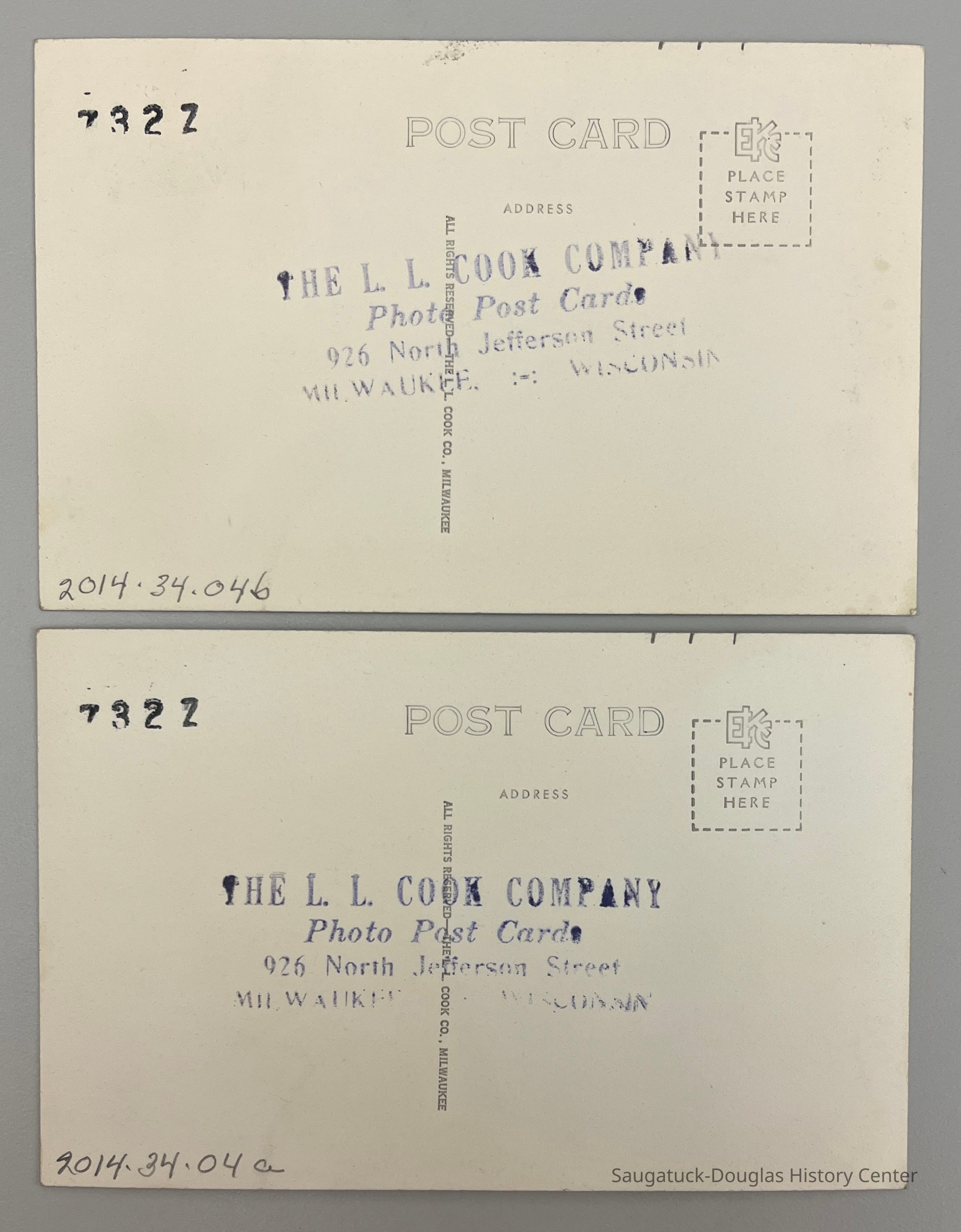 Two photographs (postcards) of the Soda Lounge interior. Located on Butler Street in Saugatuck