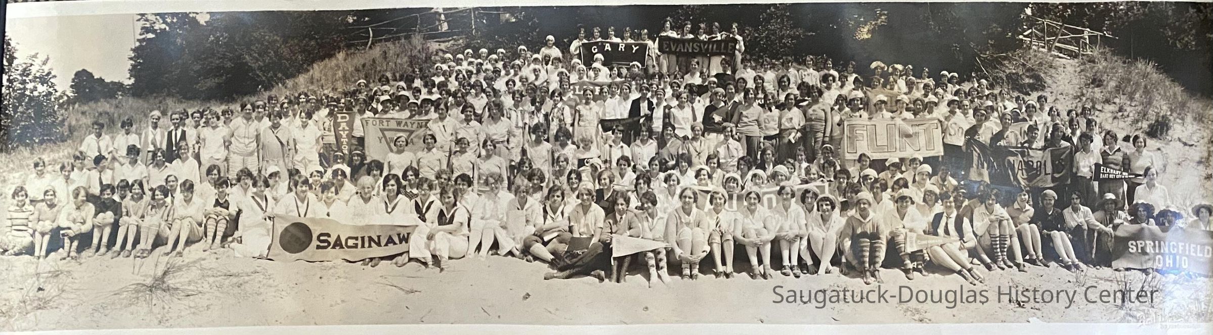 Postcard (real photo) of Pinecrest Cabin, (Camp Gray) Old Chain Ferry, View from Mt. Baldhead, both in Saugatuck.