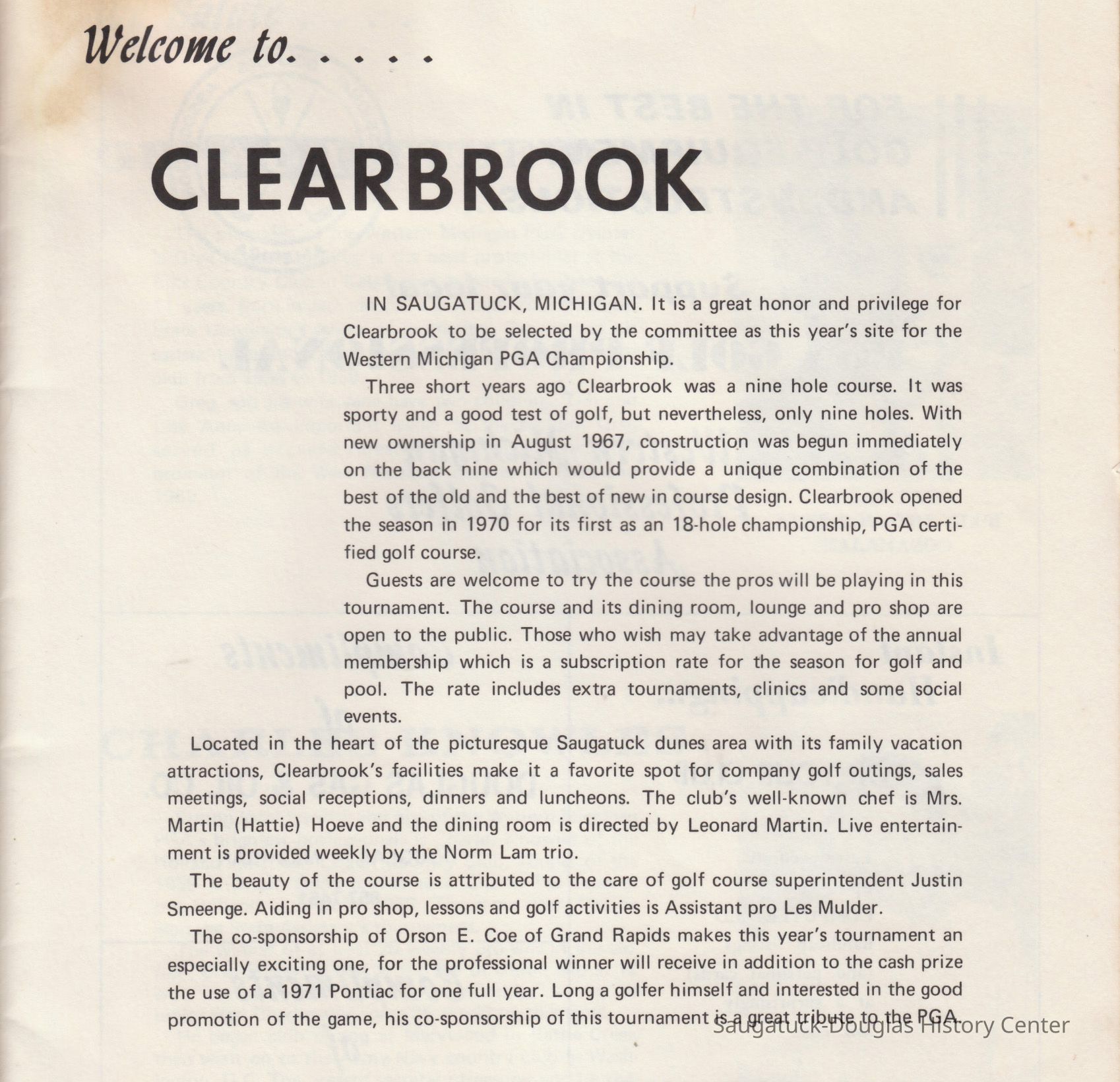 Clearbrook Golf Club/Hamilton Lake Club/Saugatuck Golf Club