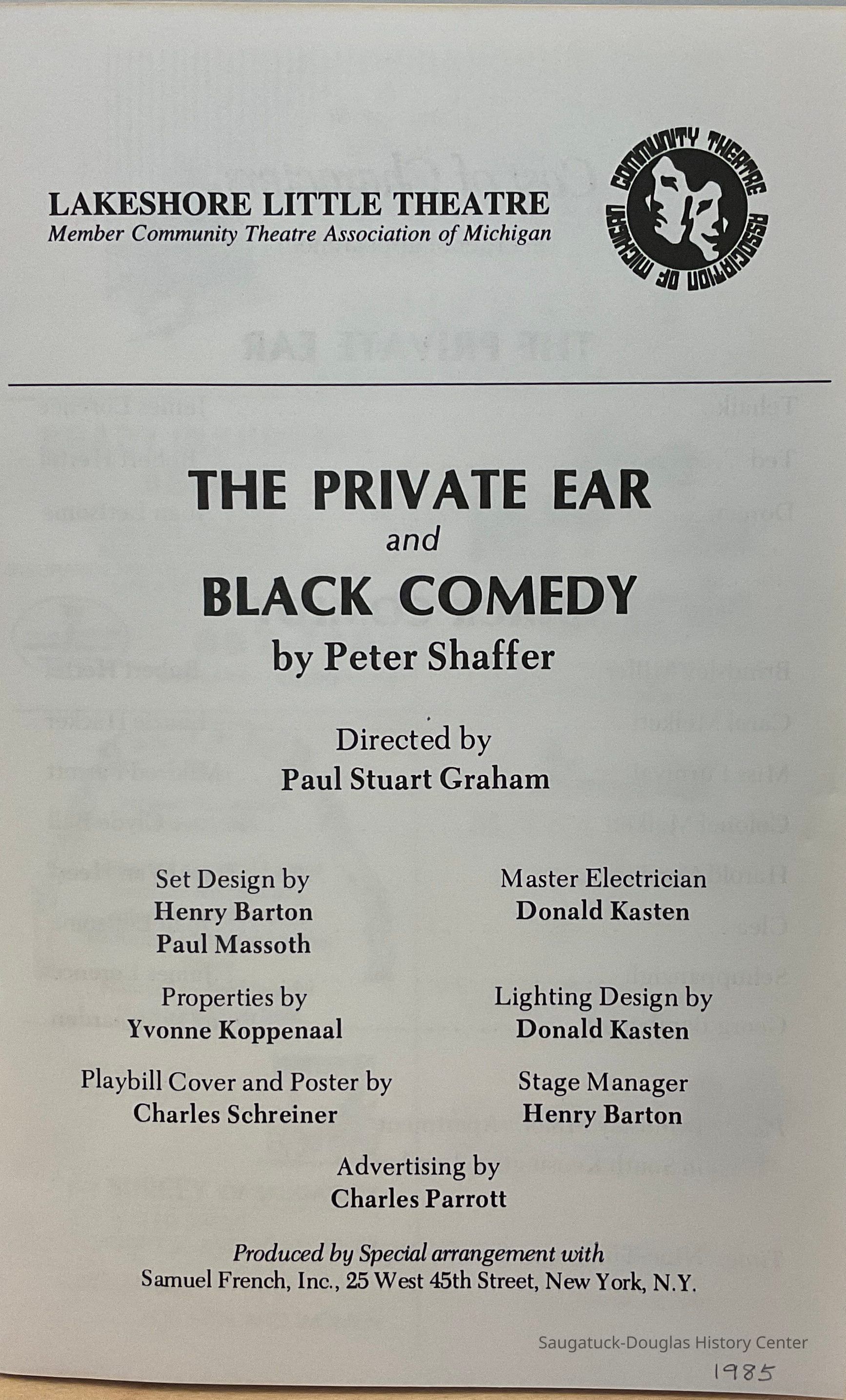 Two program from the plays put on by the Lakeshore Little Theater in Saugatuck (At the Women's Club) in 1984.