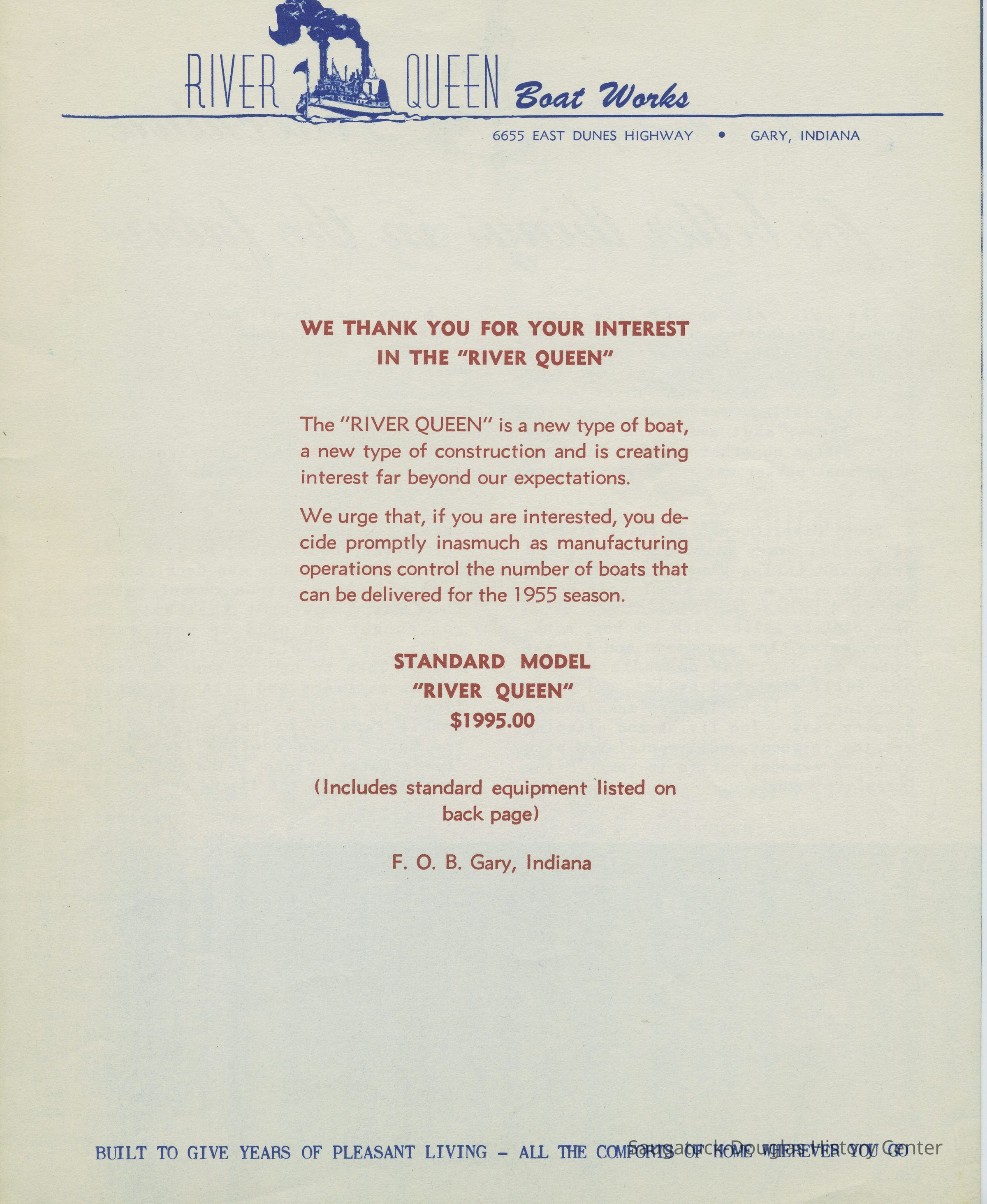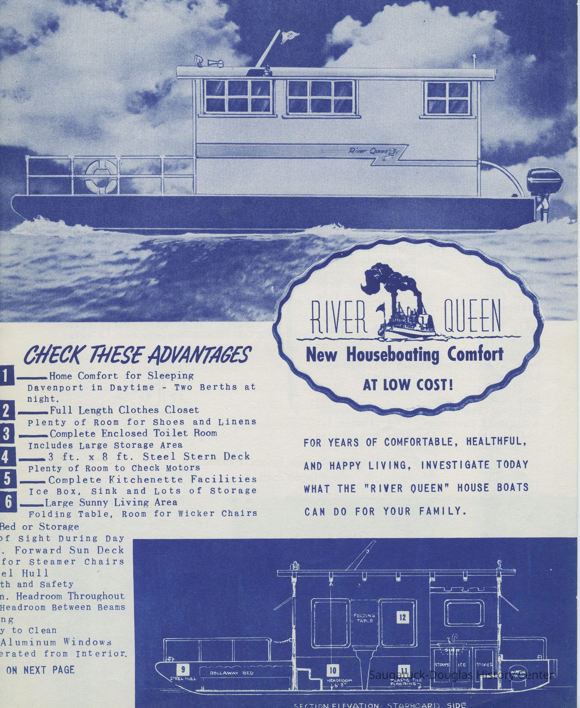 River Queen boat works, originally from Gary, Indiana, was one of the last boat building operations in Douglas. These distinctive, sturdy and comfortable steel house boats were once commonly seen in local waters.
