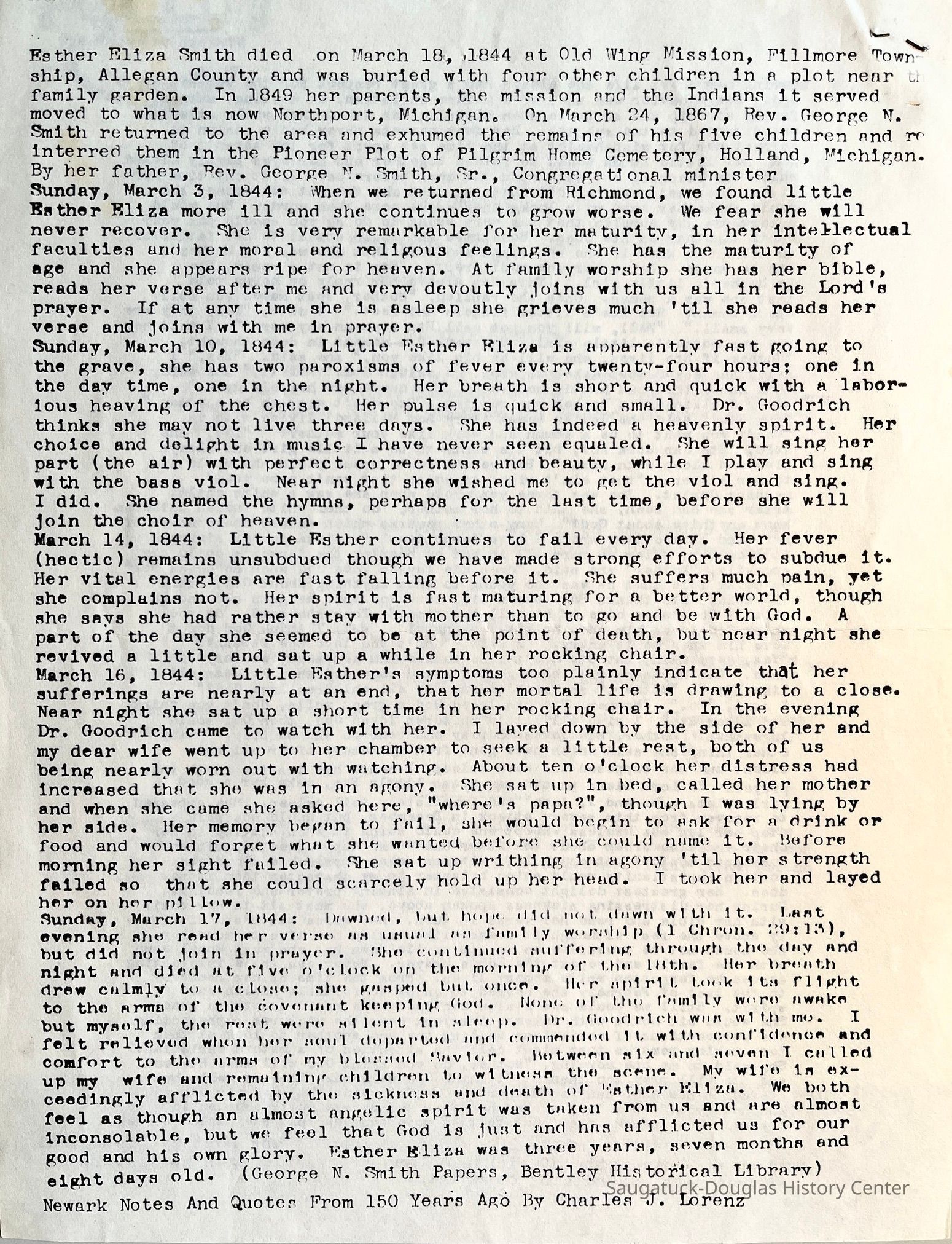 The Life and Death of Esther Eliza Smith, born August 10, 1840 "An Early Child of Newark" by her mother, Arvilla Almira (Powers) Smith.
