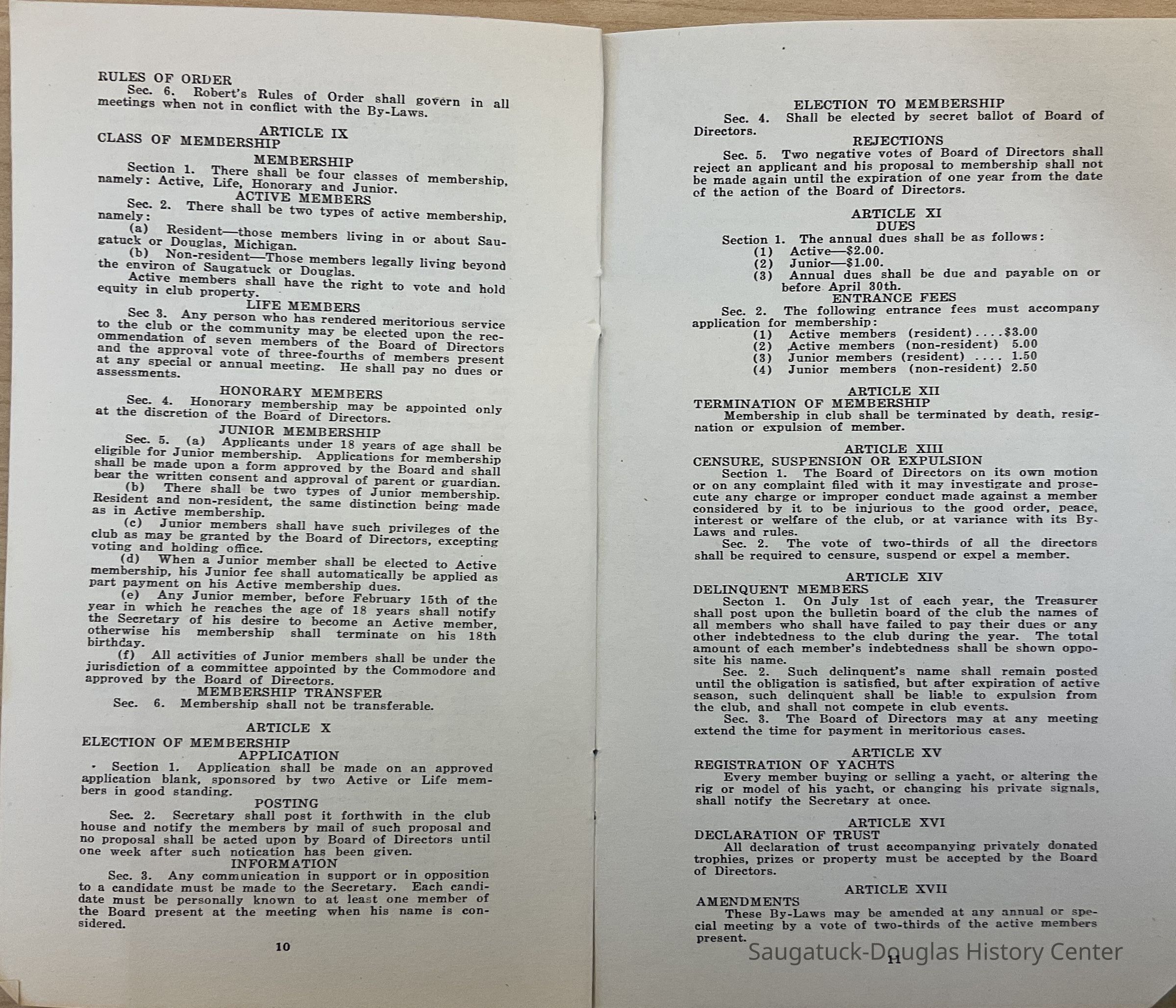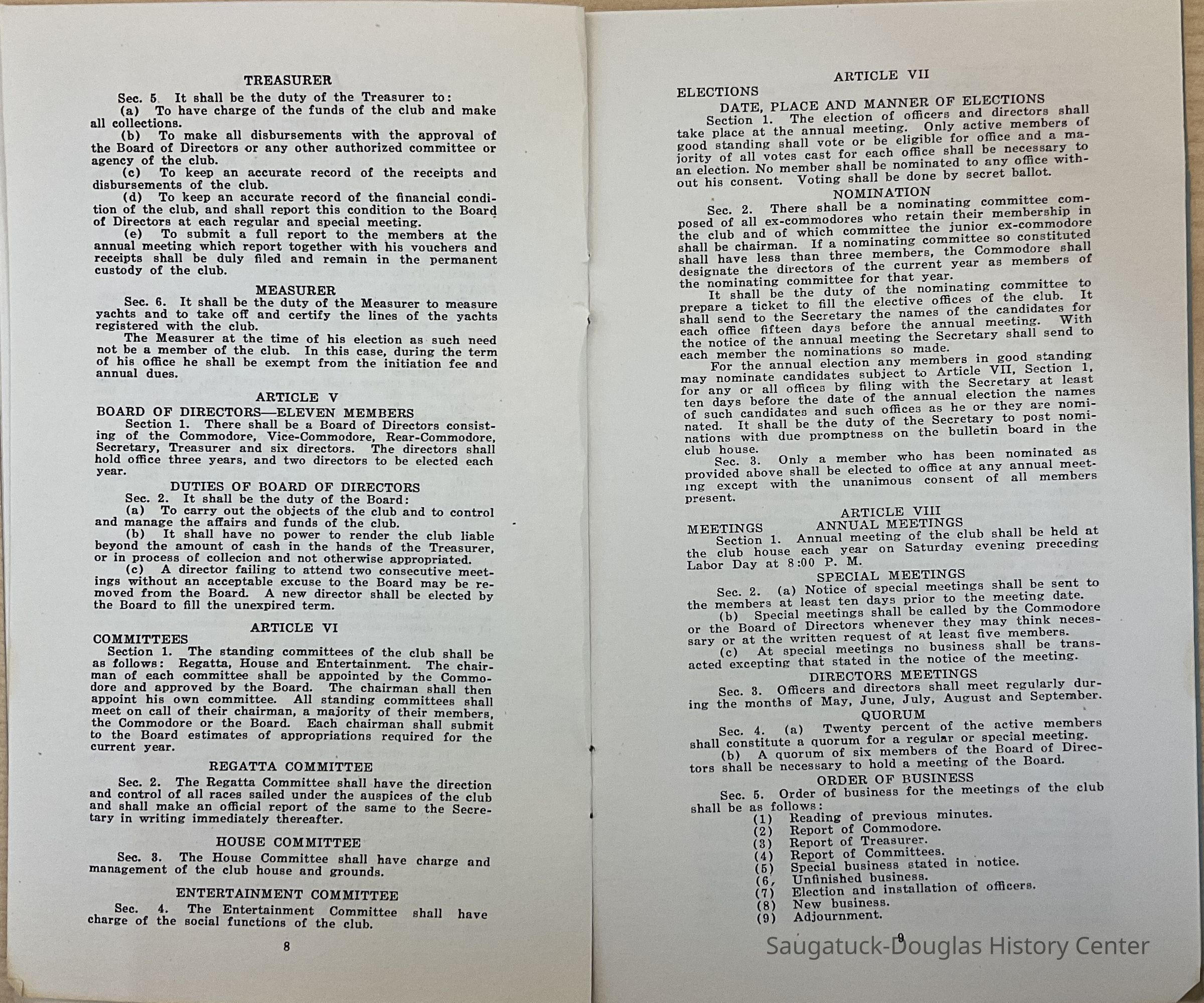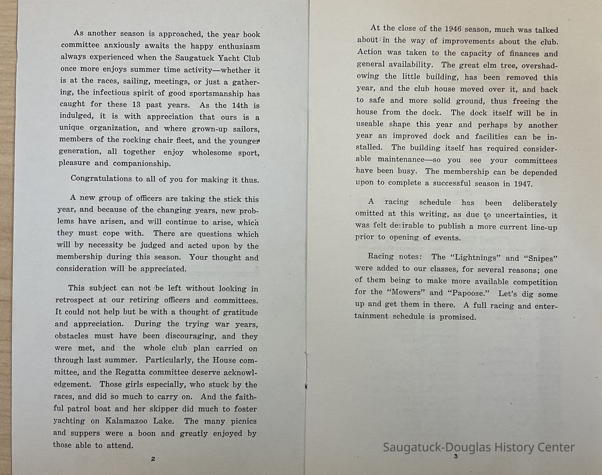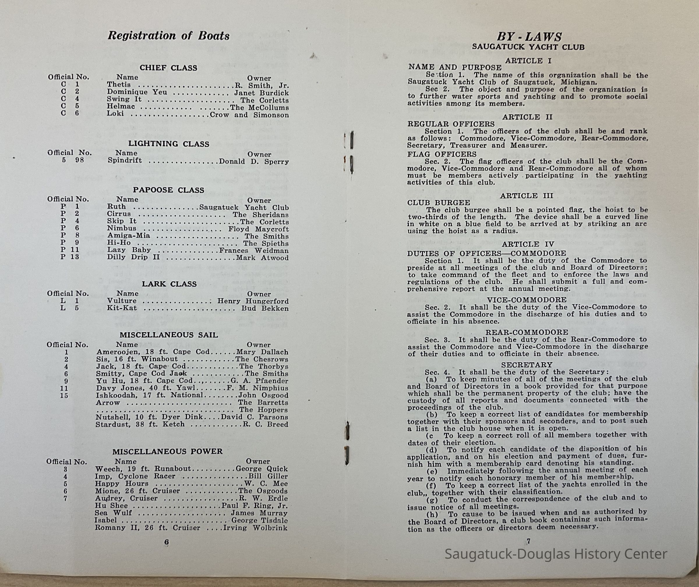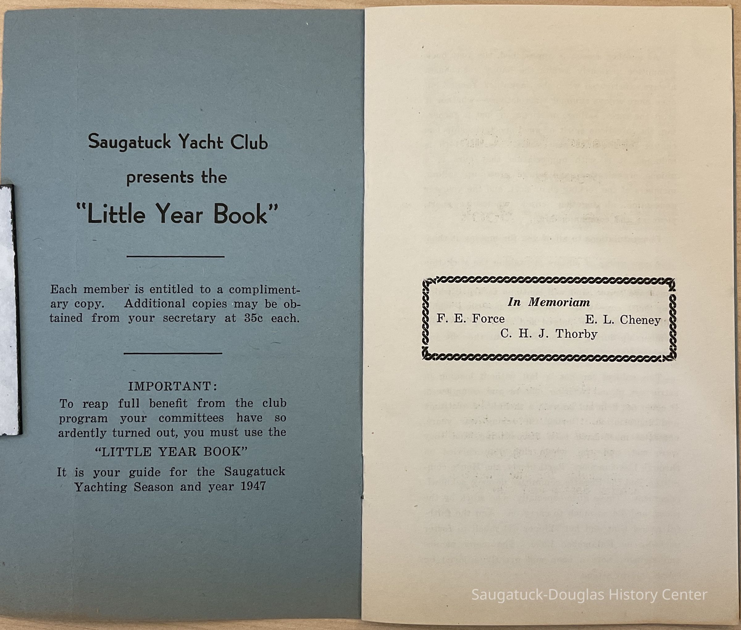 Small 4" x 7 1/4" year book for 1947 listing membership, boat registration classes, by-laws.