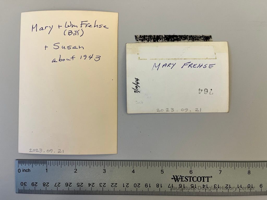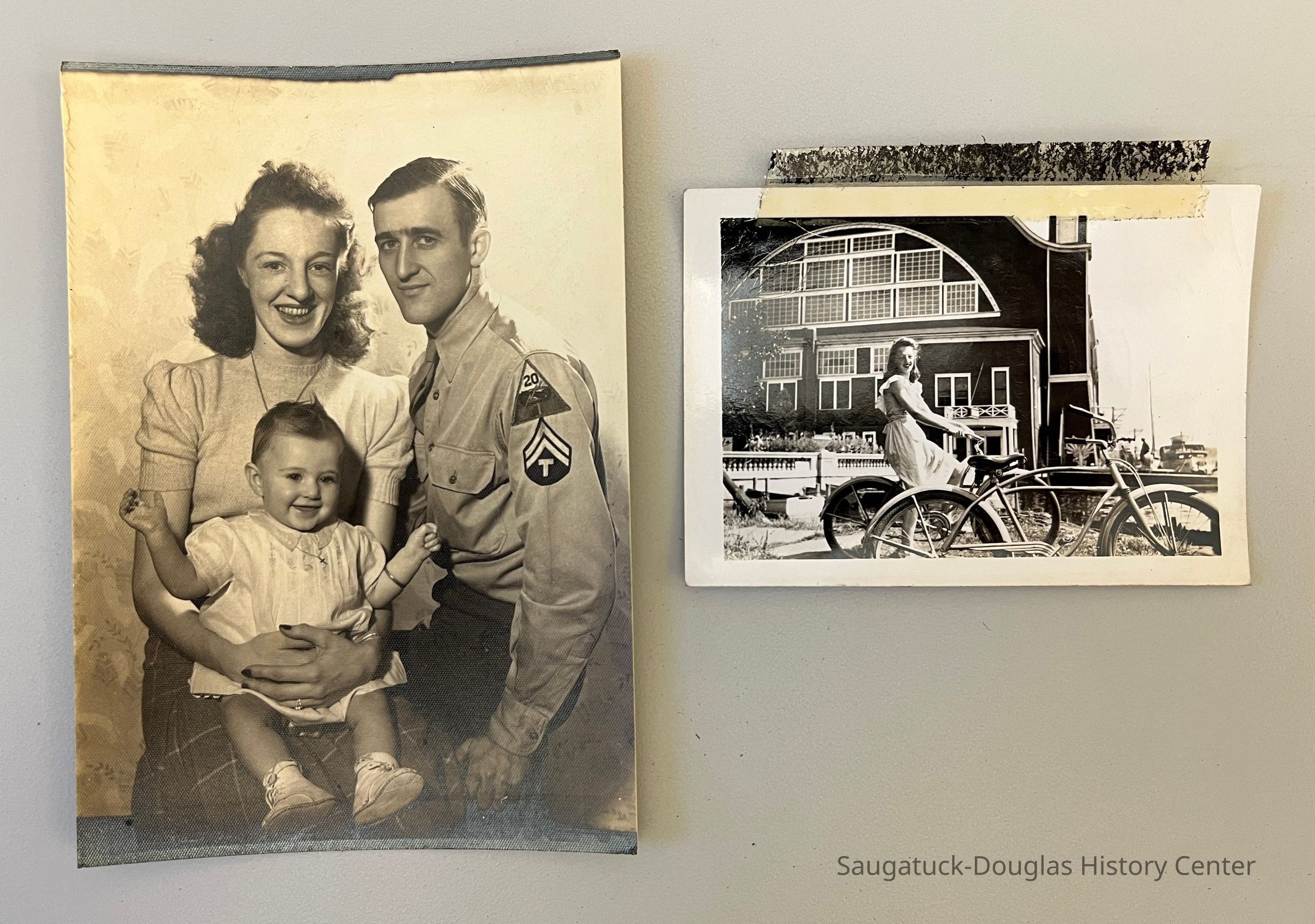 William J. "Bill" Frehse (1920-2001), wearing his army uniform, his wife Mary Katherine Sauer (1915/6-2010) and their child Susan Kay (Parfet) Frehse (1943-).
