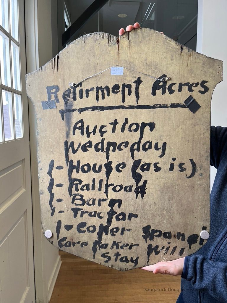 From SDHC/SCA exhibit "Signs of the Times" 2009 sign:Carl Hoerman, Architect / Erland Sundin, Builder original site: 2420 Lakeshore Drive collection: Recent gift to the Saugatuck-Douglas Historical Society by Patrick Shay Building site signboard—probably painted by Hoerman, in the Arts&Crafts manner of the time. This construction sign of 1937 marked the construction of the Merrill “cottage” at 2420 Lakeshore Drive near Pier Cove. Carl Hoerman left his native Germany as a young man to study and practice architecture in Chicago but fell in love with the Saugatuck area’s natural beauty. He spent most of his adult life painting the area landscape and designing homes, many of them large Arts&Crafts “summer homes,” but also reconstructed Saugatuck Village Hall, Congregational Church. Erlin Sundin, Swedish immigrant, was a well-known carpenter (with his brother Olaf) of Goshorn Lake.