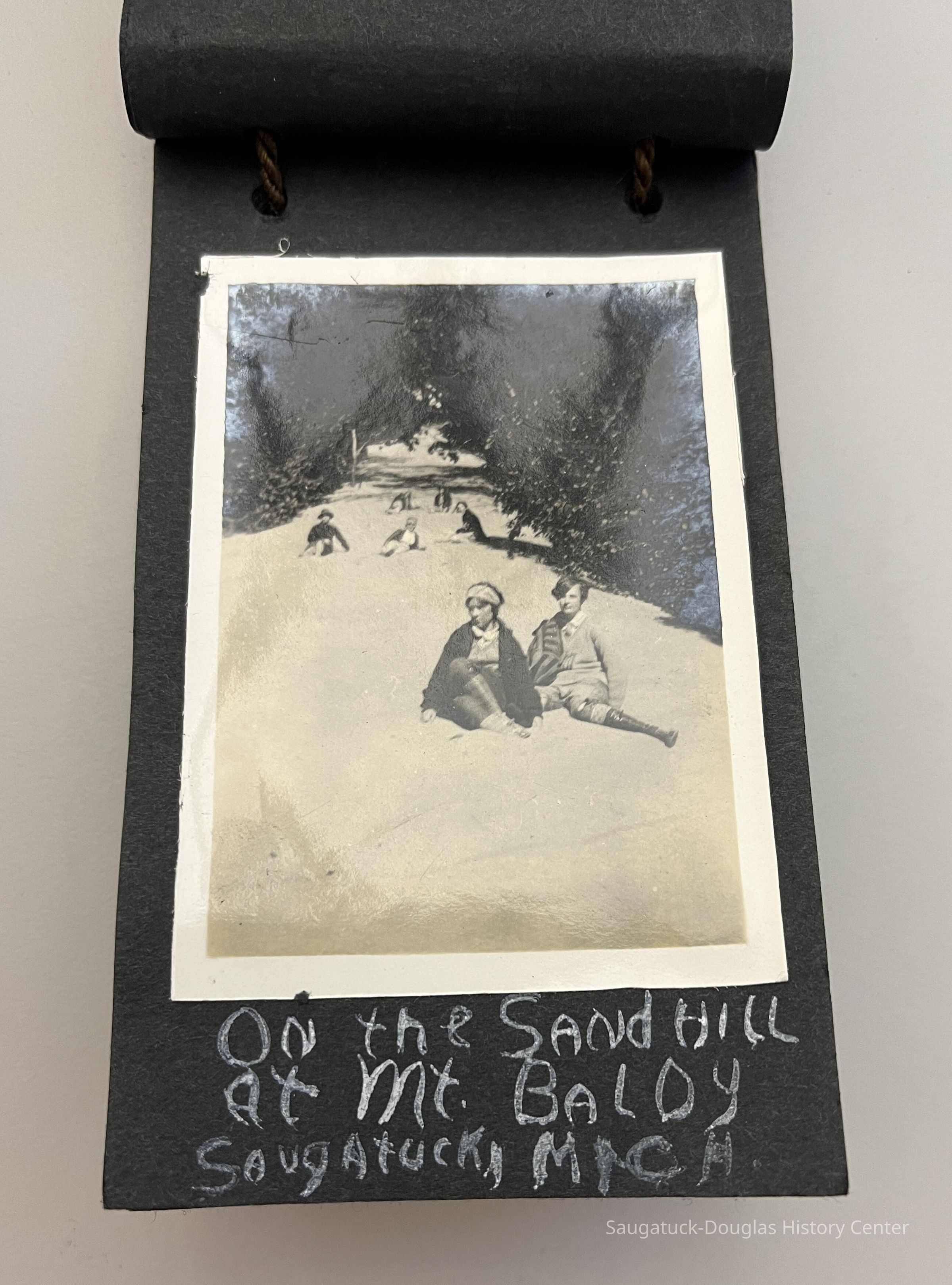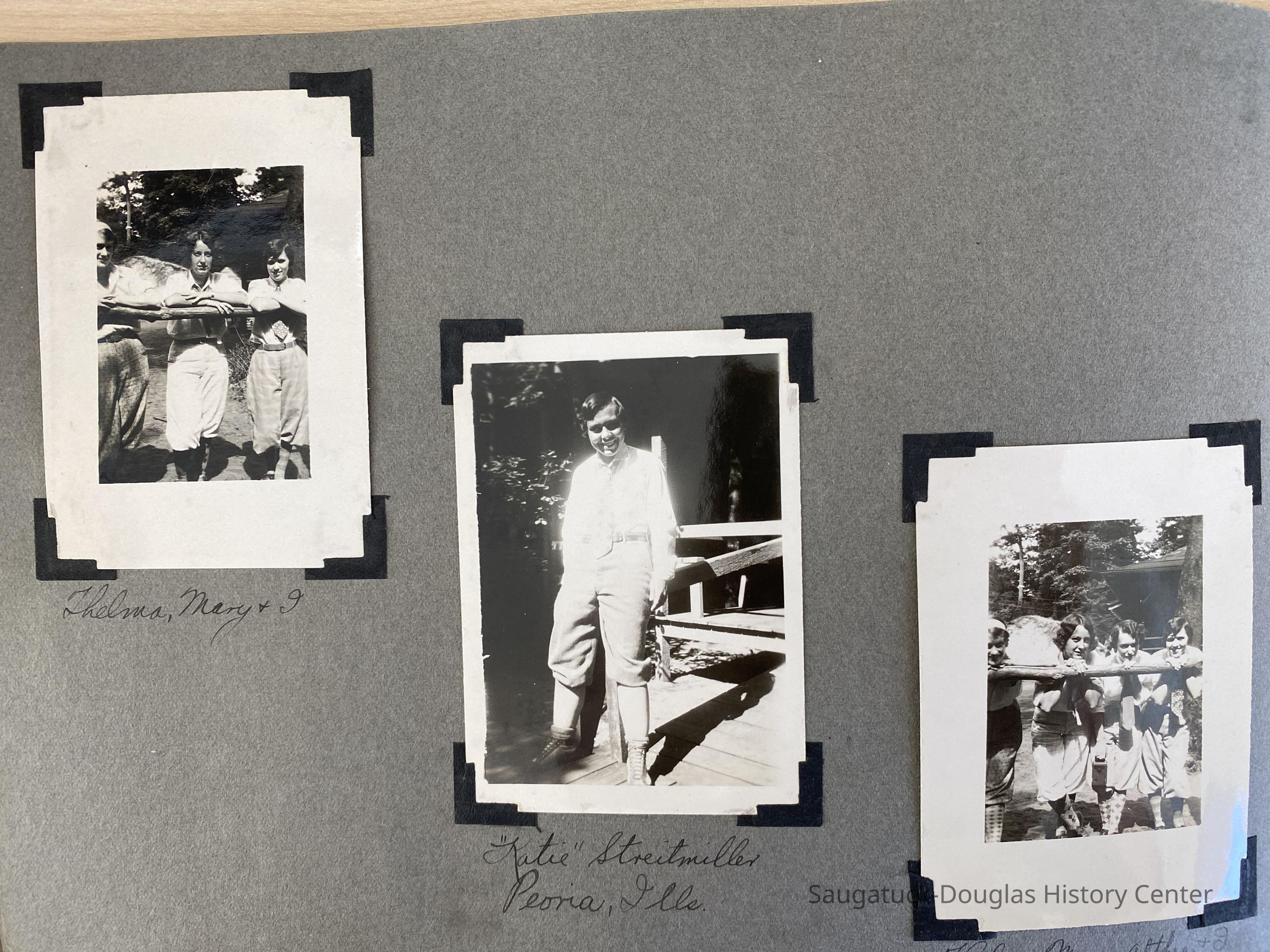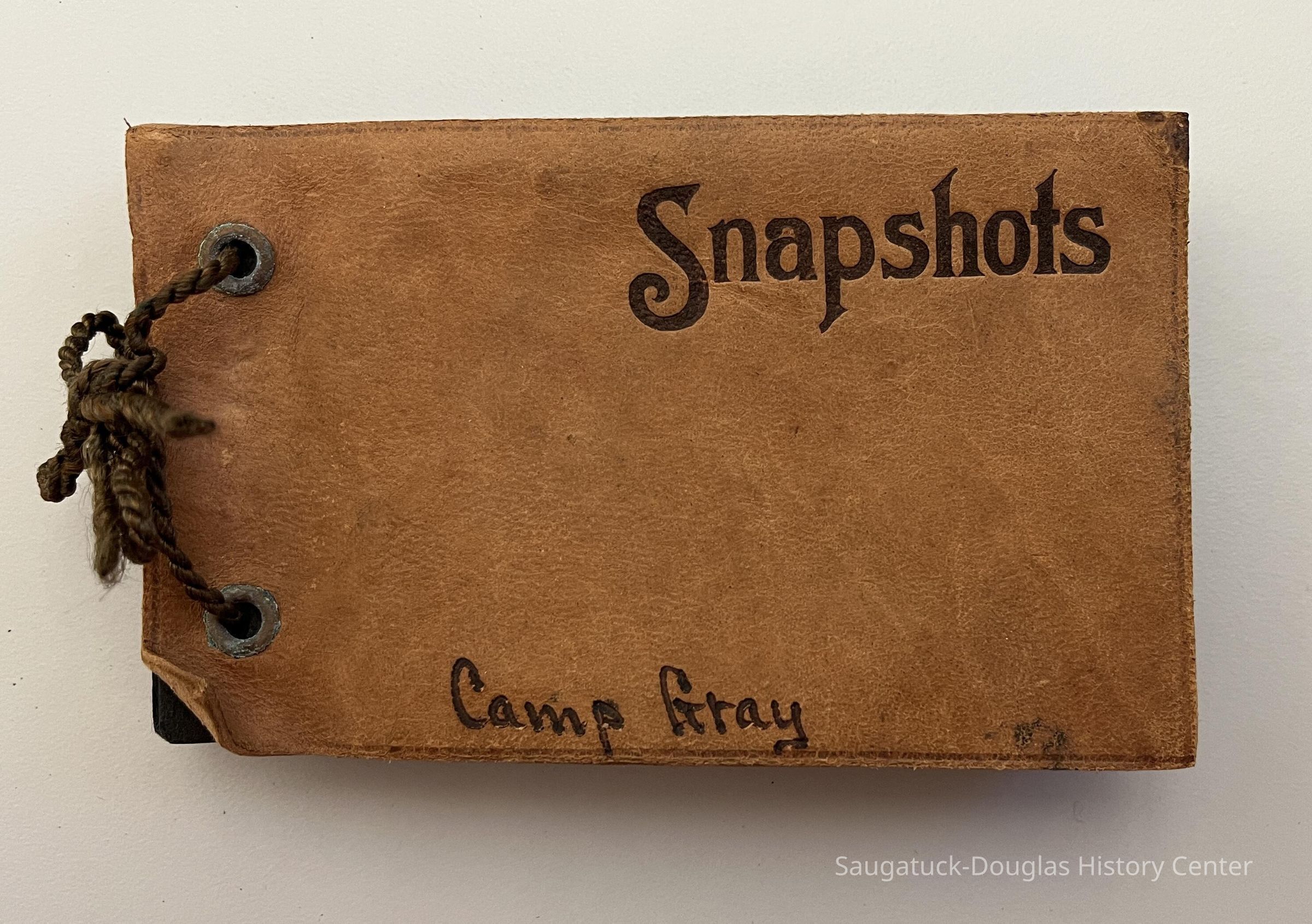 Leather-bound small photograph album with black and white photographs taken at Camp Gray ca. 1920. Photos are of girls at camp. The albumn belonged to Maurine Mallory, Waupon, Wisconsin. (no date)