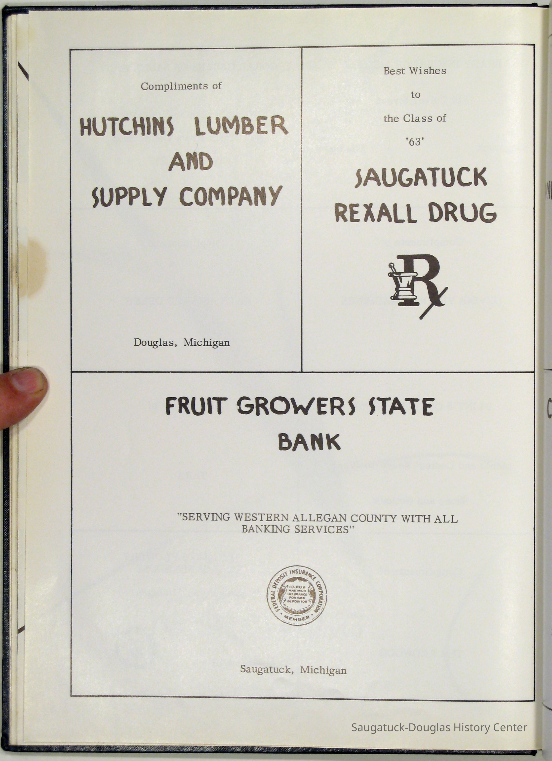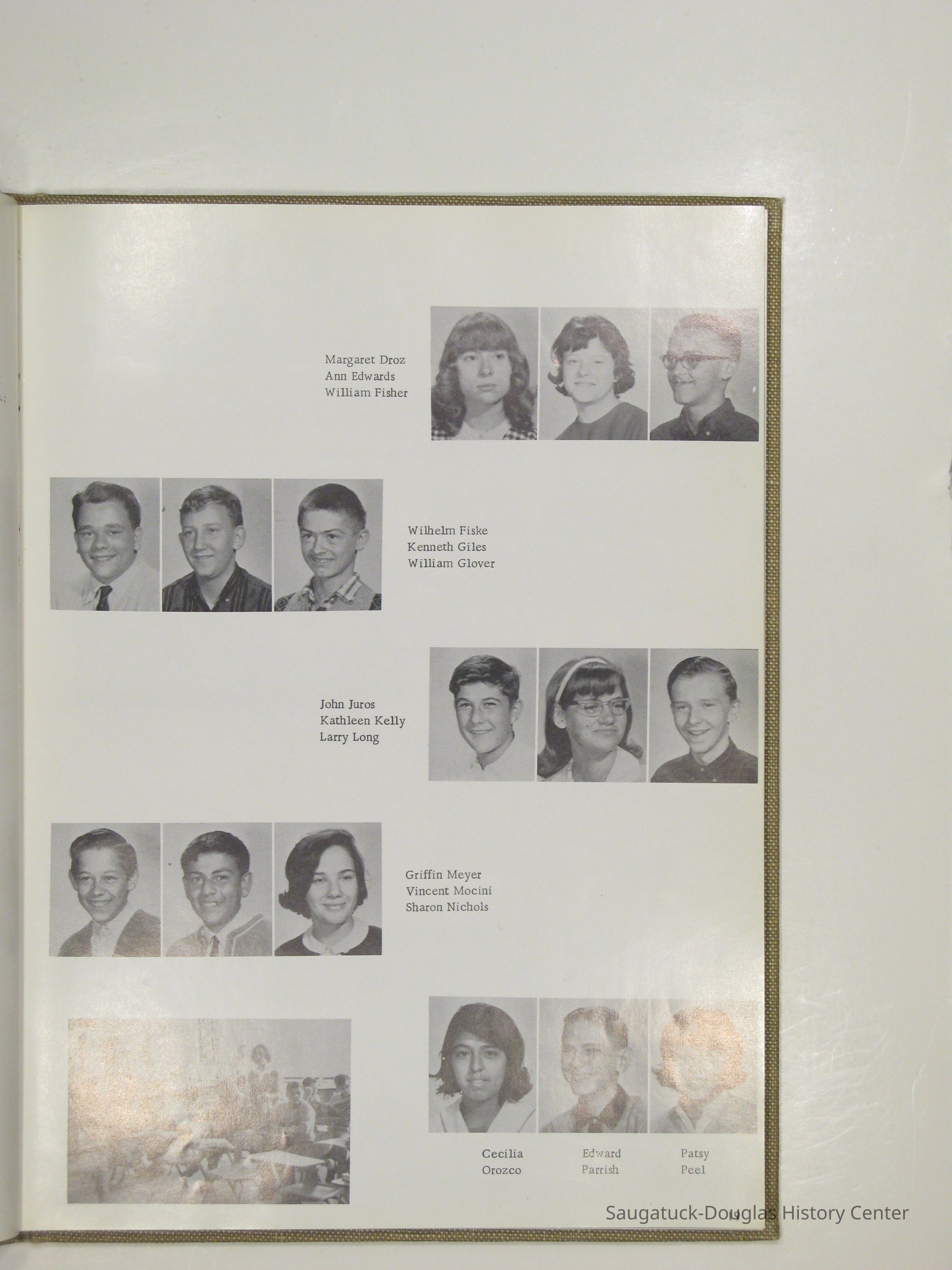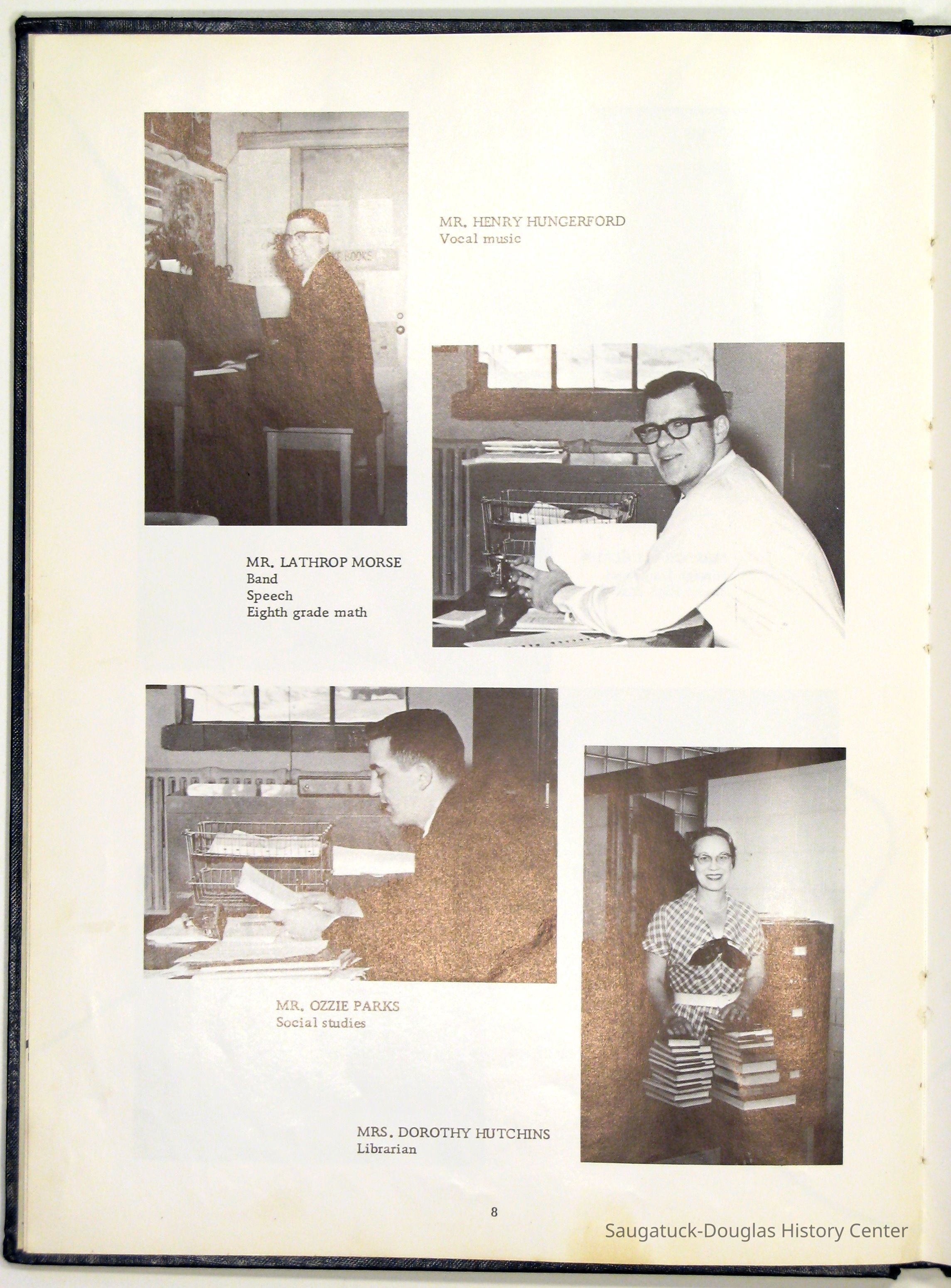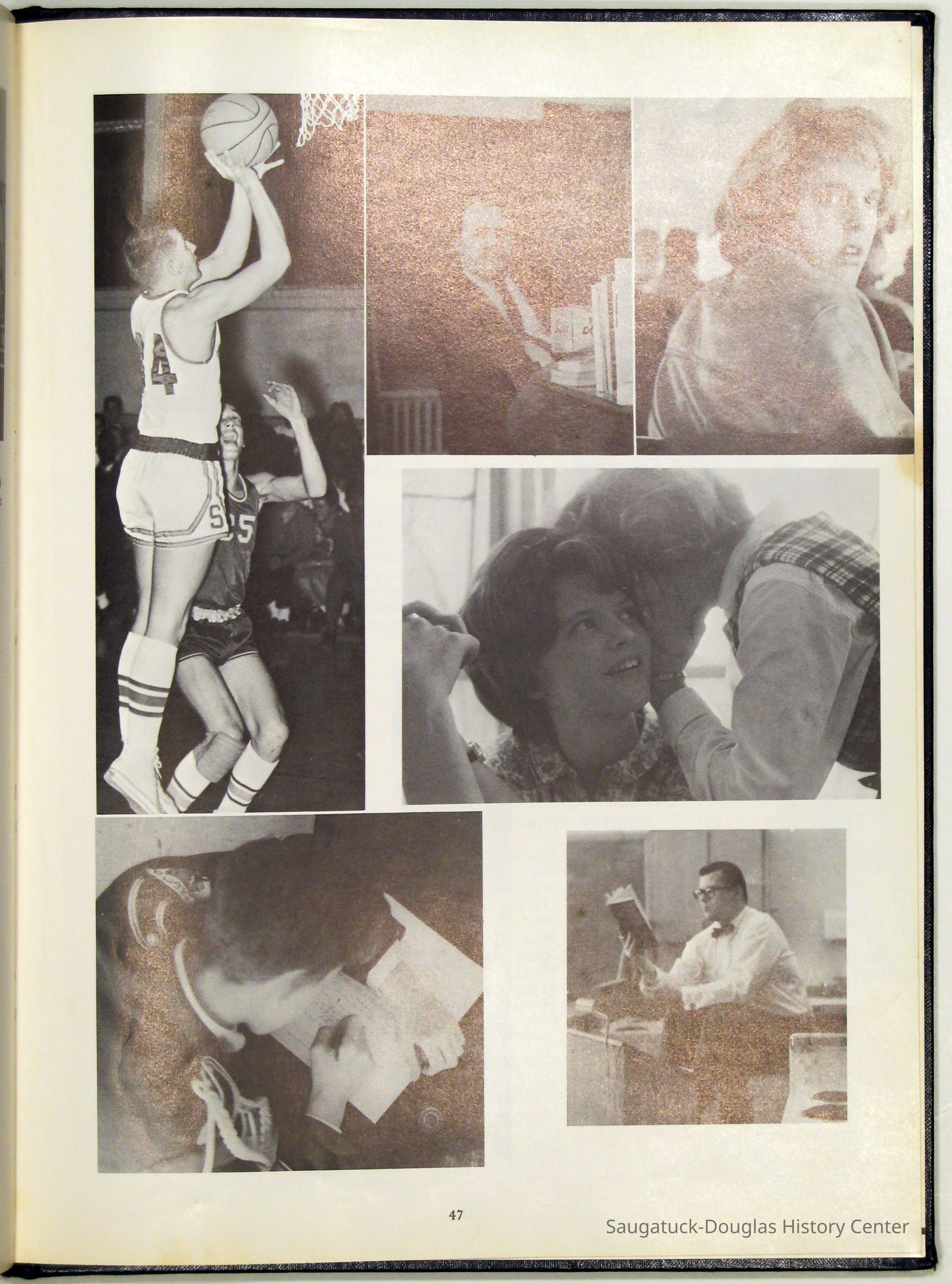 Three "Compass" Saugatuck High School yearbooks from 1963 (blue cover), 1964 (beige cover) and 1965 (brown cover). Also images of the yearbook's pages photographed by Chris Yoder in 2008.
