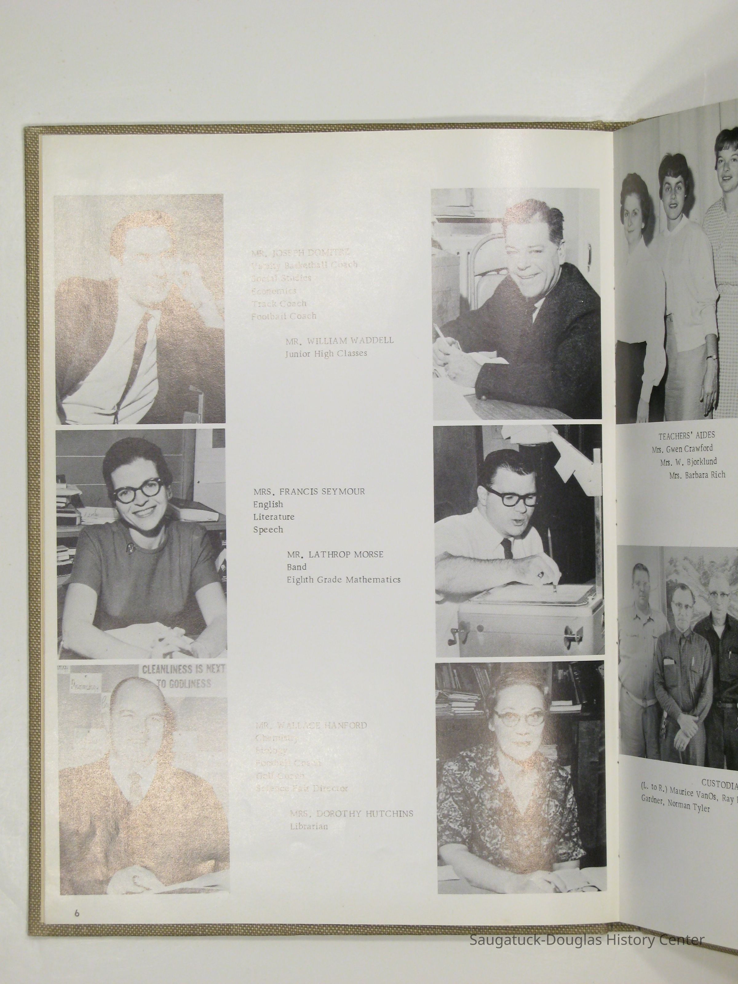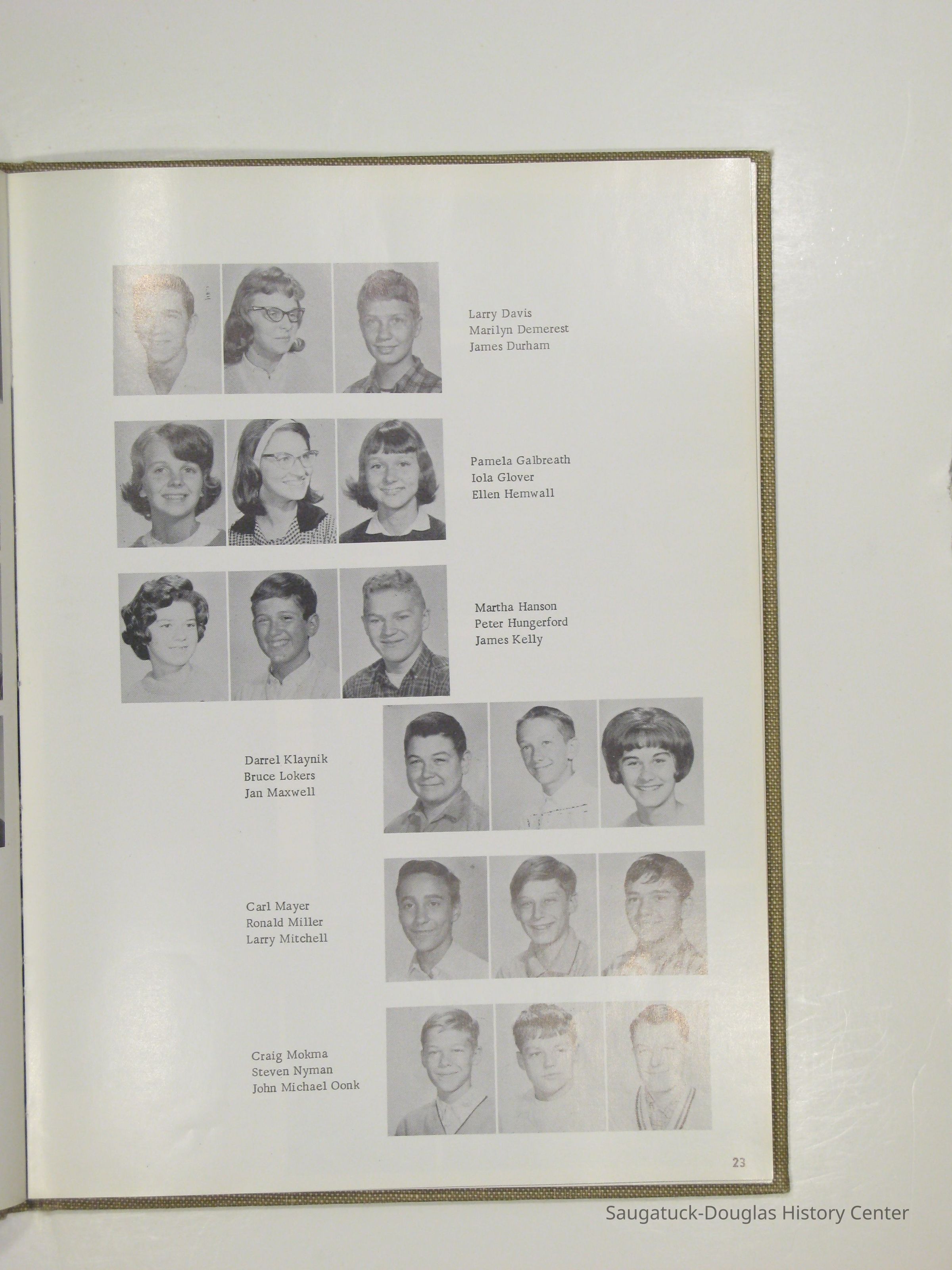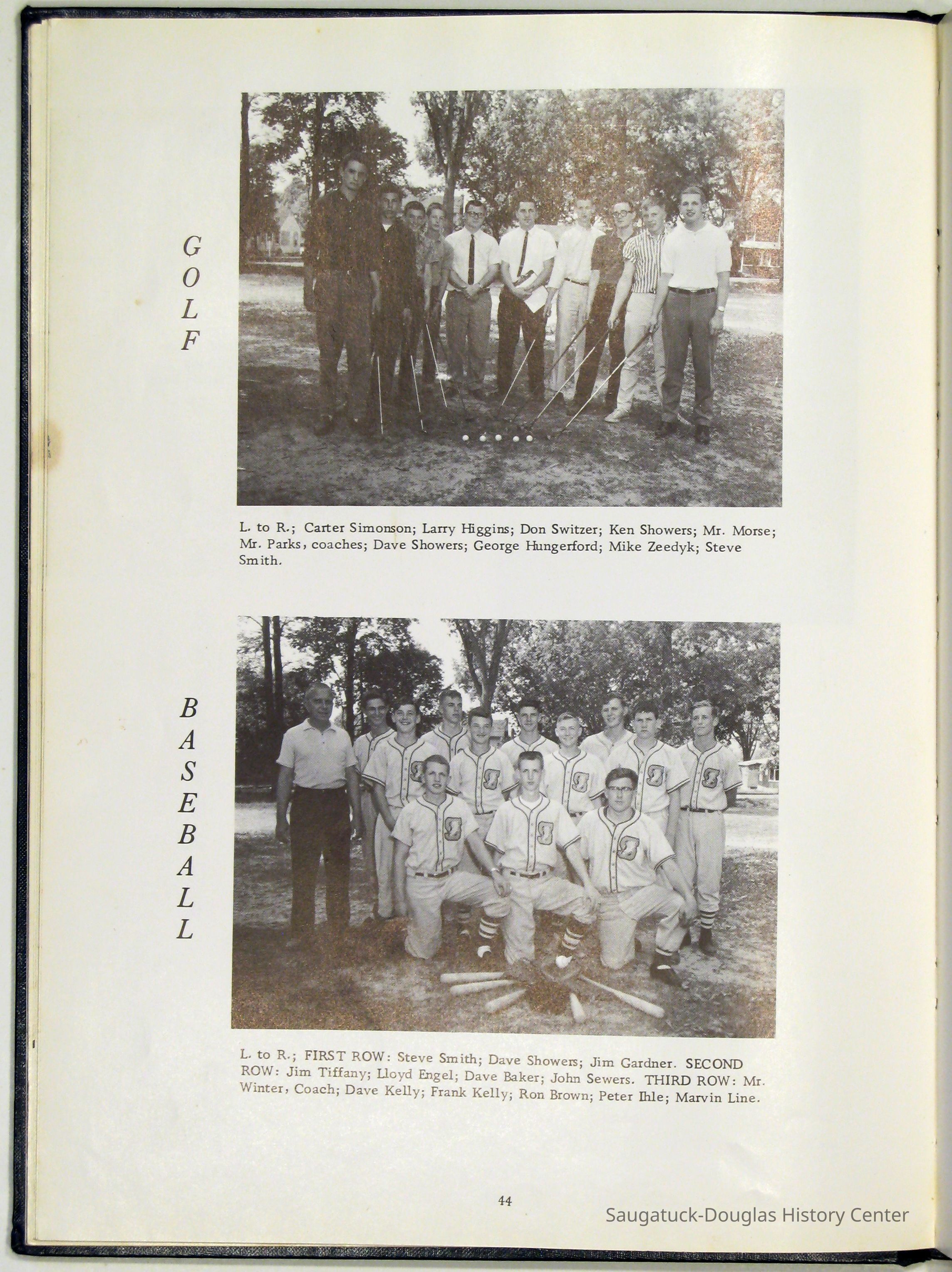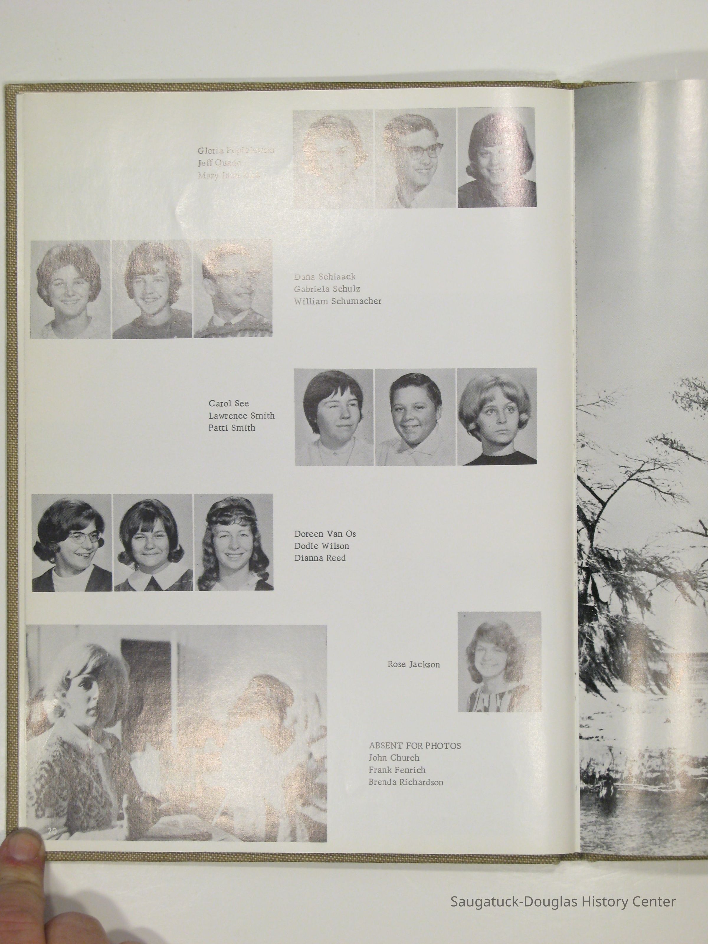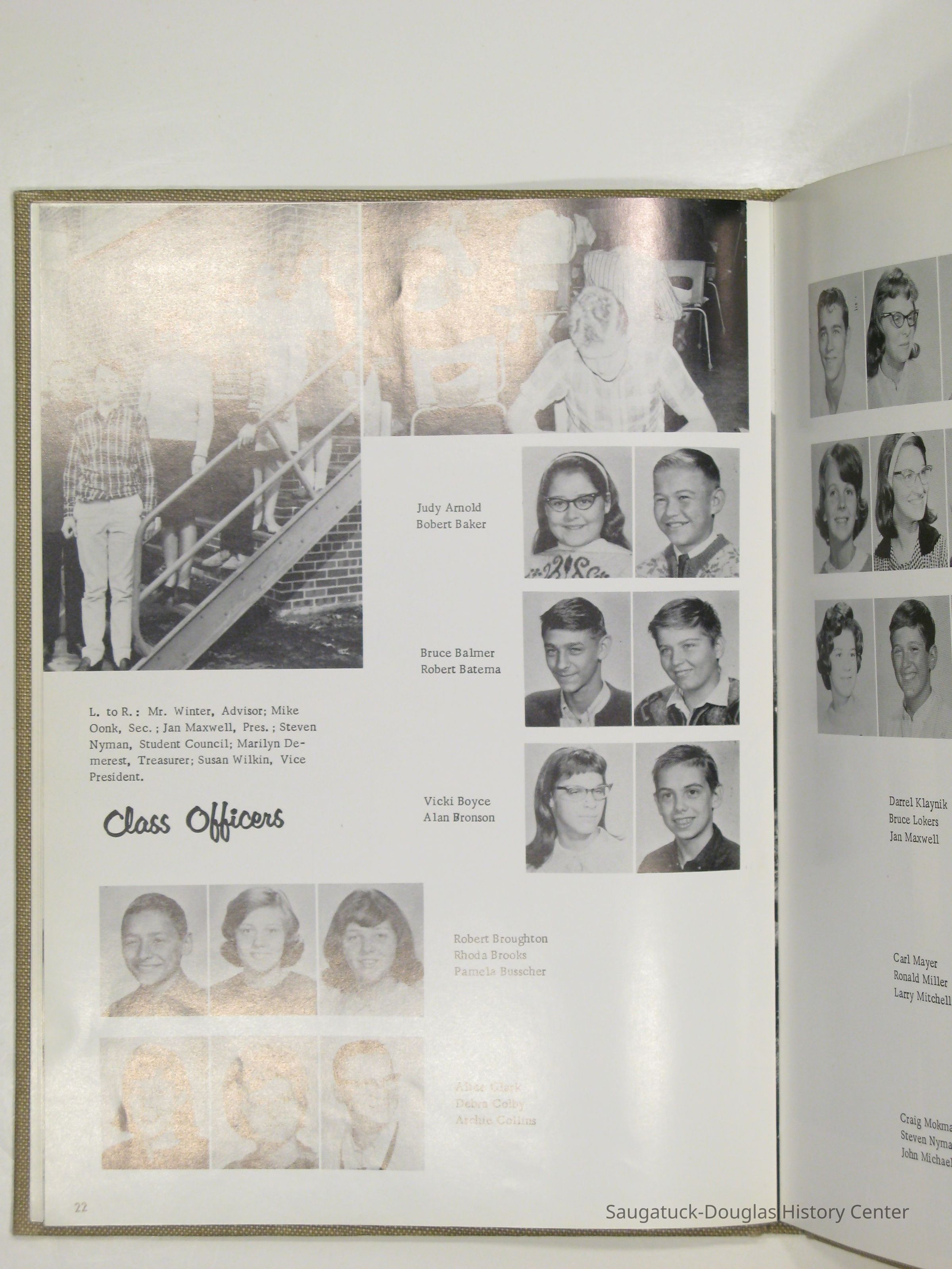 Three "Compass" Saugatuck High School yearbooks from 1963 (blue cover), 1964 (beige cover) and 1965 (brown cover). Also images of the yearbook's pages photographed by Chris Yoder in 2008.