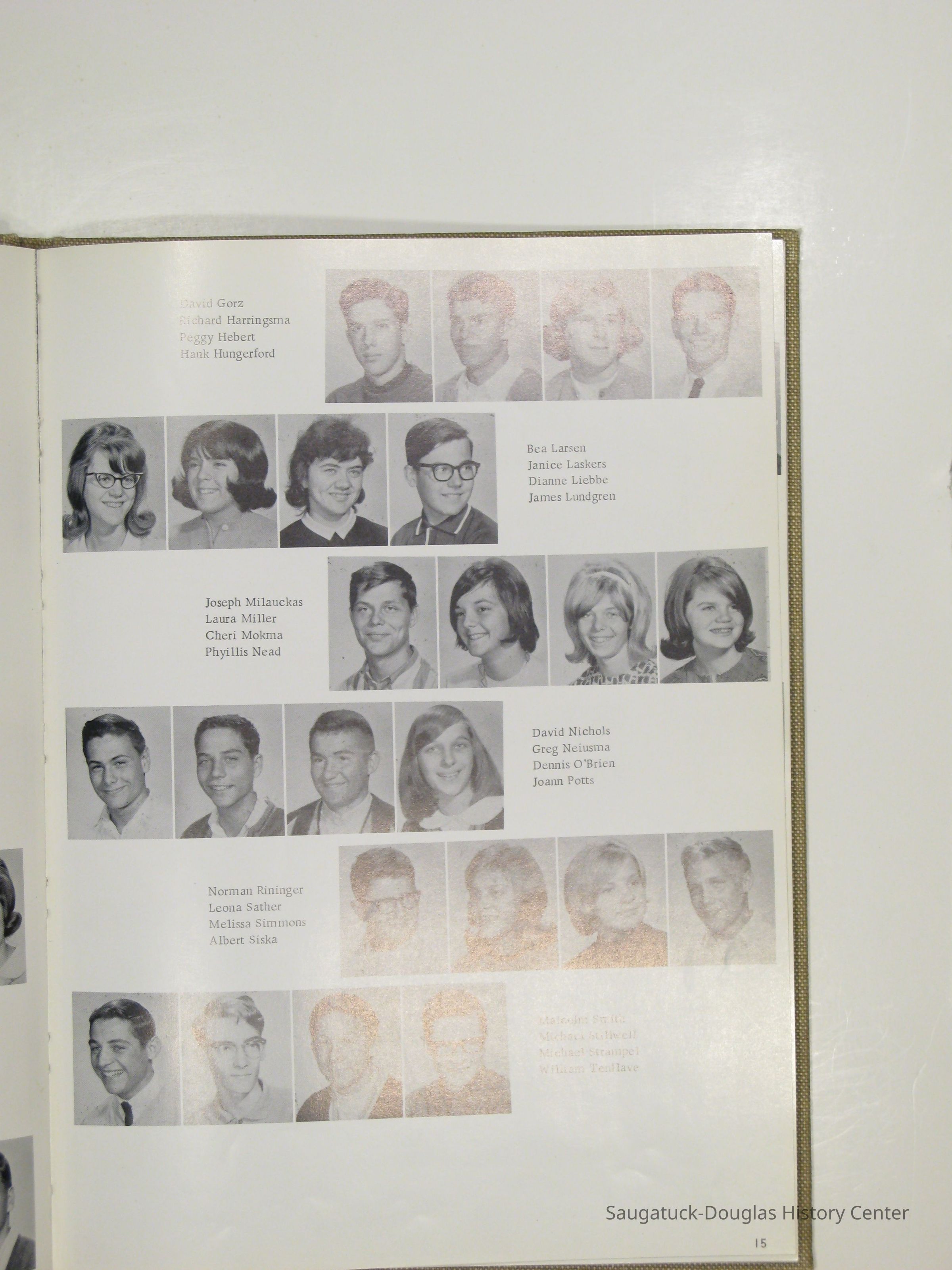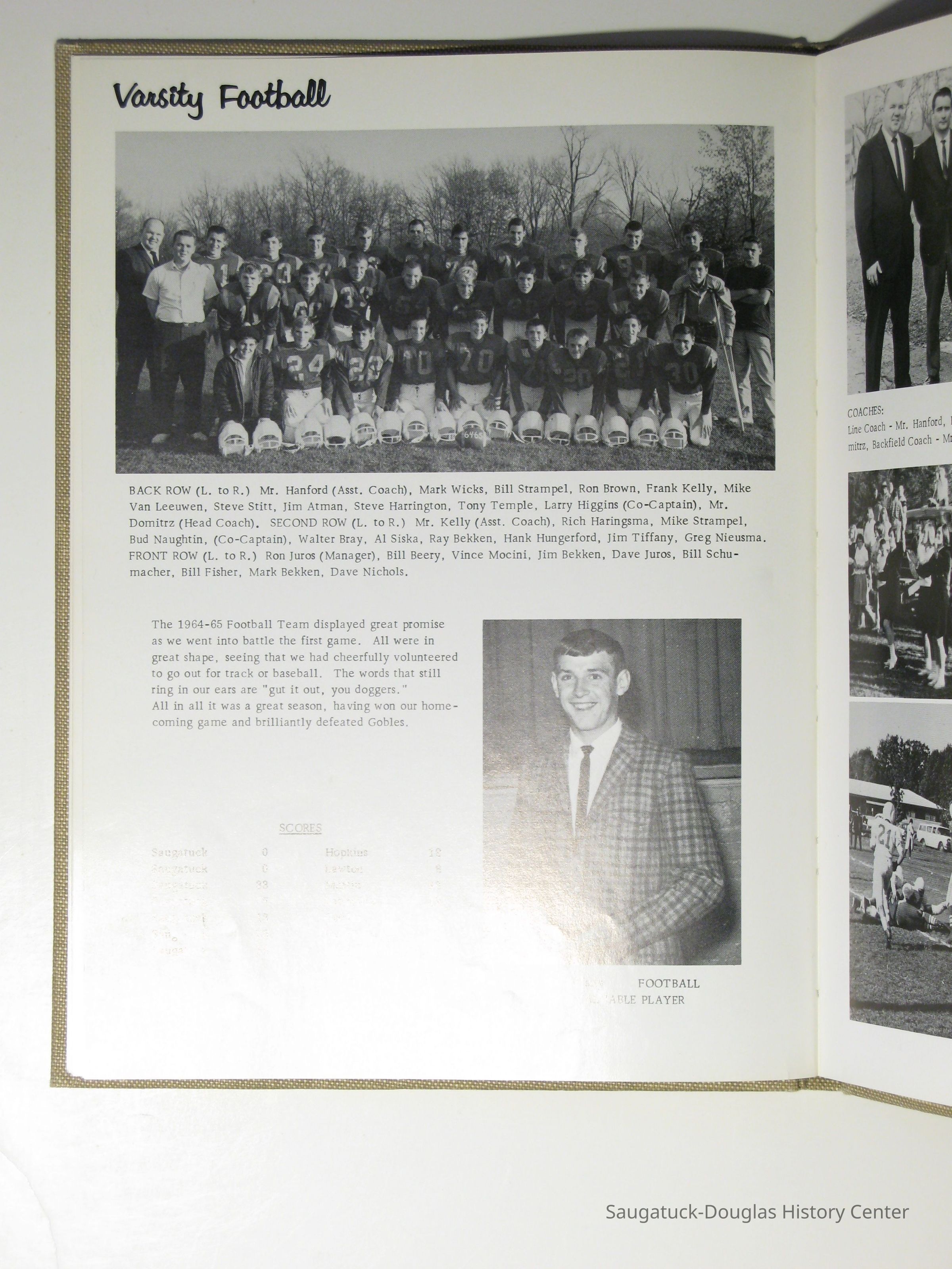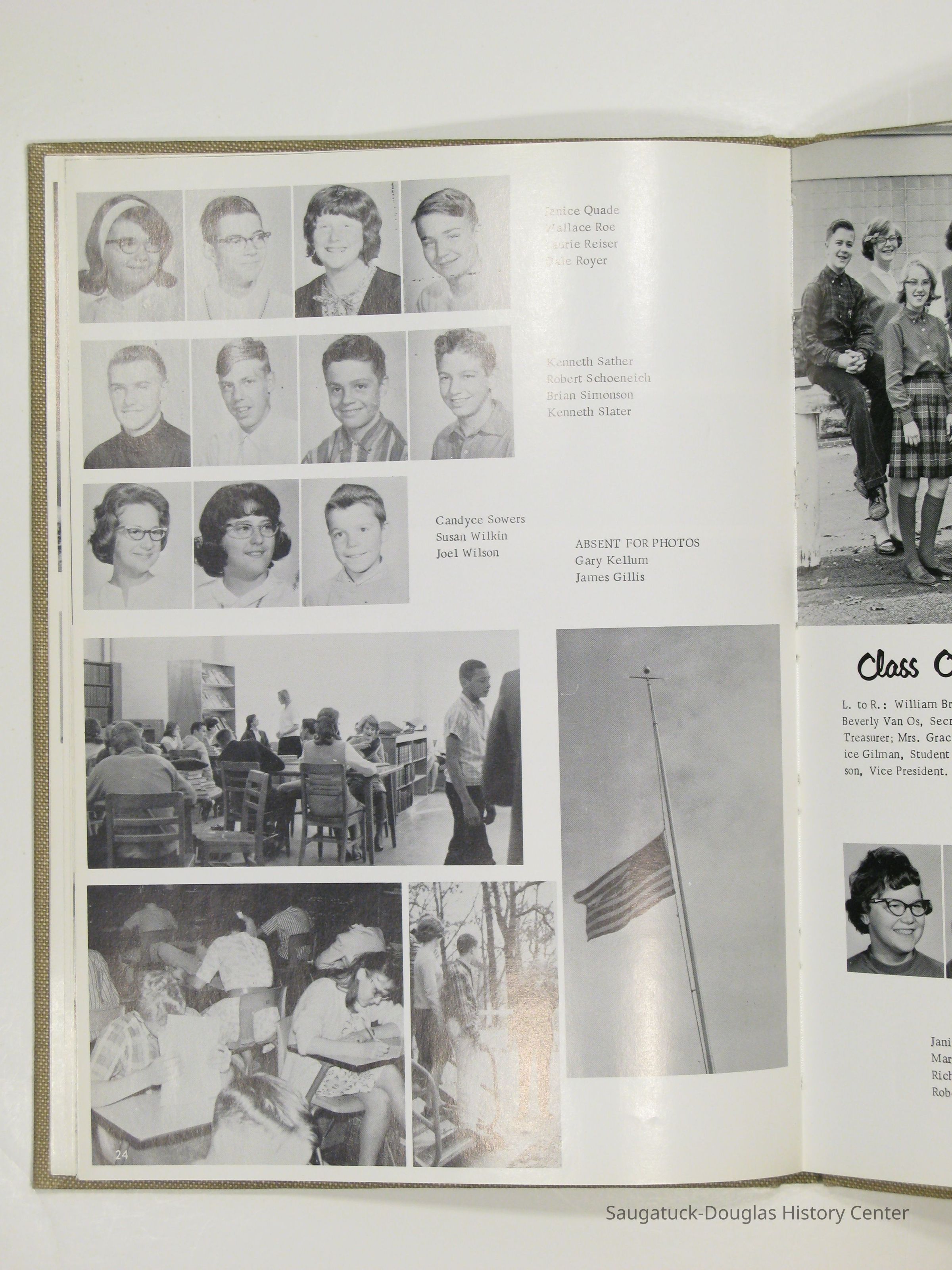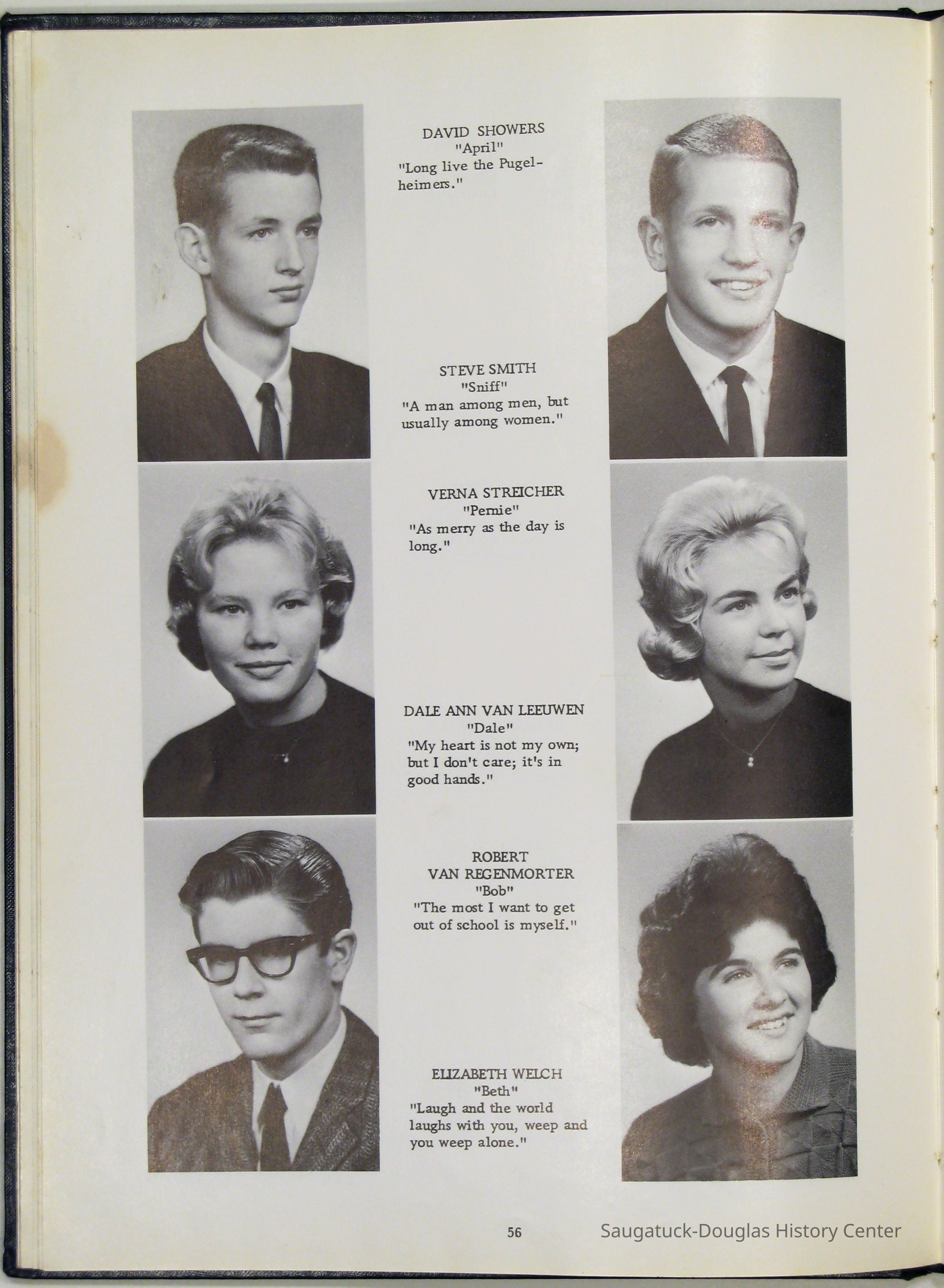 Three "Compass" Saugatuck High School yearbooks from 1963 (blue cover), 1964 (beige cover) and 1965 (brown cover). Also images of the yearbook's pages photographed by Chris Yoder in 2008.