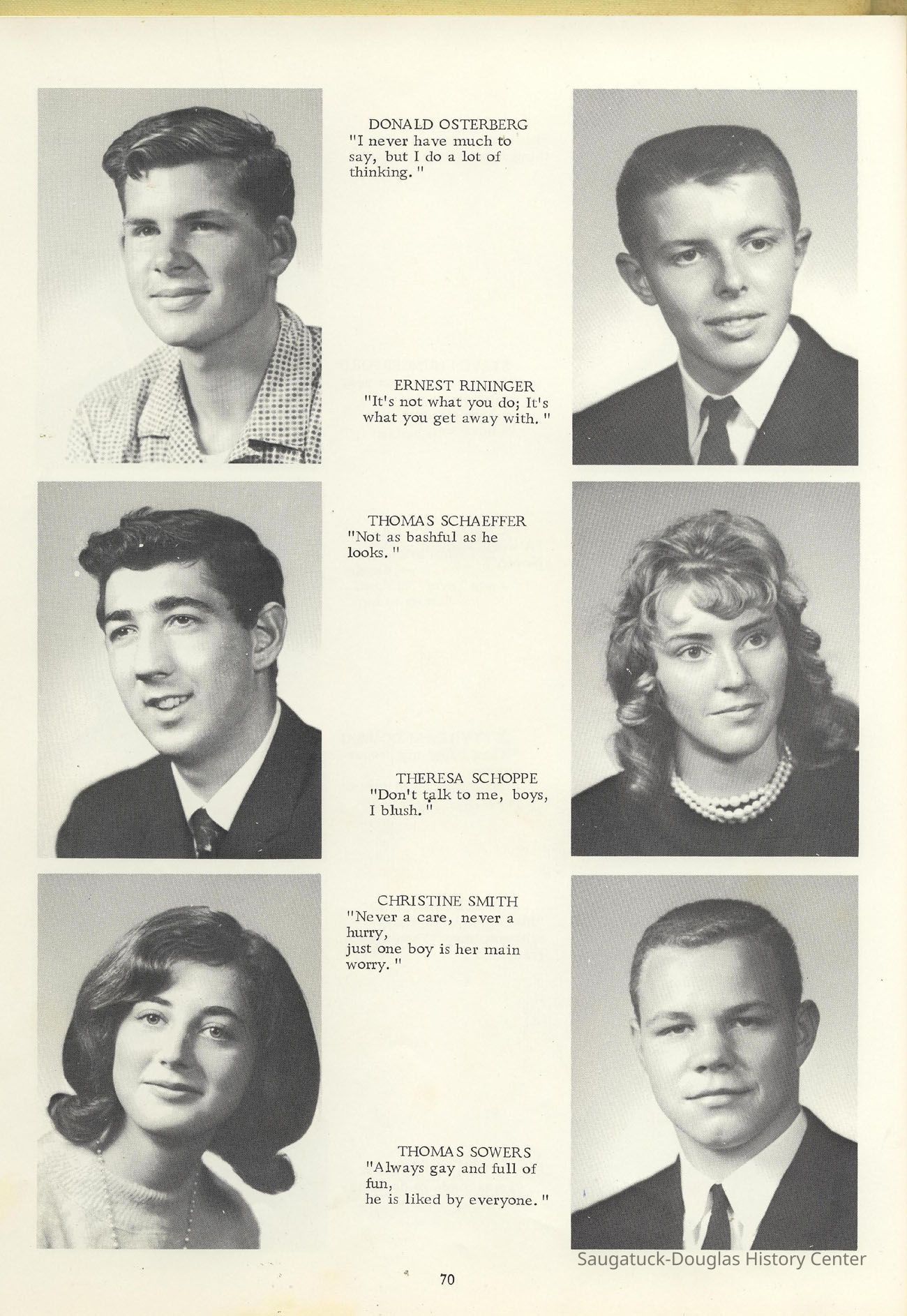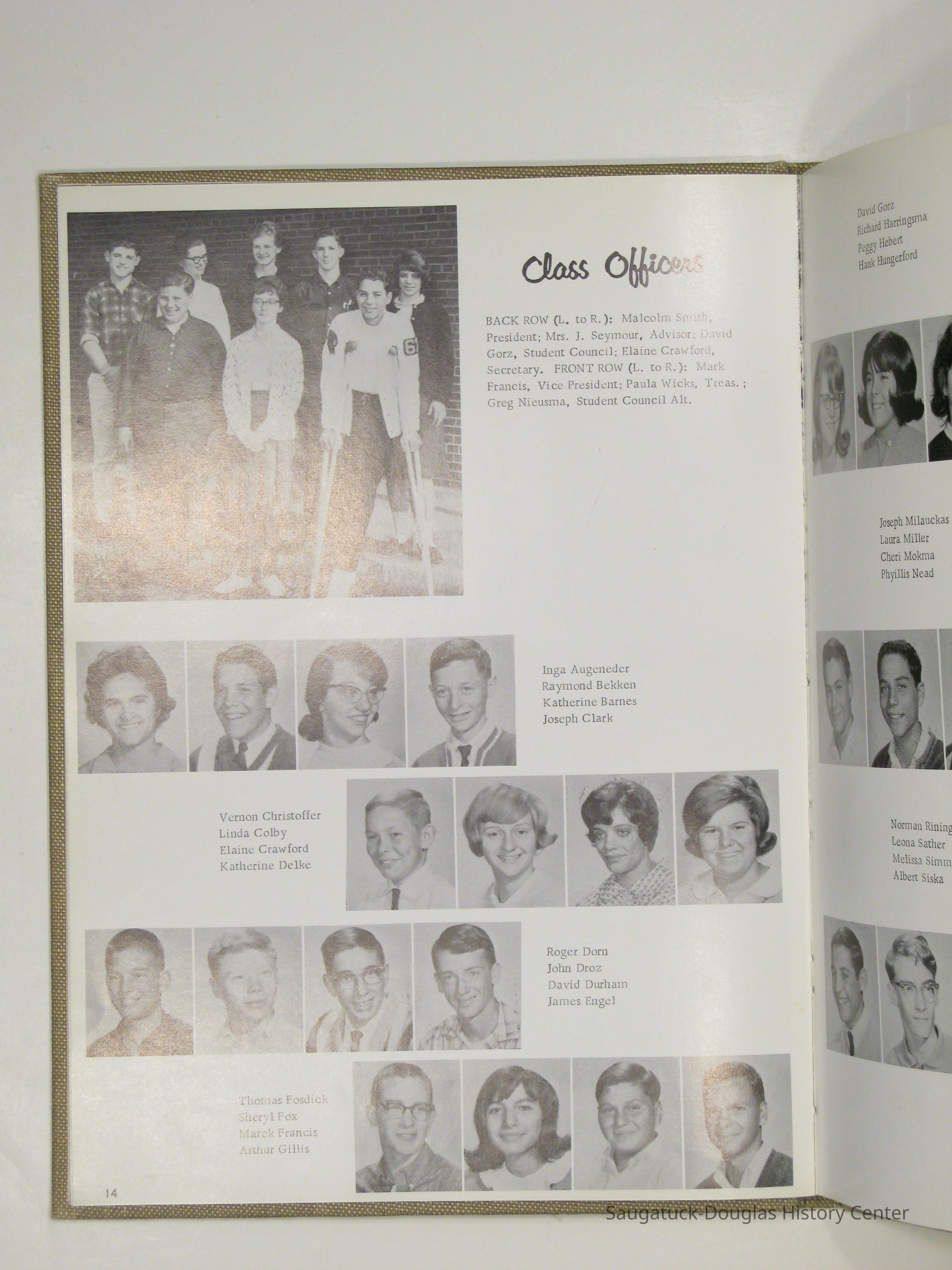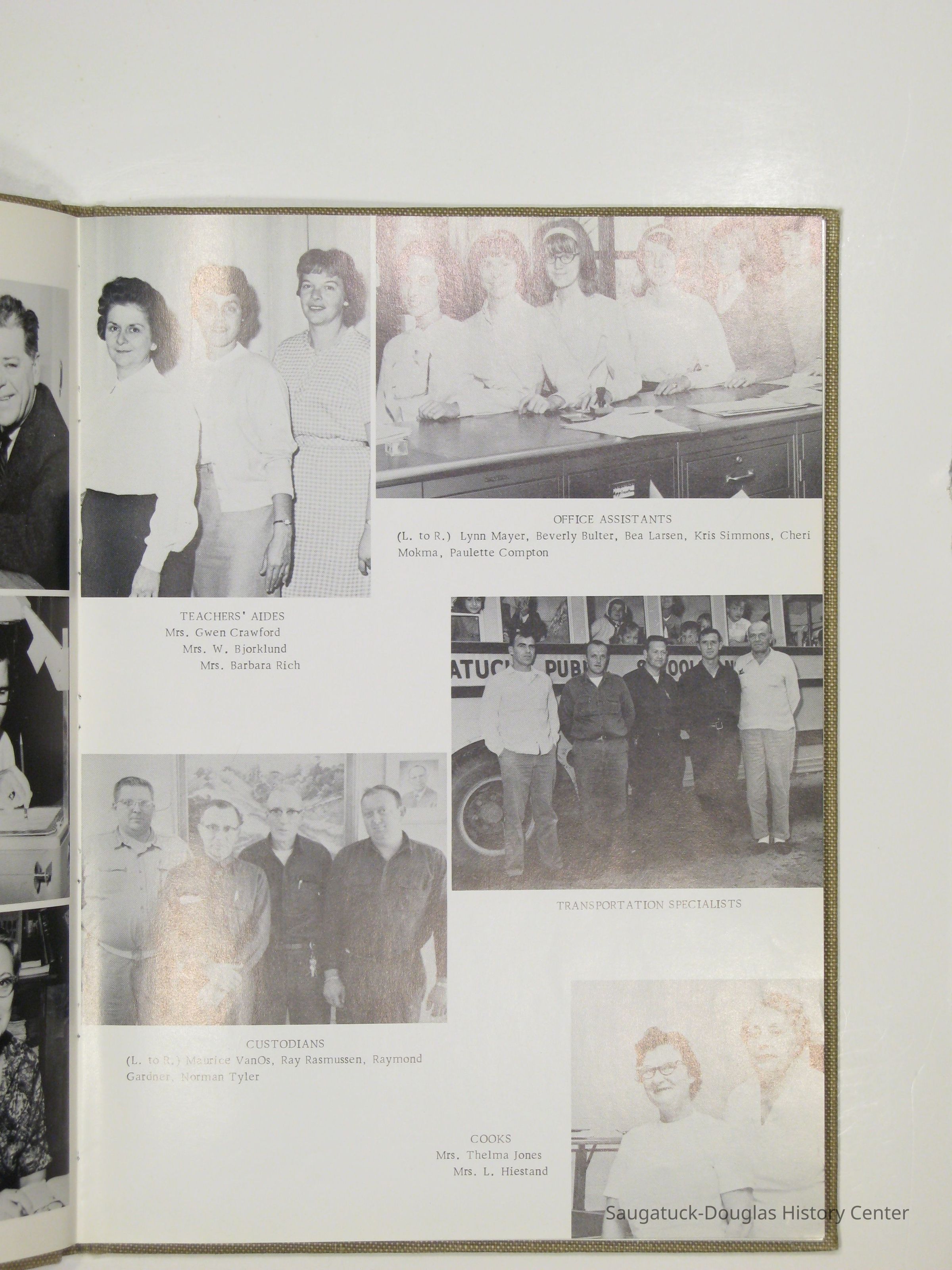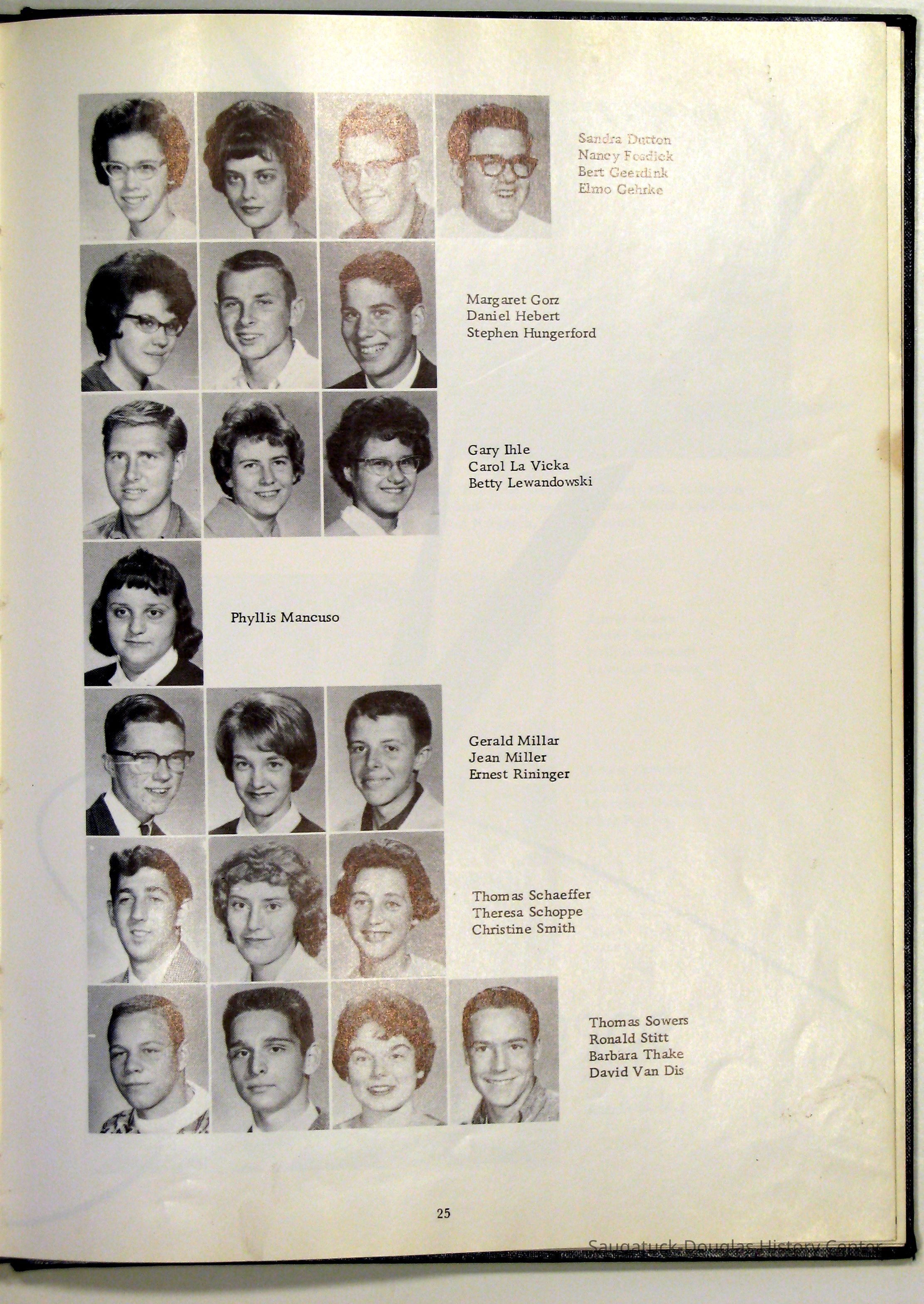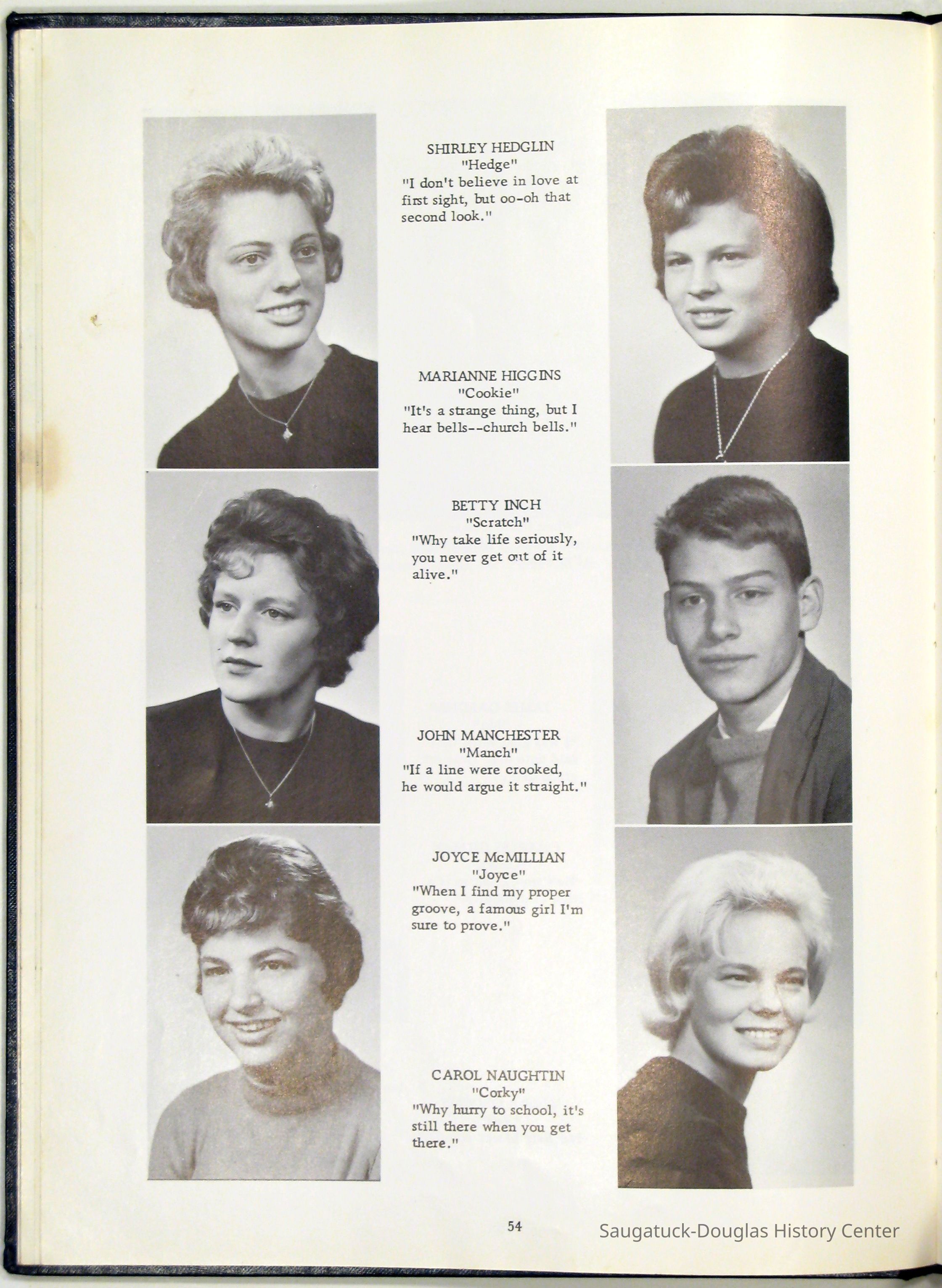 Three "Compass" Saugatuck High School yearbooks from 1963 (blue cover), 1964 (beige cover) and 1965 (brown cover). Also images of the yearbook's pages photographed by Chris Yoder in 2008.