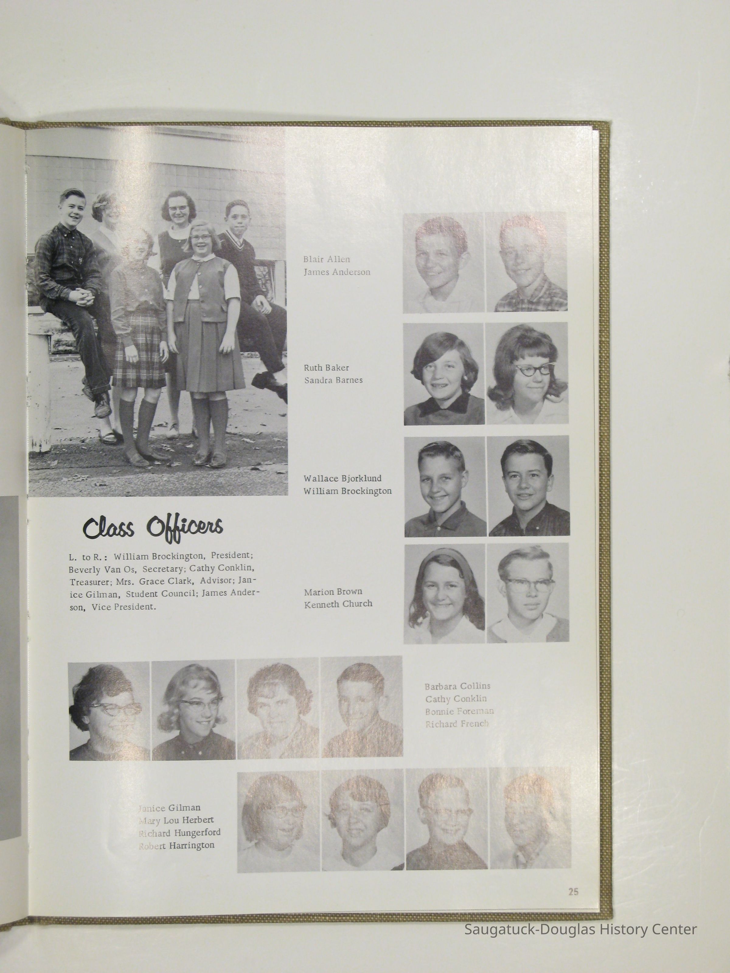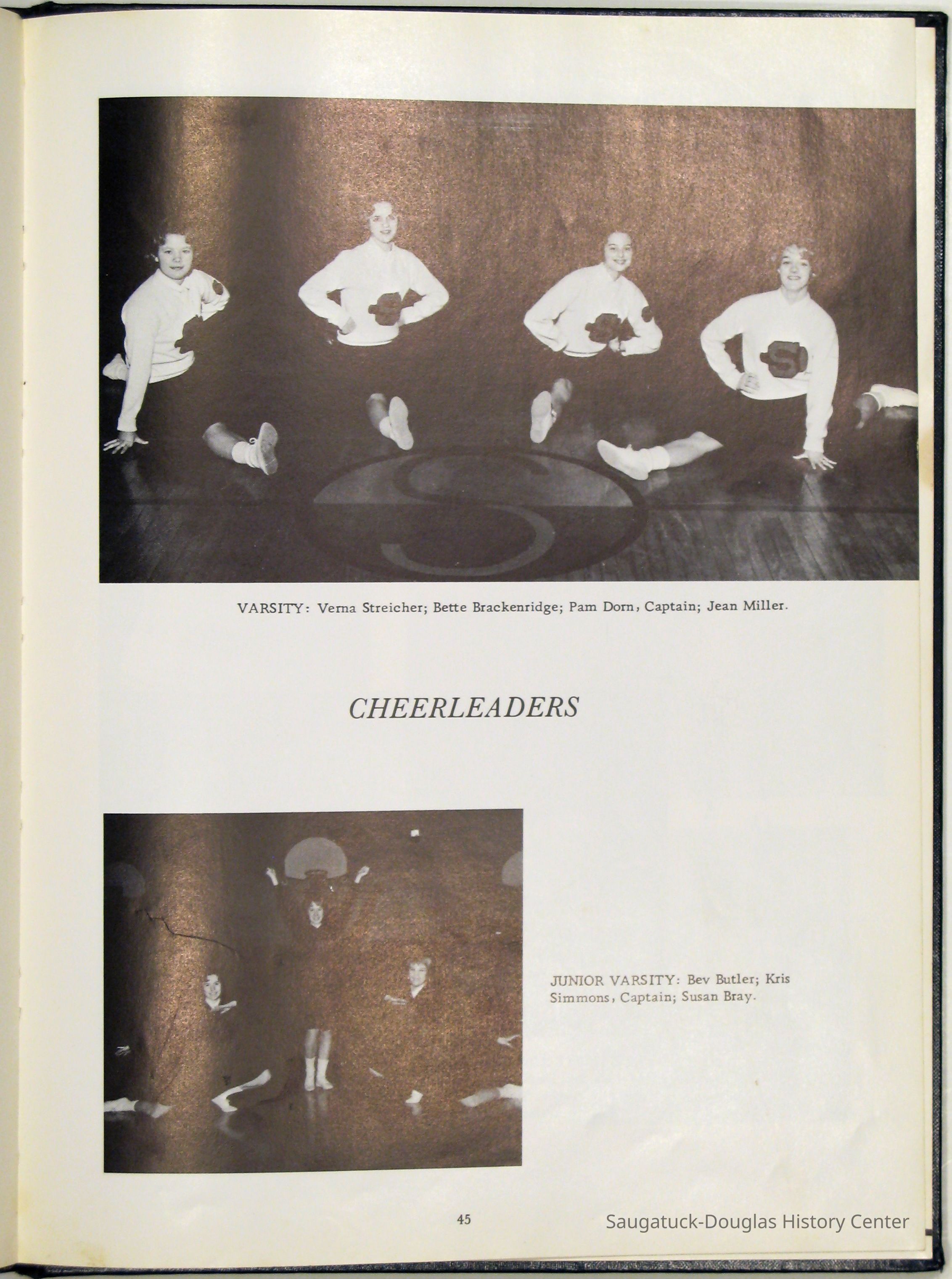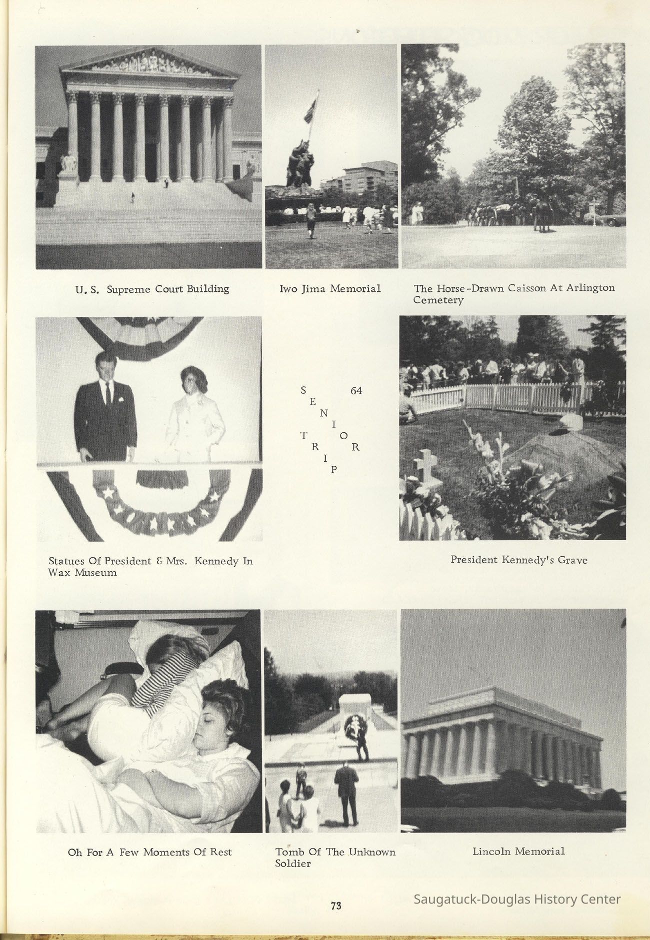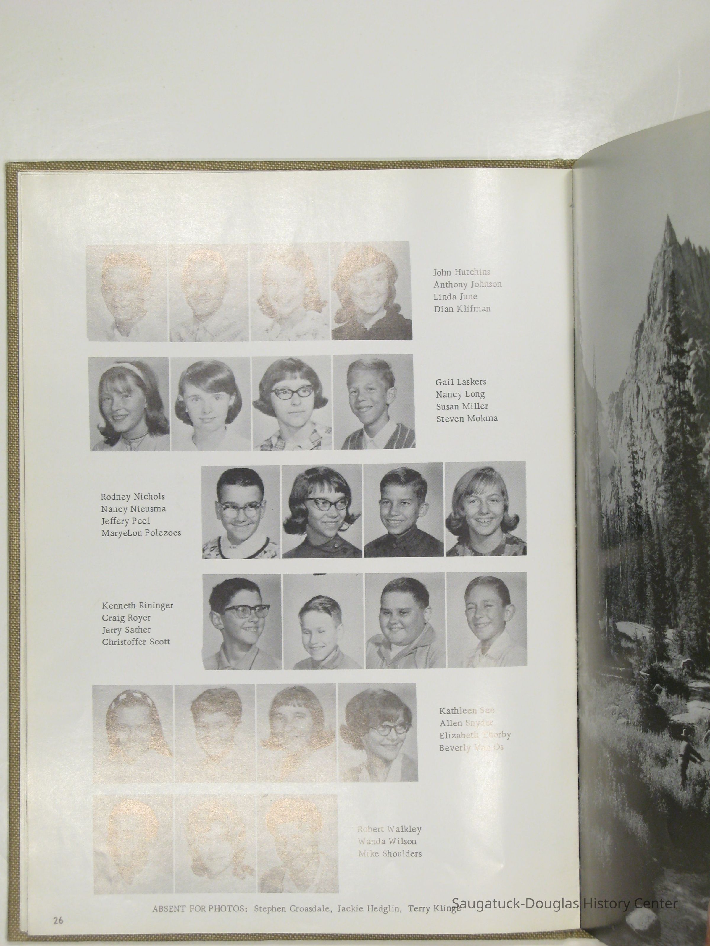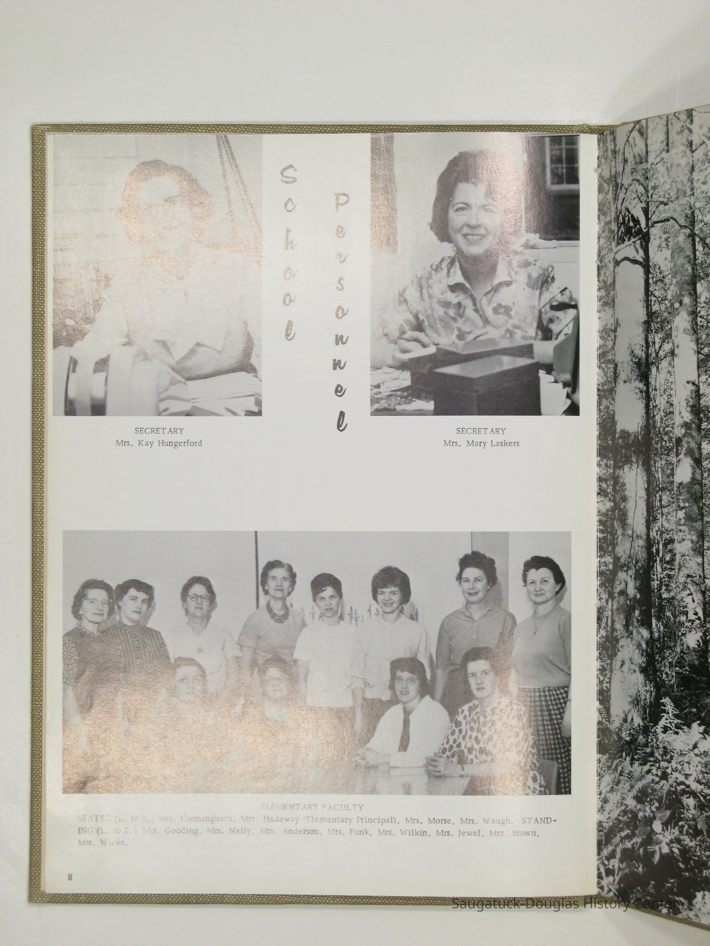 Three "Compass" Saugatuck High School yearbooks from 1963 (blue cover), 1964 (beige cover) and 1965 (brown cover). Also images of the yearbook's pages photographed by Chris Yoder in 2008.