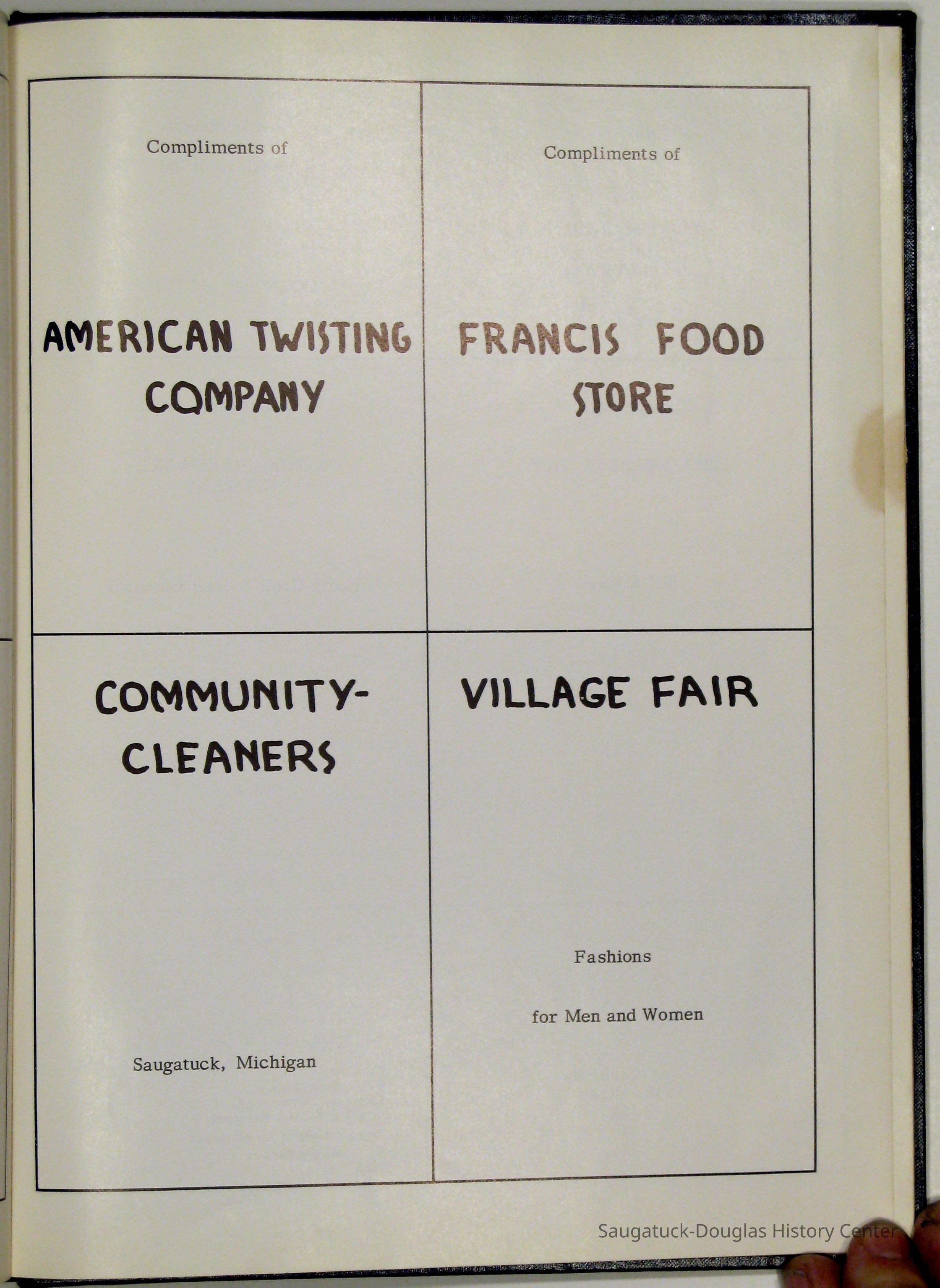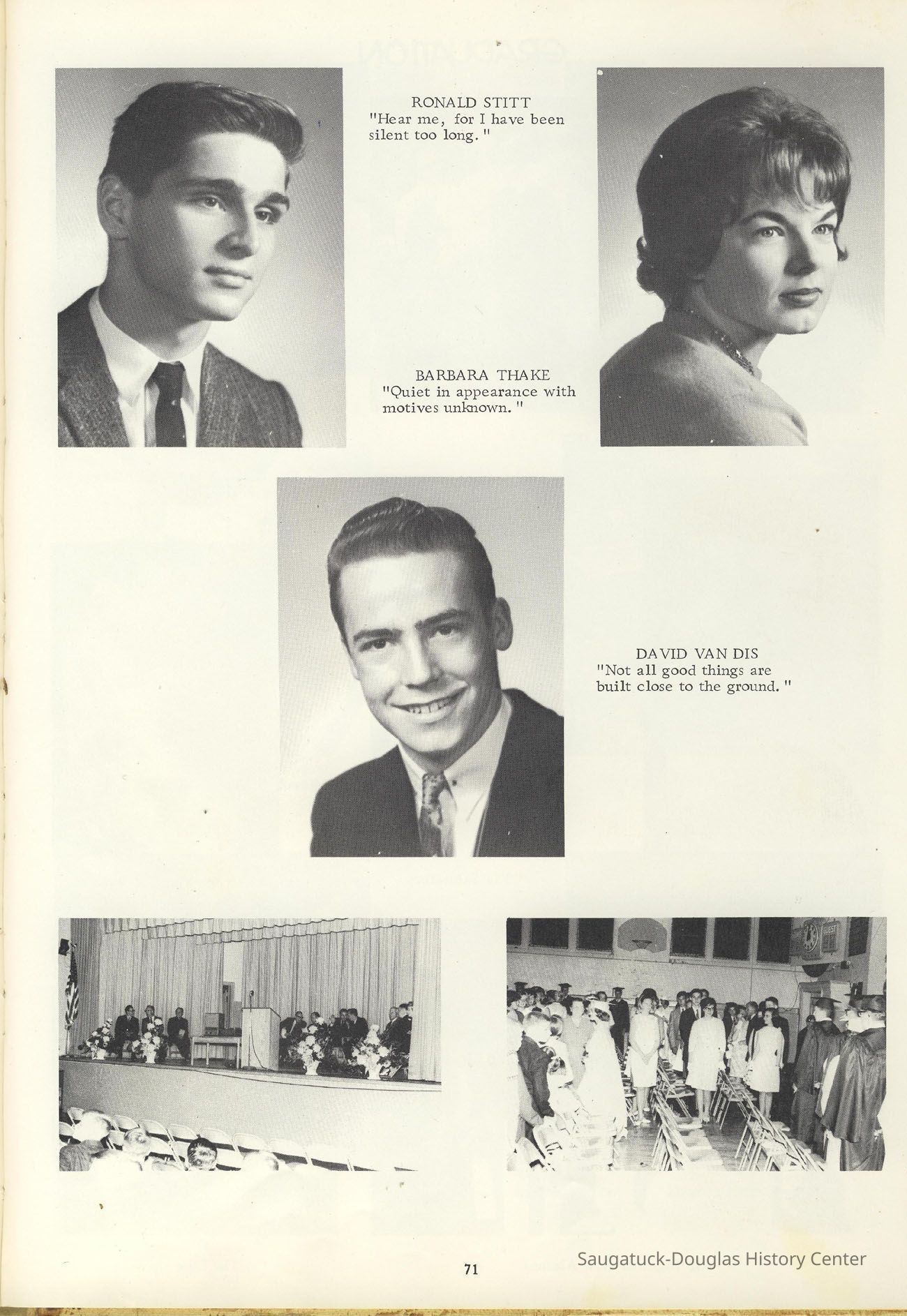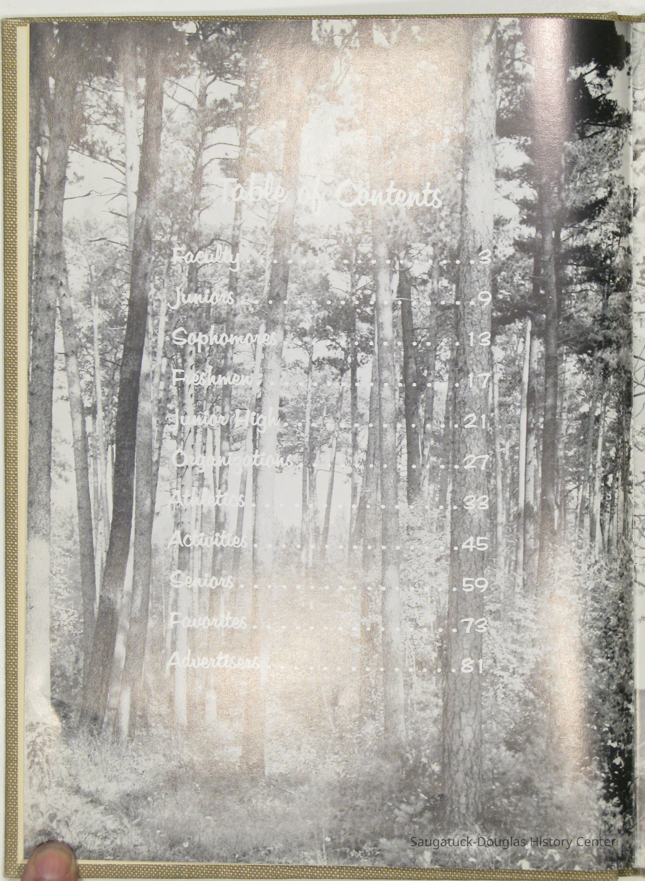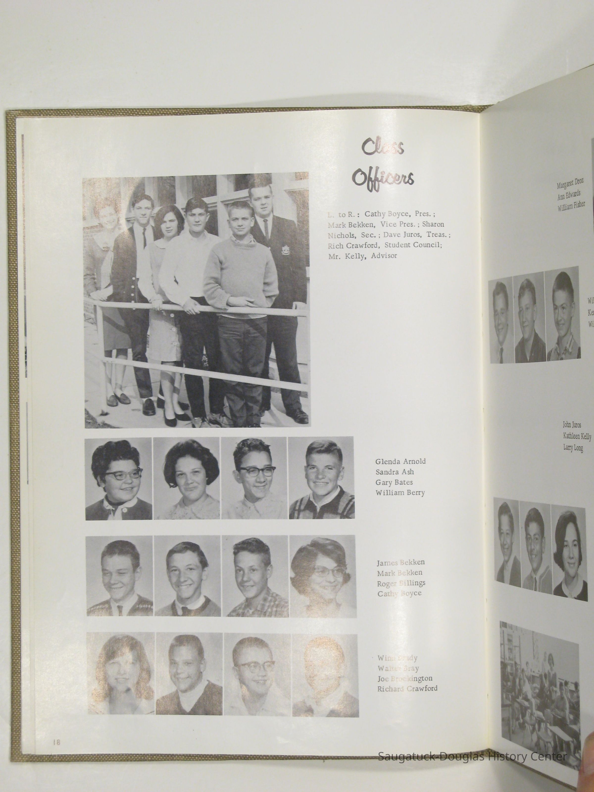 Three "Compass" Saugatuck High School yearbooks from 1963 (blue cover), 1964 (beige cover) and 1965 (brown cover). Also images of the yearbook's pages photographed by Chris Yoder in 2008.