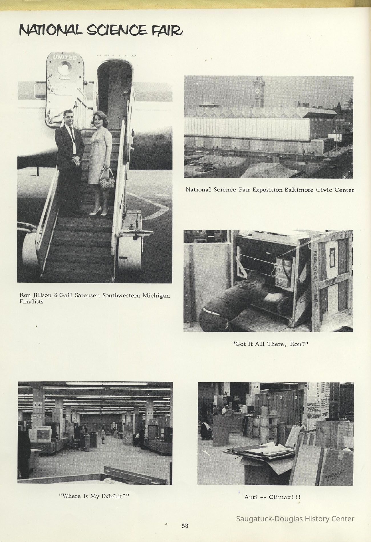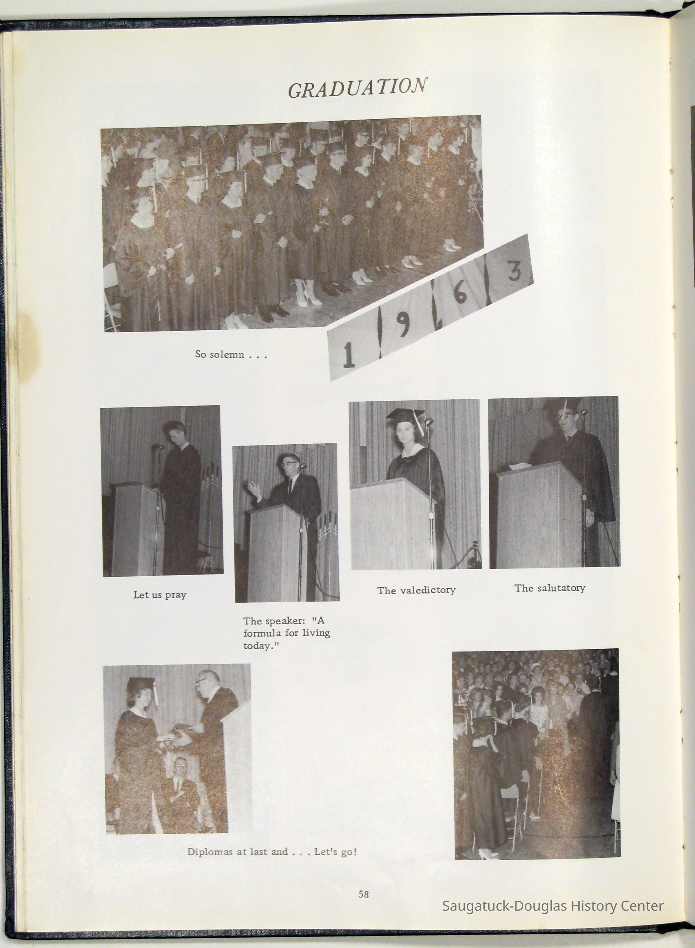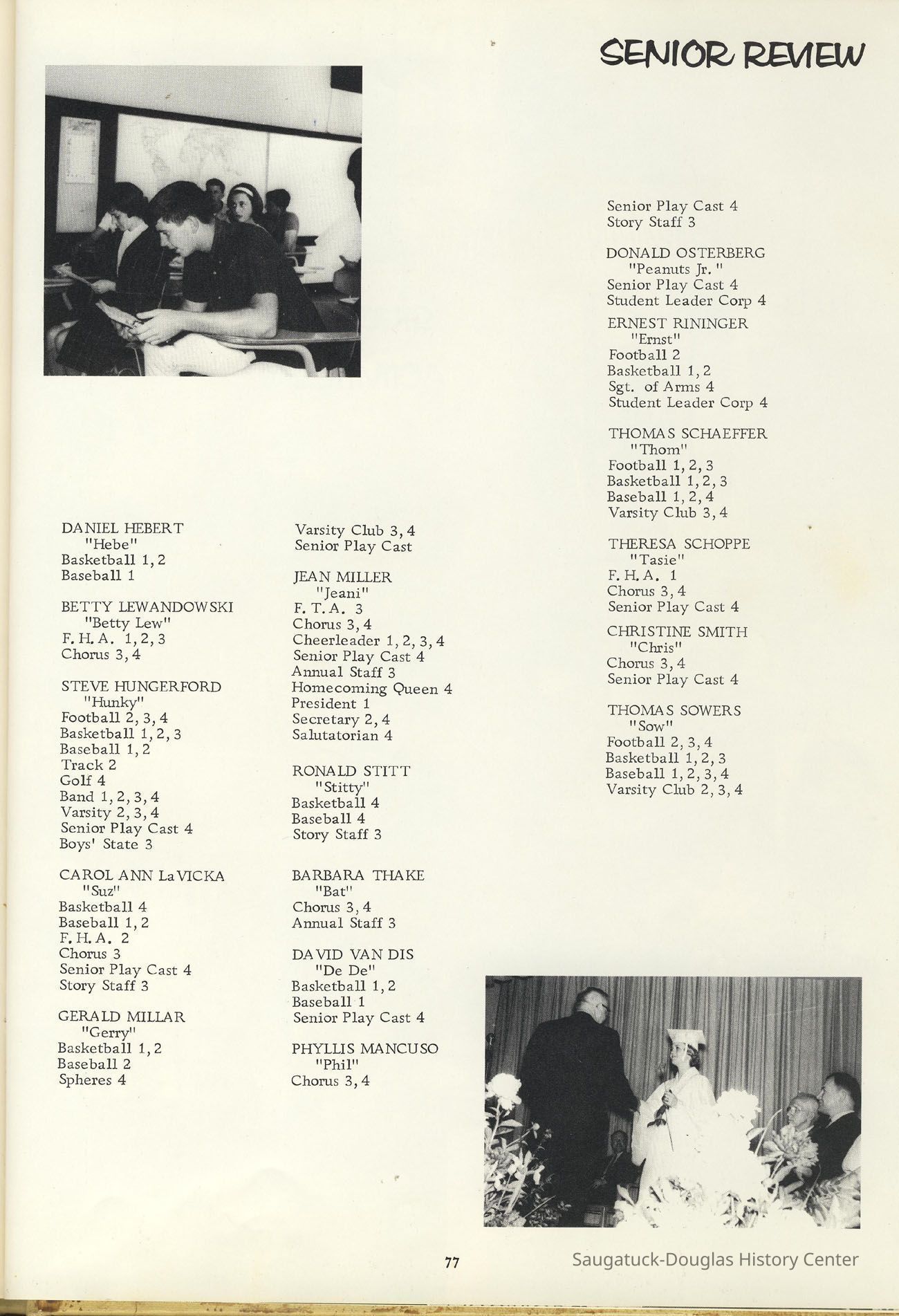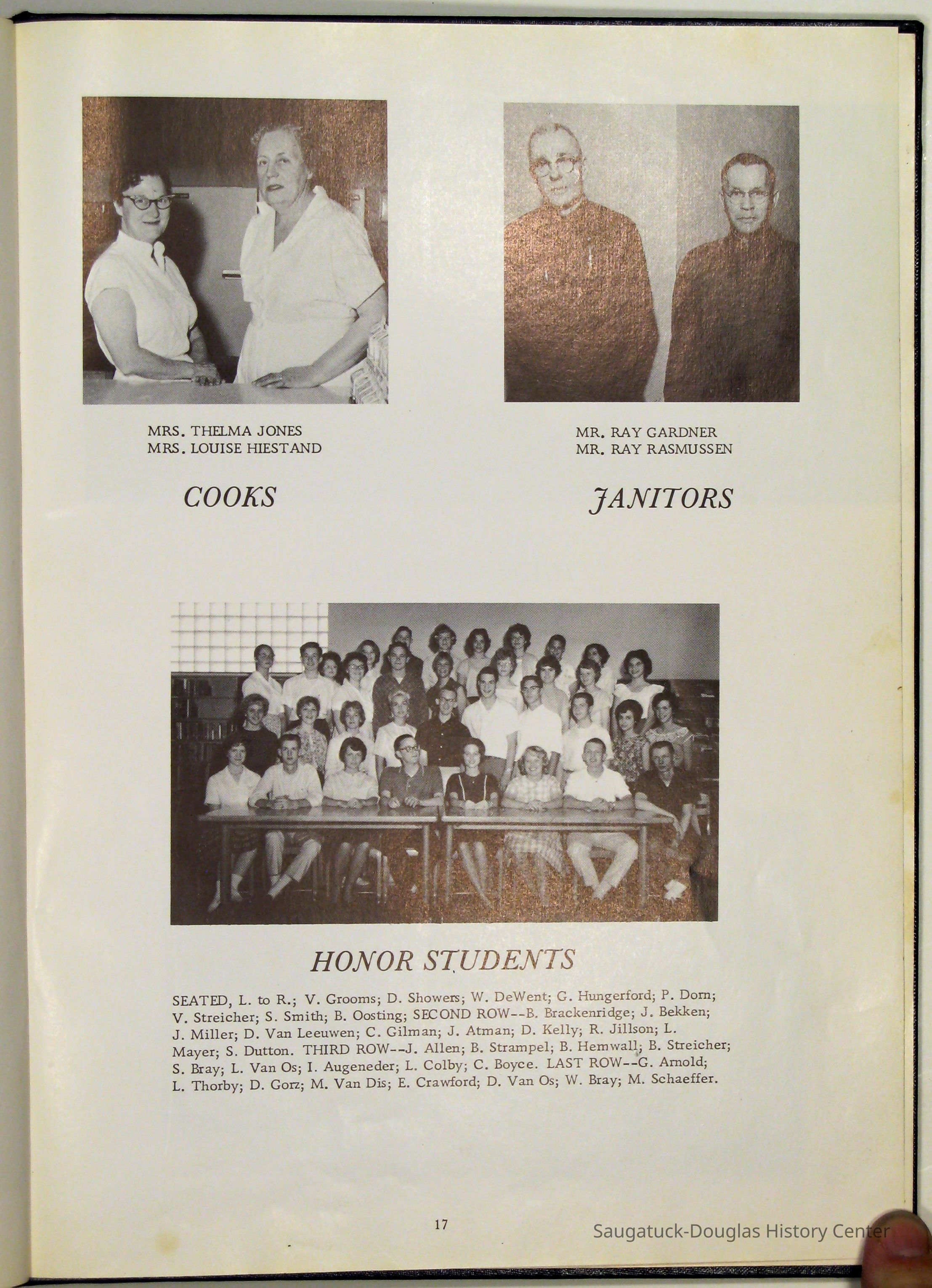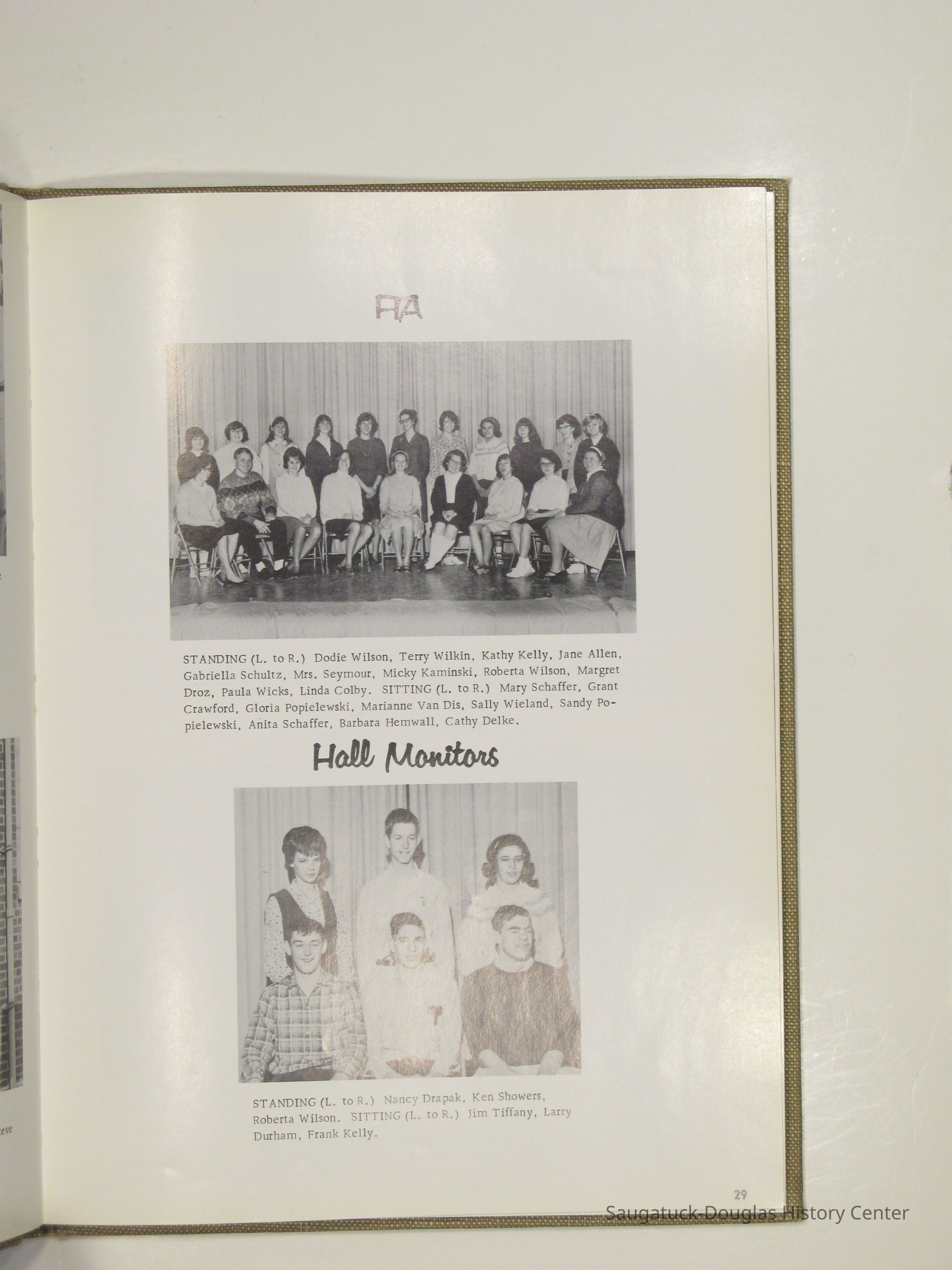 Three "Compass" Saugatuck High School yearbooks from 1963 (blue cover), 1964 (beige cover) and 1965 (brown cover). Also images of the yearbook's pages photographed by Chris Yoder in 2008.
