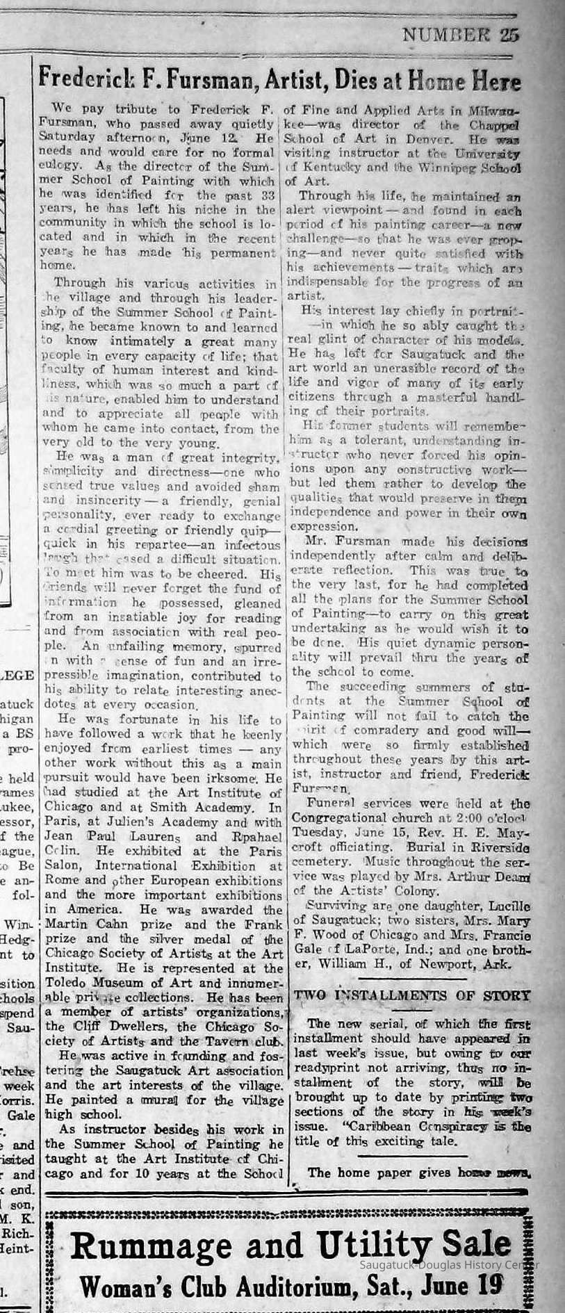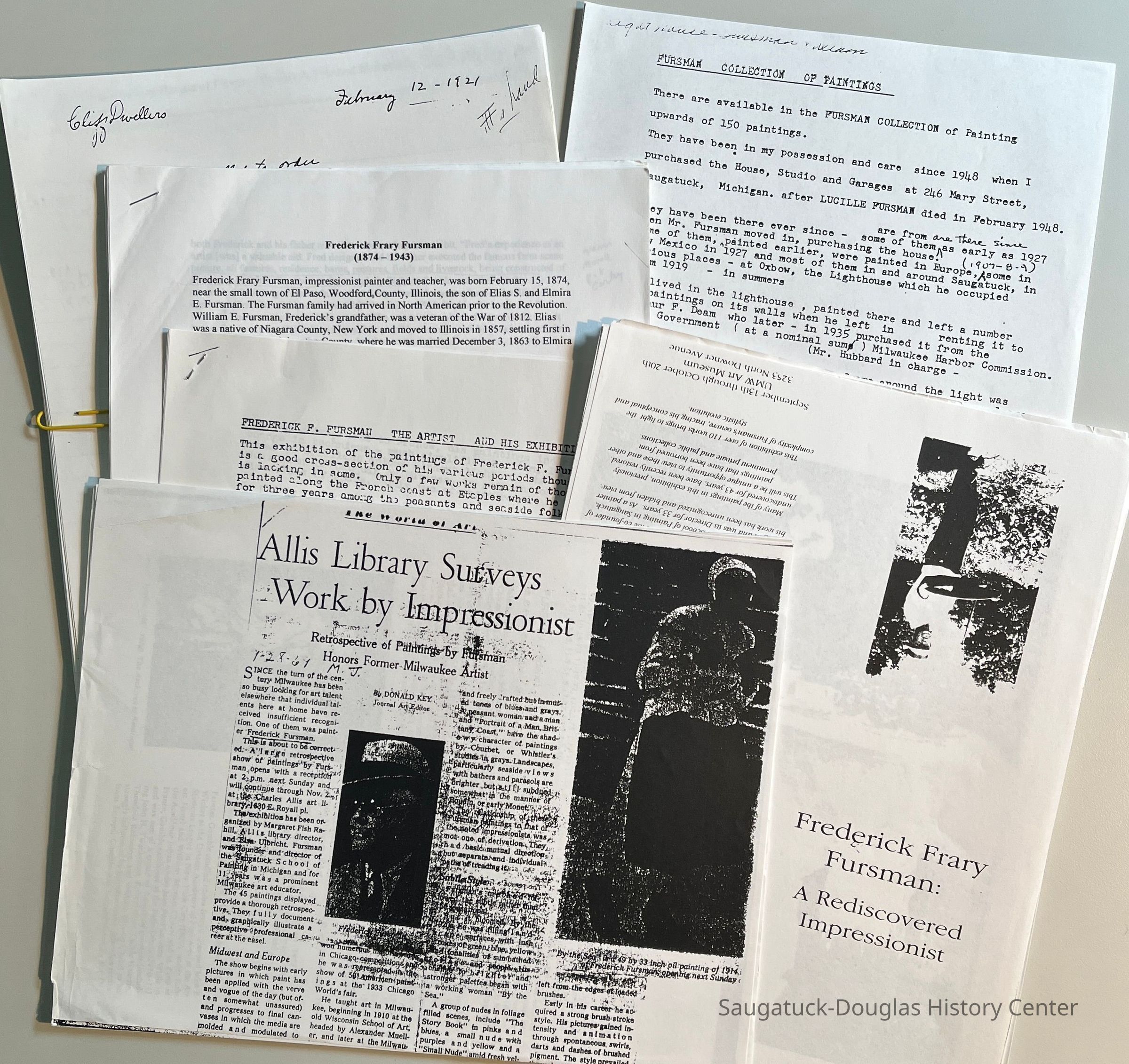 Research about artist Frederick Frary Fursman collected and the Chicago Cliff Dwellers, a private club for arts supporters. Mostly photocopies collected by James Schmiechen.