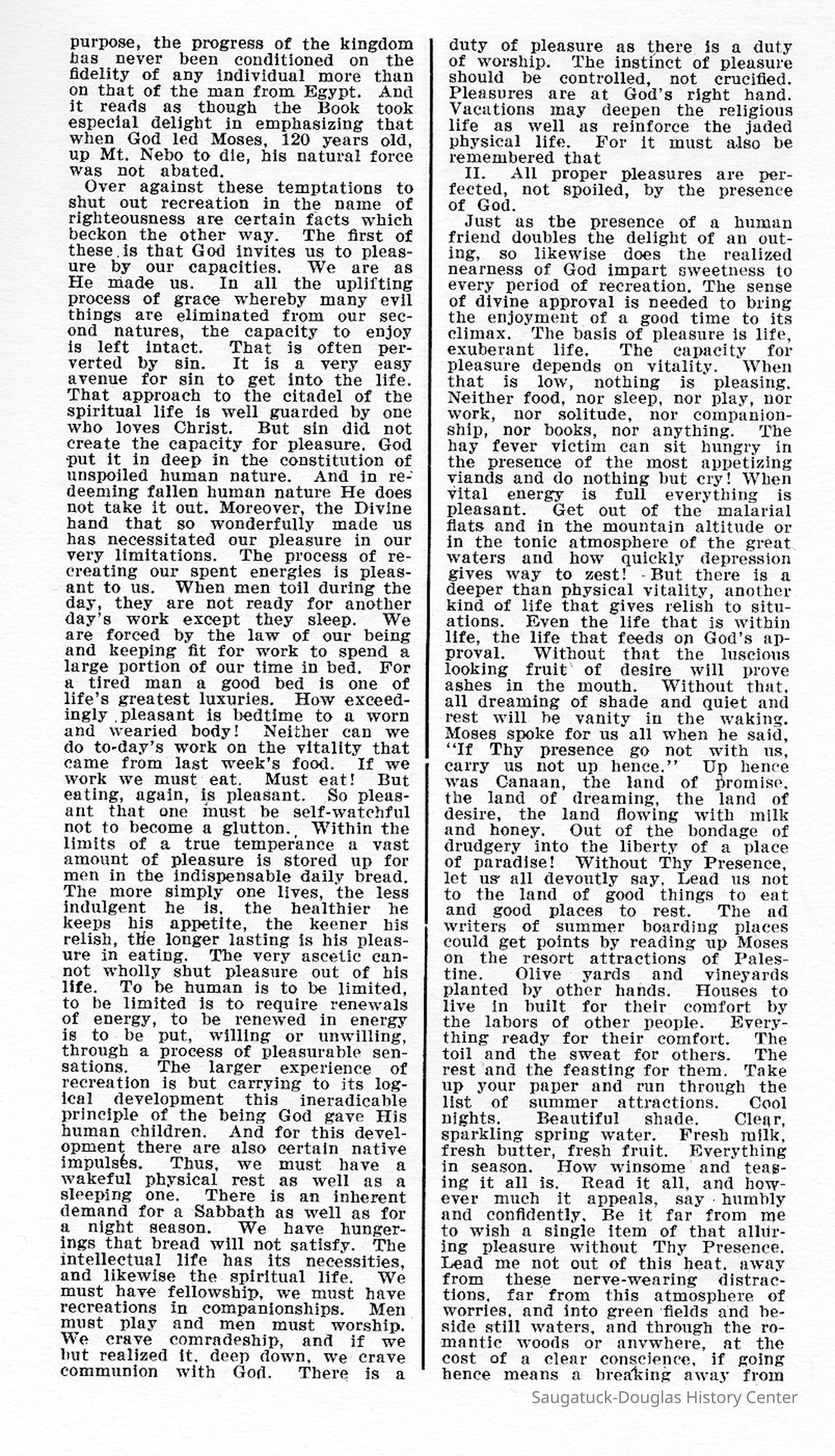 The Ideal Pleasure Resort, Sermon preached by Rev. G. N. Luccock at the dedication of Lake Shore Chapel, near Saugatuck, Mich., July 17, 1904.