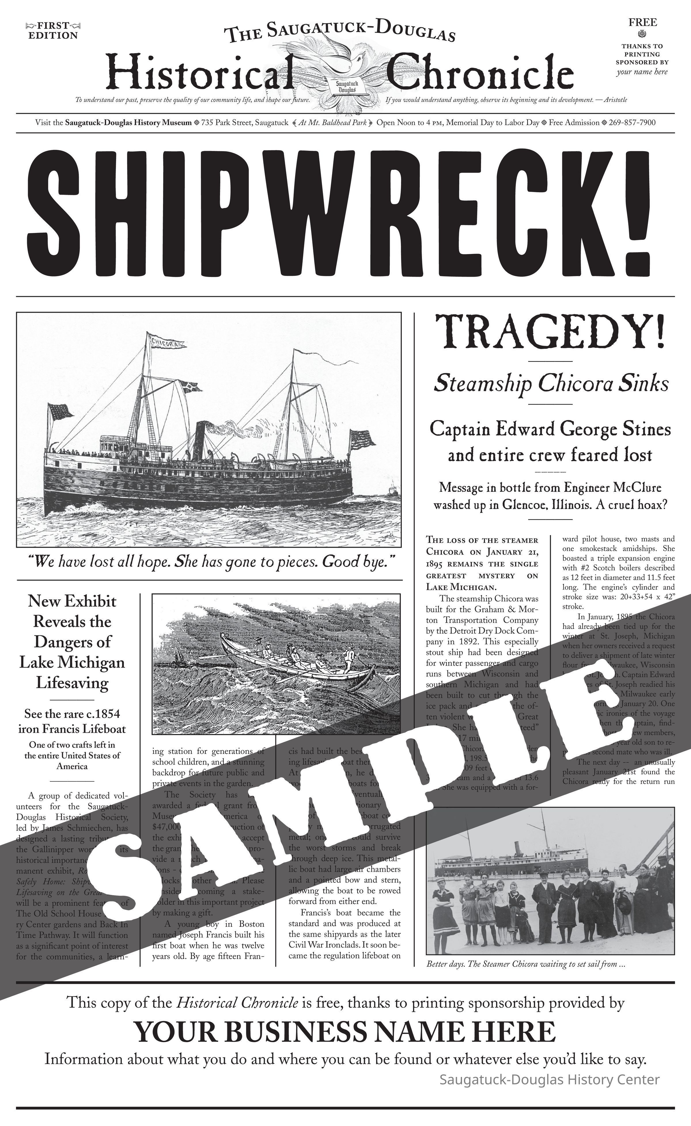 This newsletter was produced to advertise the exhibit at the Pump House museum and as a general history and advertisement vehicle.