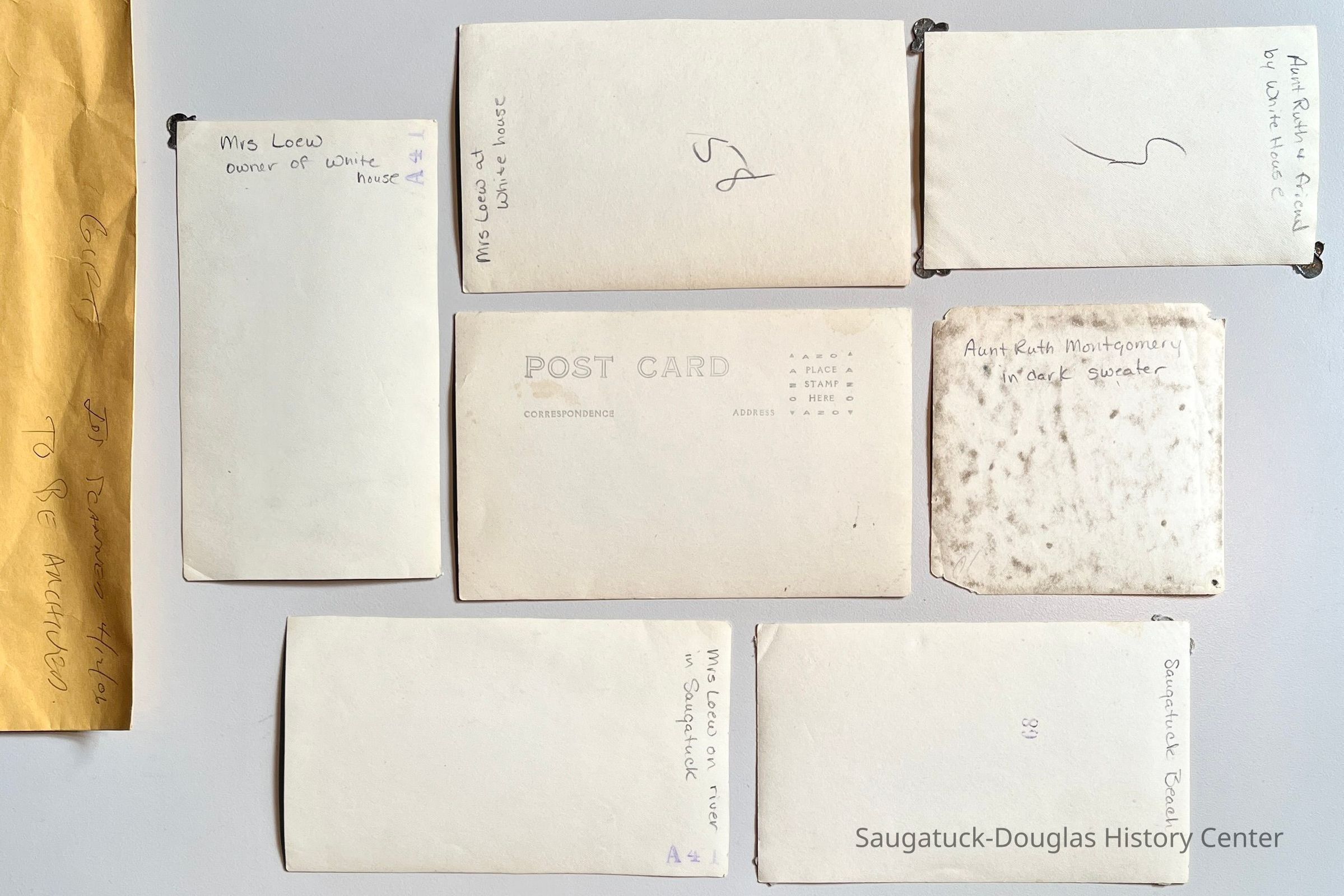 Real photo postcard of guests on the lawn and porch of the White House with Mrs. E Lown.