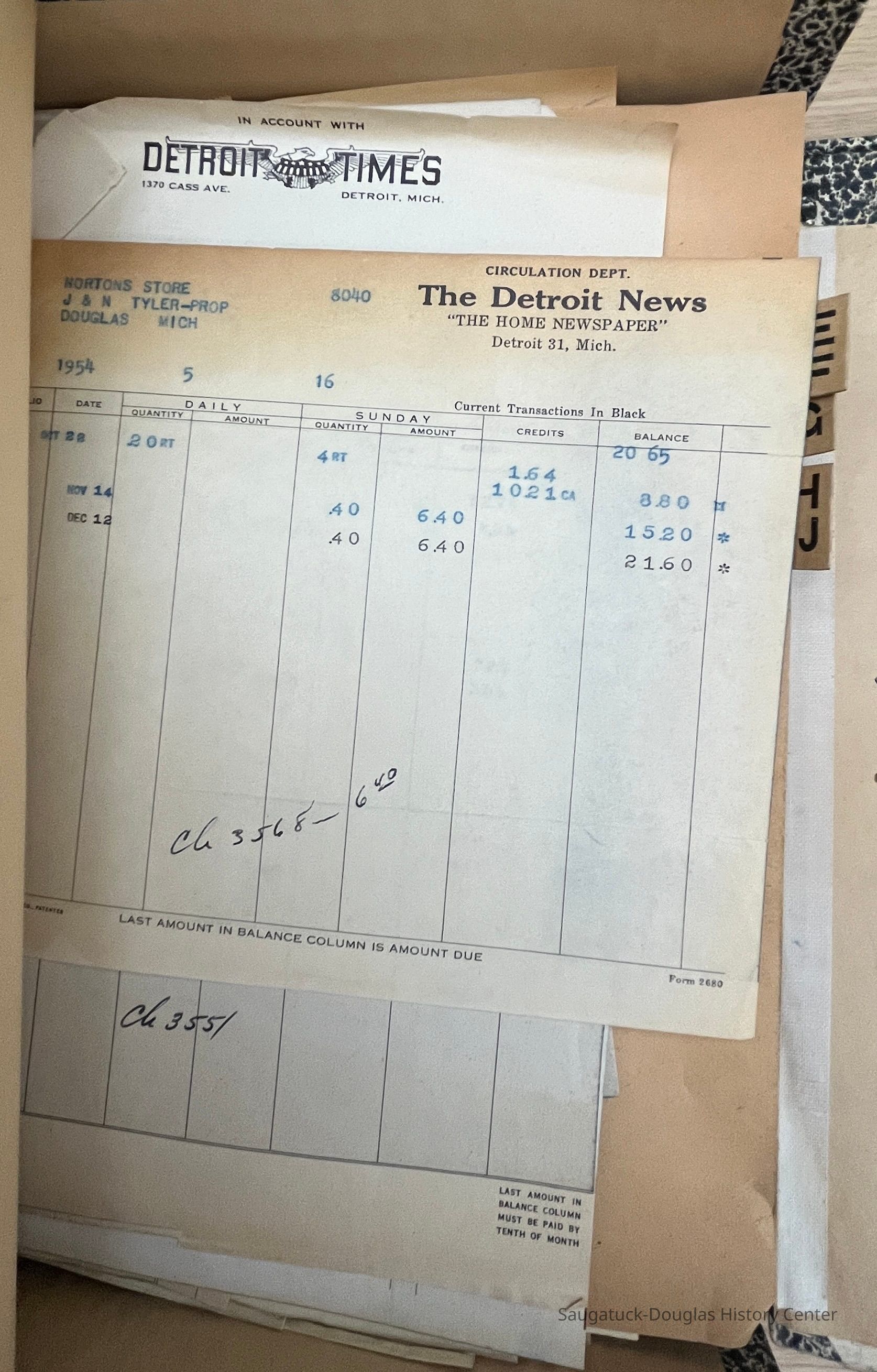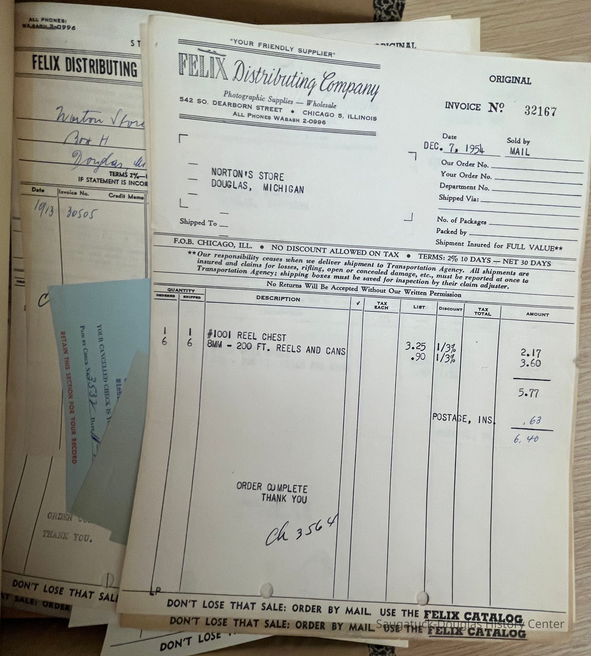 Two "Letters" document filing boxes crammed with receipts from wholesale purchases made to stock the Norton Store in Douglas in the 1950s. The photos attached to this entry give a small sampling of the contents of this collection.