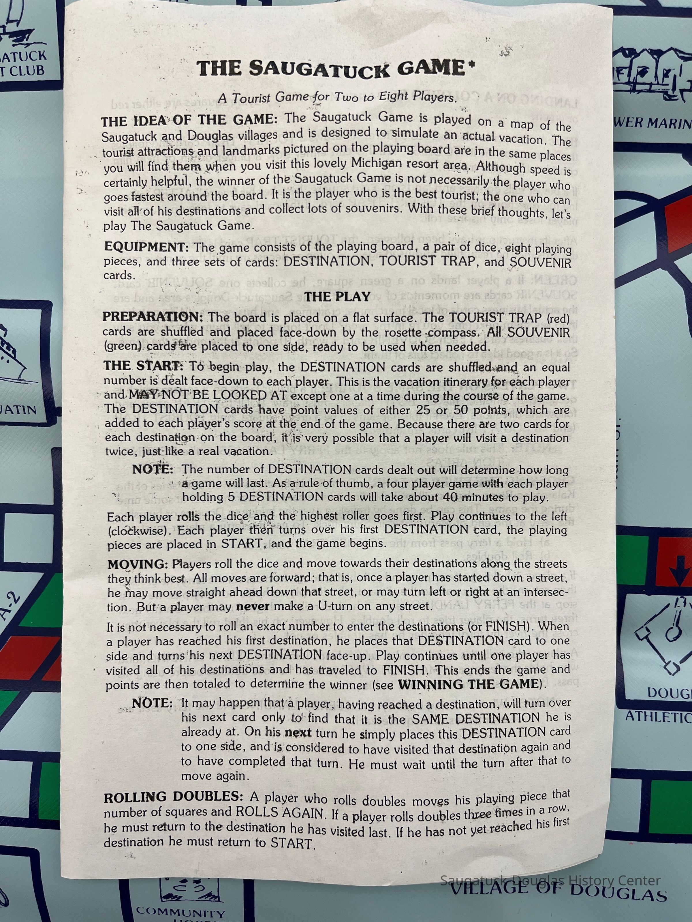 This game was designed to simulate the Saugatuck-area tourist experience.