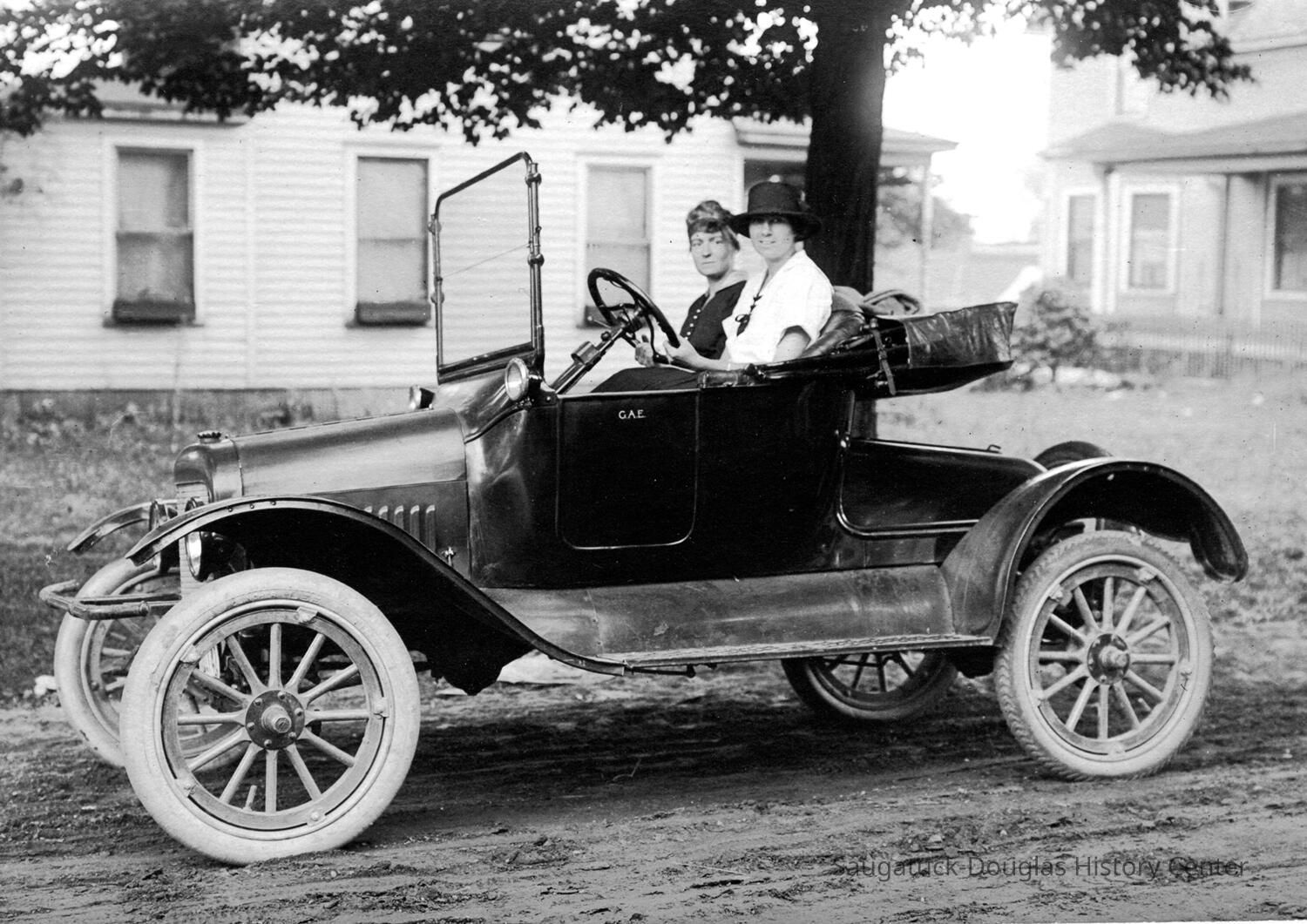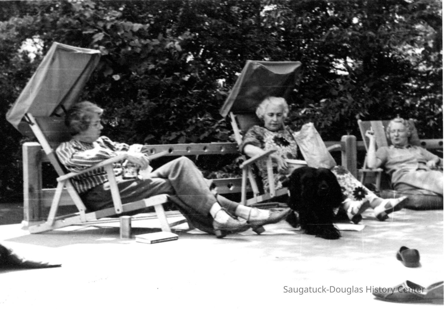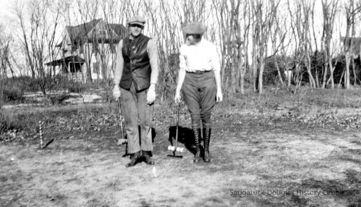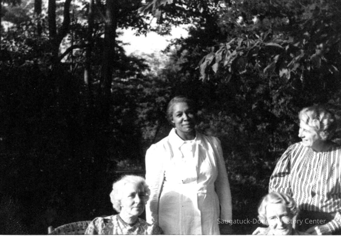 Florence "Dannie" Ely Hunn A Pier Cove Designer and Architect Re-discovered. Text from "Tuesdays at Noon" talk at Museum, July 25, 2000, by James Schmiechen Florence Ely Hunn (born Aug. 24, 1887, died March 24, 1984, age 98) described herself as "a plain mid-west gal" but in life she was far from plain and ordinary. In fact, she was a very unconventional woman who found the Saugatuck-Pier Cove area the perfect place for the expression of much of her personal and professional life. She was born into a farm family in Des Moines, Iowa in 1887. Her mother was Lucinda Bonine (died 1930). Her father was Ely Simonds Hunn (died 1927), making her cousin to O. C. Simonds, the well-known Chicago landscape designer and summer resident of Pier Cove. She was, through her father, a tenth generation descendant of the Mayflower settler Jonathan Brewster. Soon after 1940 her parents purchased a small cottage in Pier Cove, just to the east of the Simonds cousin's Orchard House. A photograph of her in her early twenties shows her on her horse"Bob" dressed in a cowboy outfit, with her proud father standing nearby. At the age of 20, at her father's urging, she traveled west and became a horsewoman and a worker in mines and oil drilling fields. At 22 and 23 in 1909-1910 she attended school in Germany and France and traveled in Greece--having studied the Greek language in her Iowa school. She graduated from the University of Chicago at 24 and then continued her studies at the Chicago Academy of Fine Arts and the Art Institute of Chicago. When America entered World War I in 1917 she wanted to join the American cause overseas but instead contributed her services to Uncle Sam by managing one of her father's purebred stock farms for the production of food for the Army. At the age of 28 she began designing building exteriors -- a passion pursued for the next 60 years. When the war was over she sought to fulfill her dream of the formal study of architecture but because architecture schools were not admitting women, she did what many other women in the same predicament did, she became an interior designer. At first she became apprenticed with one of the best known interior decorators in Chicago, and then in 1925 she opened her own shop. Her Chicago studio and home was at 101 East Oak. She later moved the studio to 920 N. Michigan Avenue. In March of 1934 she and Frances Crumb opened a design store known as "Contemporary" at 49 Cedar Street which featured avant-garde furniture and wall coverings. The success of this store led to the opening of branches in New York and Philadelphia. She was a frequent lecturer on interior design at the Chicago Art Institute, wrote articles for the Chicago Tribune and other magazines, and in the 1930s presided over a weekly interior design talk show on Chicago radio WMAQ. She was a founder of American Institute of Decorators -- of which she was vice-president in the 1930s. Her early interior design centered on 18th Century English and American hand 1920s "Colonial Revival") period work. Most of her clients had large apartments on Chicago's Gold Coast and homes in the hunt country of nearby Barrington, Illinois. She did some East Coast work, including the Price-Waterhouse partners' houses, in Rye, New York. By the 1930s Florence Hunn had become one of the leading American designers. Her portrait by Wellington Reynolds of the Art Institute of Chicago, in the American impressionist manner, hung at the Art Institute of Chicago for one year. It is now in the possession of the Saugatuck-Douglas Historical Society. What kind of work did she do and what makes an interior designer famous? With regard to interior design philosophy, her bread and butter, then, centered on creation of high class 18thcentury English and French interiors and hence she fit well into the traditional side of her time. She worked for the moneyed class, which had long dictated that the only good interior design was that which copied the 18th century. Like a good designer she hated the 19th century (she once said, "the 19th Century might readily be wiped from our memory ...") and at first appears to have had little to do with the 20th Century. But things were changing, and Hunn took up the modernist cause in a city known in the 1920s for its design conservatism. Although keeping with the traditional world of conservative interiors was goad far her pocket book,she also went off in a different direction, advertising her work as "new designs in furniture in the modern spirit." Here we see her mimicking the anti-establishment and chic Art Deco and Art Moderne styles of New York.The New York Sun described her as "bitten with the modern desire to create entire rooms with geometric designs" in white, and in glass and mirrors. One of her new furniture designs was that of futuristic looking dining table with mirrored edges and white and gray painted chairs. One of her specialties was modem wallpaper and furniture design, and she was a pioneer in introducing Art Deco style glass molding (in green) and mirrors into room decoration, modernist tile, painted furniture, and, by the 1940s, California-inspired architecture. Hunn's drift to the modern even showed up in Douglas in 1954, where she was commissioned to remodel the old Tara Restaurant-giving it a new entrance, iron railings, and interior murals (no record of the Tara images exists), as well as in the design of two ranch-style lake shore cottages. After World War II, responding to new needs far new housing formats, Hunn was one of the organizers and designers of the influential "At Home In America" show in Chicago in 1954, a trade show that pioneered in the introduction of modern house design in the United States (she used Baker furniture in the living room). Like her professional life, Hunn's private life was far from ordinary, and she appears to have been able to play to both the traditional social world and a more bohemian and non-conformist world at the same time. Most importa