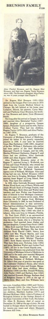 Brunson, Eugene Eliel 1851-1934Taylor, Philander 1820-1890Brunson, Alice Mehitabel (Taylor) 1856-1909Taylor, Nancy A. (Collins) 1820-1879