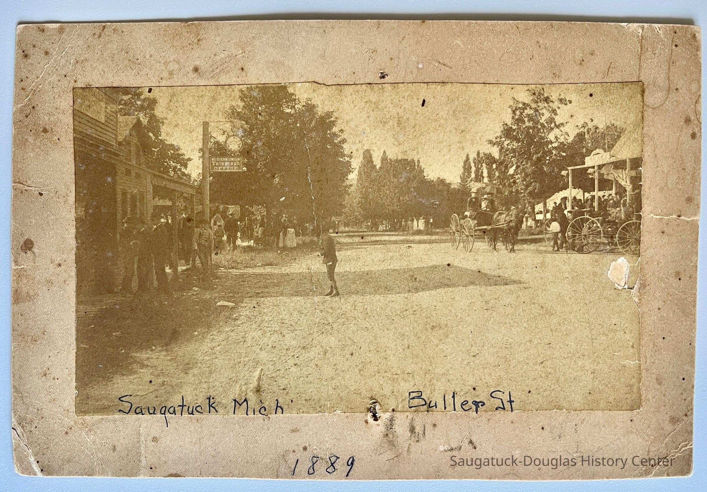 This photo shows the 300 block of Butler Street, looking north toward the Village Green, circa 1889.
