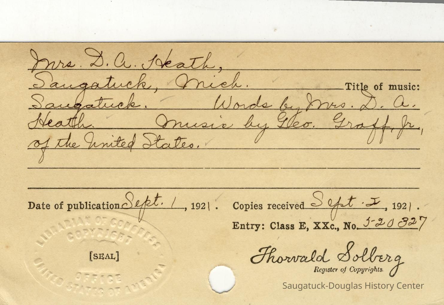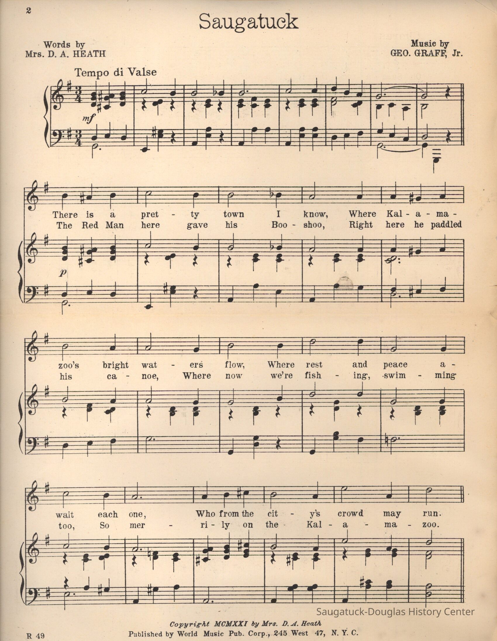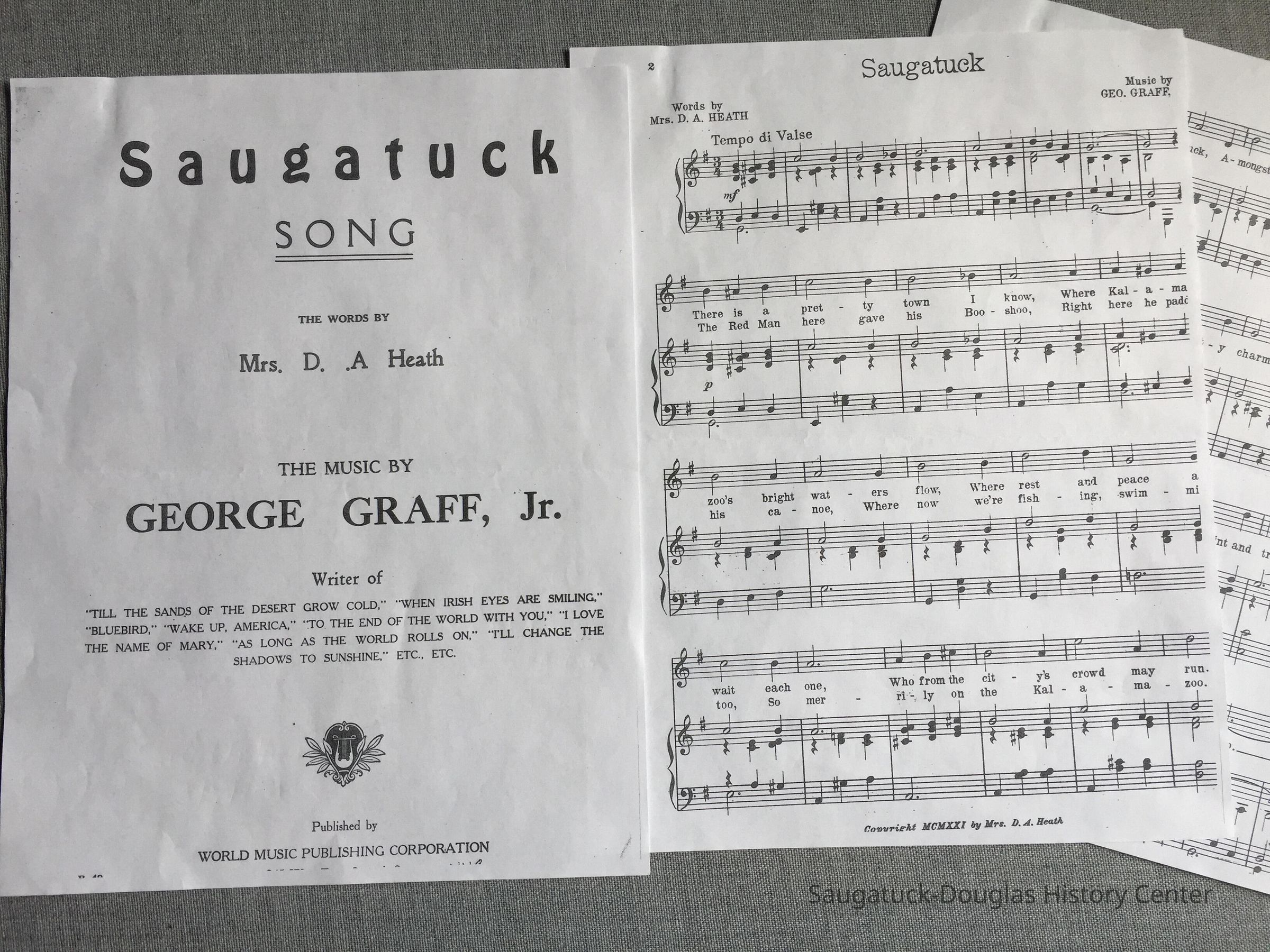 Words by Mrs. D.A. Heath, music by George Graff, Jr.