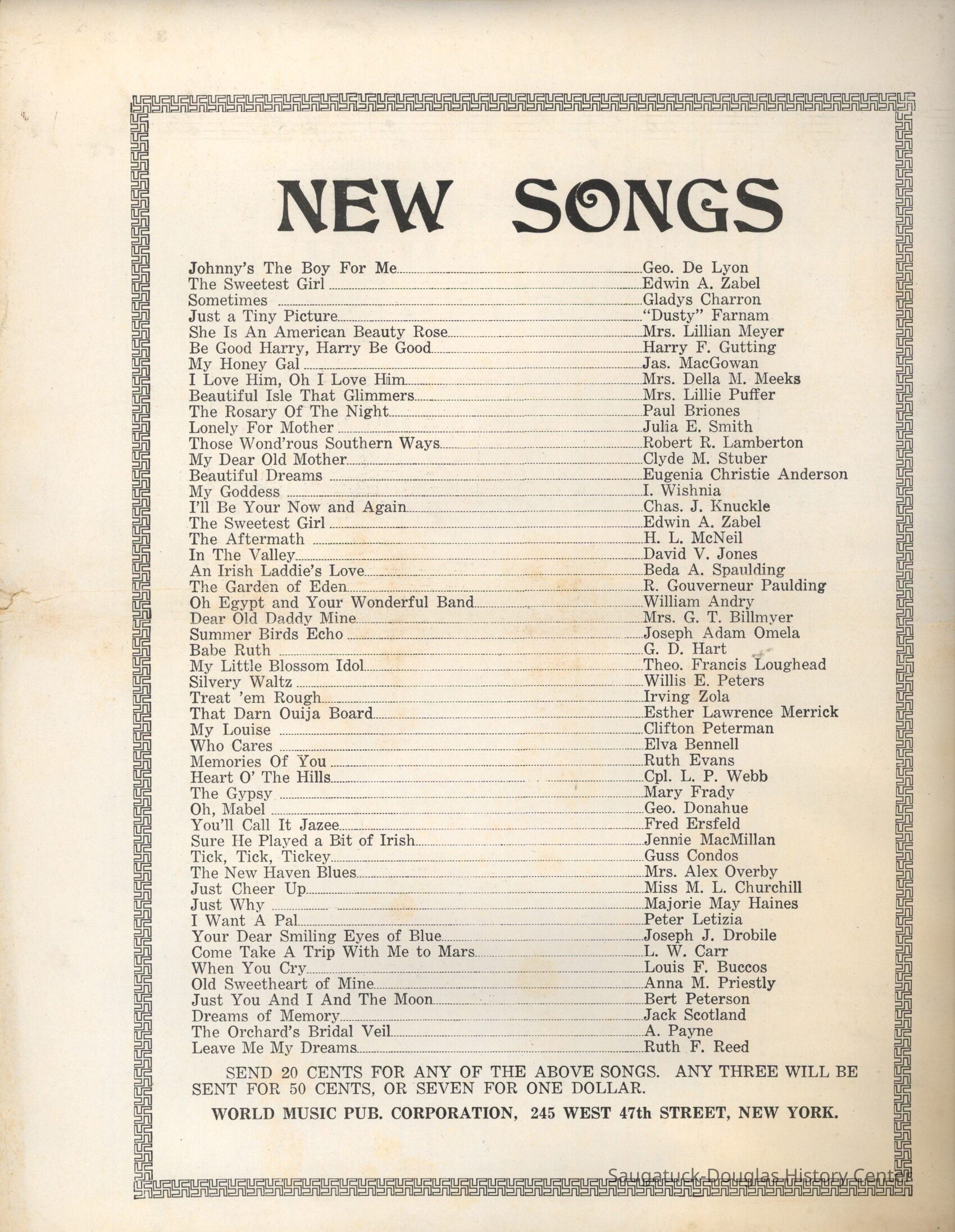 Saugatuck Song sheet music photocopy