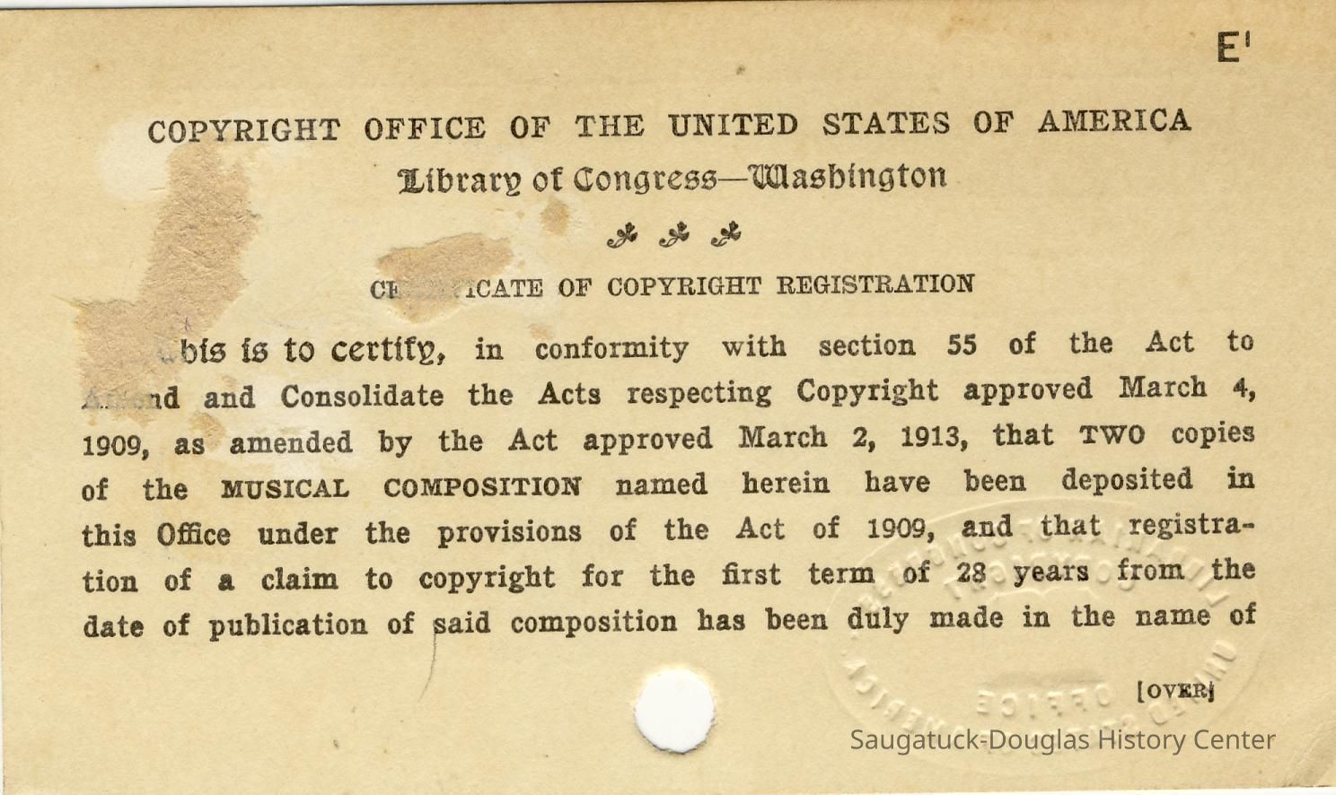 Copyright MCMXXI. (1921)