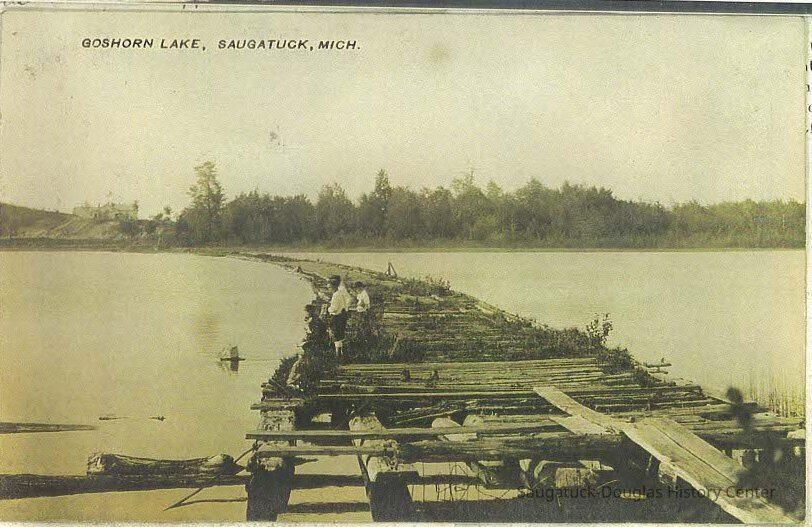 Photo copy of the floating bridge on Goshorn Lake approx 1908