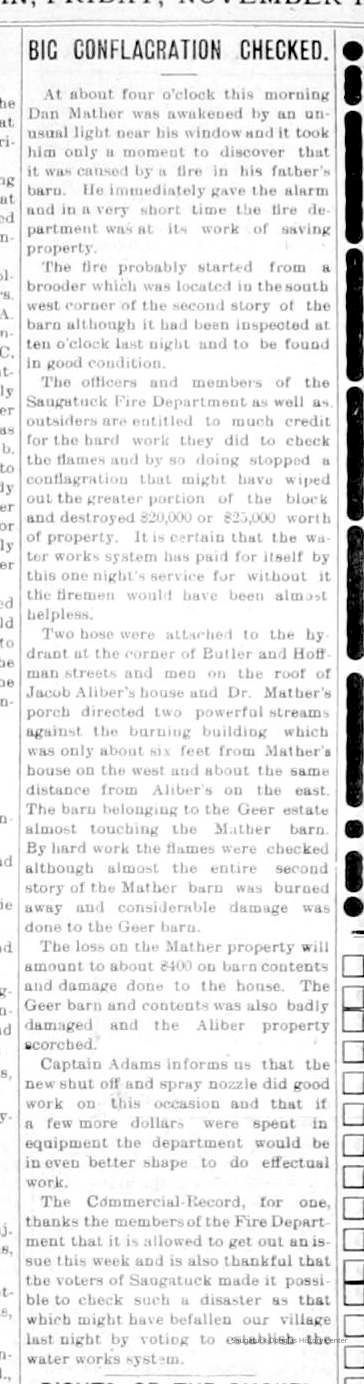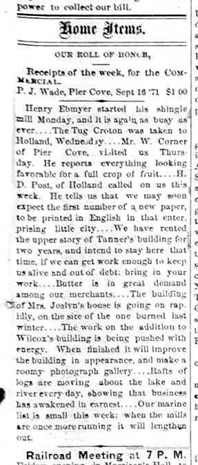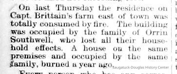 Spencer, Michael B. 1820-1891Gray, Thomas 1820-1895Joslin, Ellen 1832-1898Goshorn, Perry D. 1832-1895Goshorn, John 1827-1904May, William Augustus 1850-1935Newnham, Richard B. 1819-1908/9Francis, John 1846-1924Red Ribbon Club SaugatuckSears, Frederick A. "Fred" 1843-1913Baker, George Harris 1841-1910Wilson, John c1828-1893Ebmeyer, Henry 1831-1894Woodhull, R.Stimson, Henry H. 1824-1916Dole, Thomas 1812-1889Woodworth, Warren A. 1836-1922Coates, Florence (Heath)Goodrich, Mrs. M.Winslow, Damon Andre 1819-1899Falconer, Daniel 1831-1897Southwell, Oren F. 1856-1932Moore & Dutcher Flouring Mill/Douglas Flour Mill/McDonald Flouring MillDutcher, Thomas "Bent" Benton 1836-1903Reed, Samuel Caleb 1848-1923Hutchins, Henry Hudson 1854-1933Waldo, George Washington 1843-1900Lighthart, Francis "Frank" 1852-1938Saugatuck Union School 1866-1896Kleeman, Reinhold F. 1838-1894 or 1890Greenhalgh, Charles Rowland 1852-1926246 Culver/Restaurant Toulouse/Reed's Livery/Union House132-140 Butler/Brass Anchor/Prajna Gallery/Celebration/Elms Hotel/Francis residence/Morrison HallNysson, Albert Walter 1842-1909Gossweiler, Frederick "Fritz" 1859-1942Schumann, Andrew J. 1841-1932Powers, Stephen "Steve?" 1843-1908Frank Flint's store in Douglas early 1900sFlint, Frank W. 1882-1953Drought, William 1861-1924Baker, Dewitt C. 1872-1909Brunson, Eugene Eliel 1851-1934Litzenberger, JacobKleeman, Theodore F. 1829-1906Barber, Daniel L. 1840-1909Koning, John 1858-1927Pride, Edward S. 1848-1912Davis, James F.Heath, Doc Anderson 1865-1947Wyers, James William 1858-1929Adams, Homer Henry 1872-1941Hoy, John Alexander Sr. 1853-1932Lundgren, John M. 1845-1908Kool, Arthur "Art" "Aart" 1842-1920Gaylord, Charles Wesley 1851-1937McDonald, Henry Ambrose 1850-1925H.A. McDonald Central Store, Douglas (not McDonald's People's Store)Mather, Dan Willard 1891-1962Batavia Resort/Halverson-Nichols farmHalverson, Hans "Henry" 1841-1925Hayes, Frank Gage 1867-1934Basket Factories in Douglas circa 1851-1927Lown, Fanny (Warner) Weible 1864-1940Lown, Edward 1850-1942Good Goods/White House/James Dole house/106 MasonCampbell, Alexander C. Jr. 1894-1971Sewers, Frank Wilmot 1894-1970Mt. Baldhead Hotel 1933-1959/Tourists' Home 1901Tara Restaurant/Spencer House/200 CenterWilson, William J. "Bill" 1915-1992Heuer, John Deitrich "Dick" 1844-1925Shriver, Alexander Joseph "Alex" 1846-1912Wilmot, WillMenier, Fred c1850s-1900sFishtownCoghlin ParkUpham's Opera House/Miller's HallHotel Casablanca/Grace Hotel/Roamers Inn 1904-1969Walz, Ruth 1894-1980Brackenridge, Grace (Whipple) 1895-1970326 Butler/Grins/Martha Shop/Dr. Walker's office/Miller Robinson/Turell Building