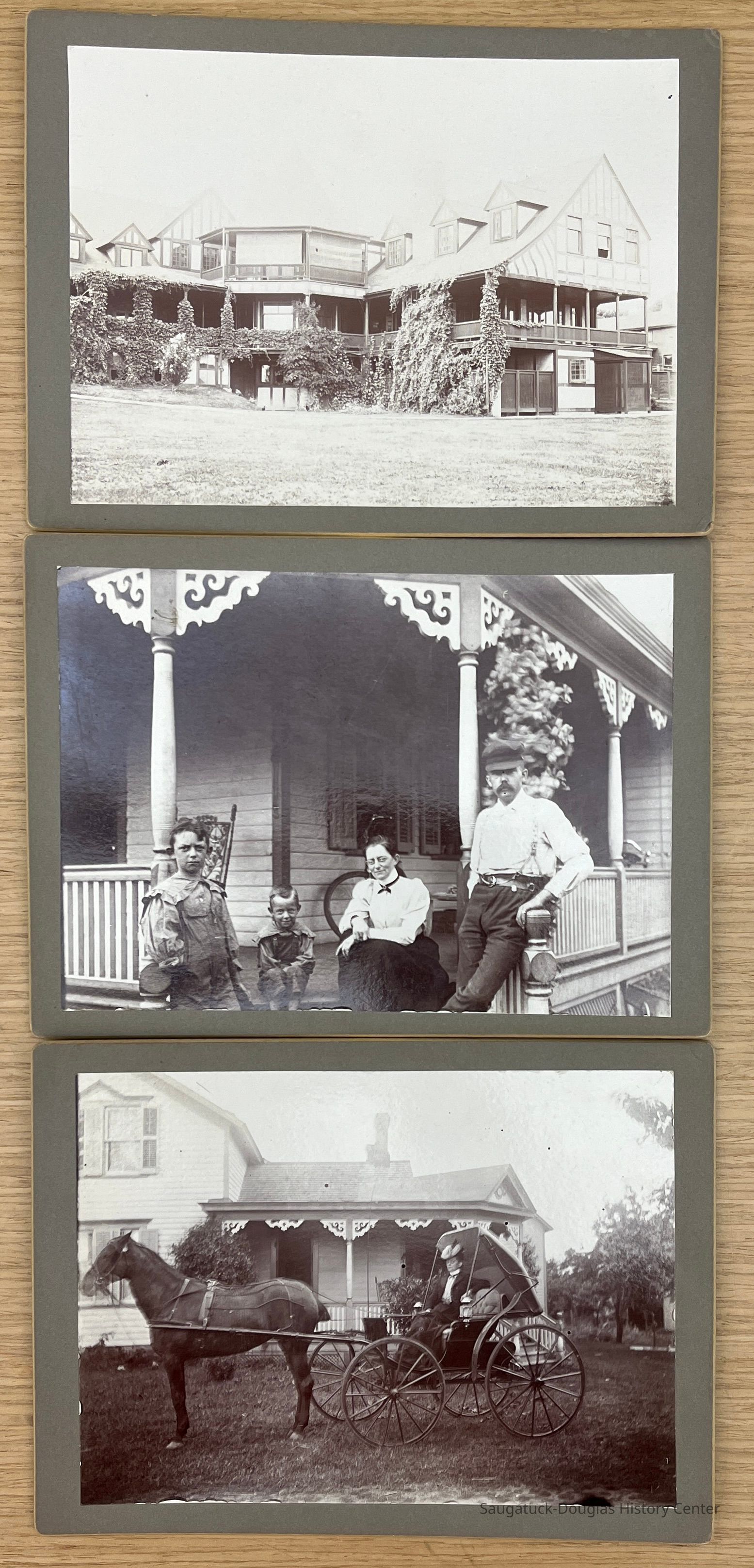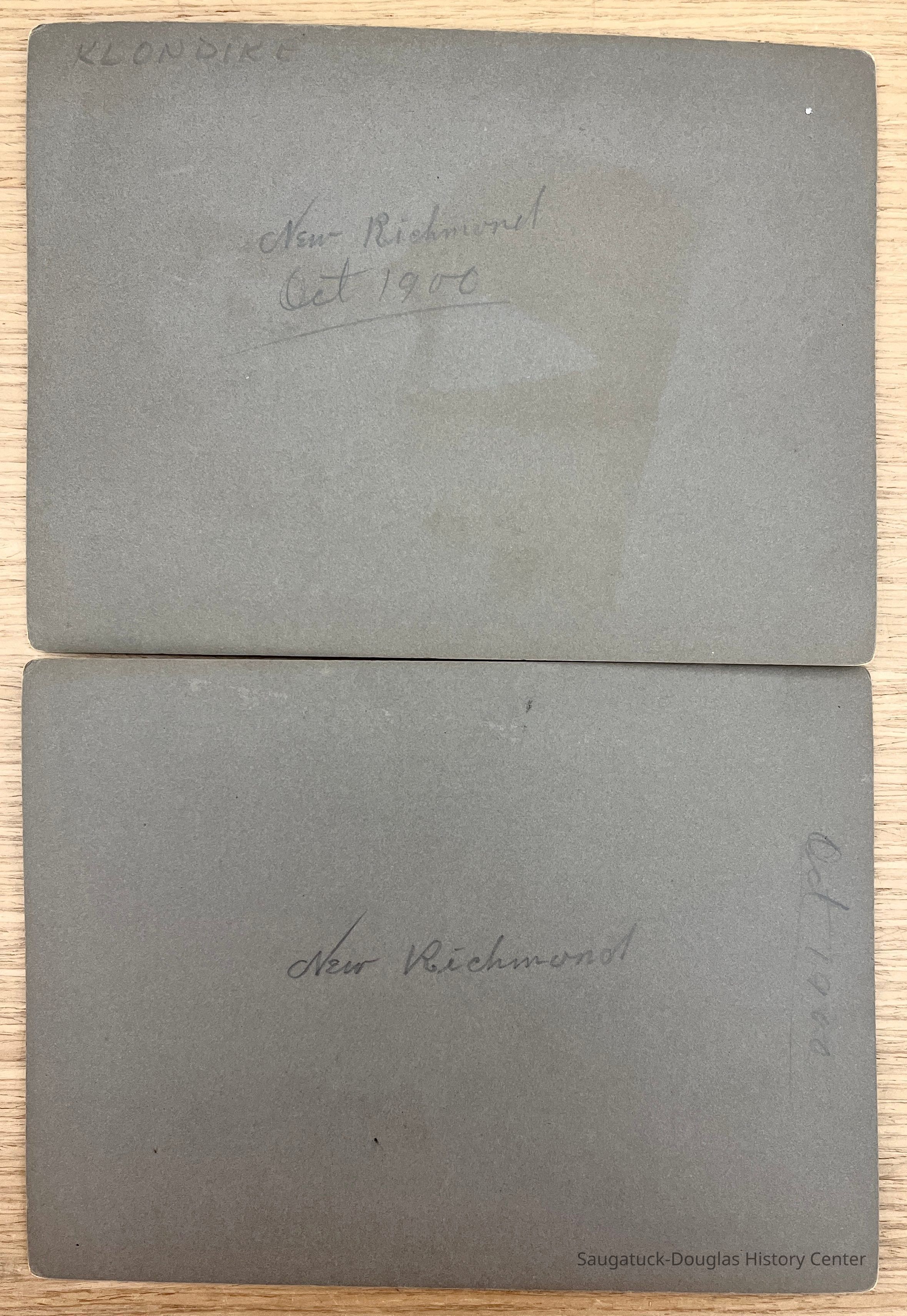 Five photos mounted on heavy, gray card. All have "New Richmond" and/or "Oct 1900" written on the back.