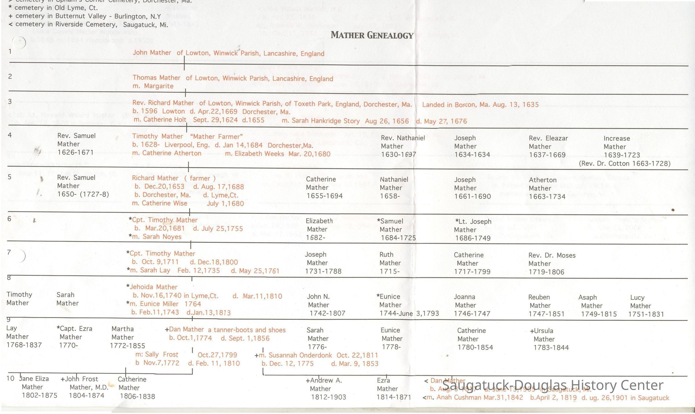 Mather-Cushman Family Chart