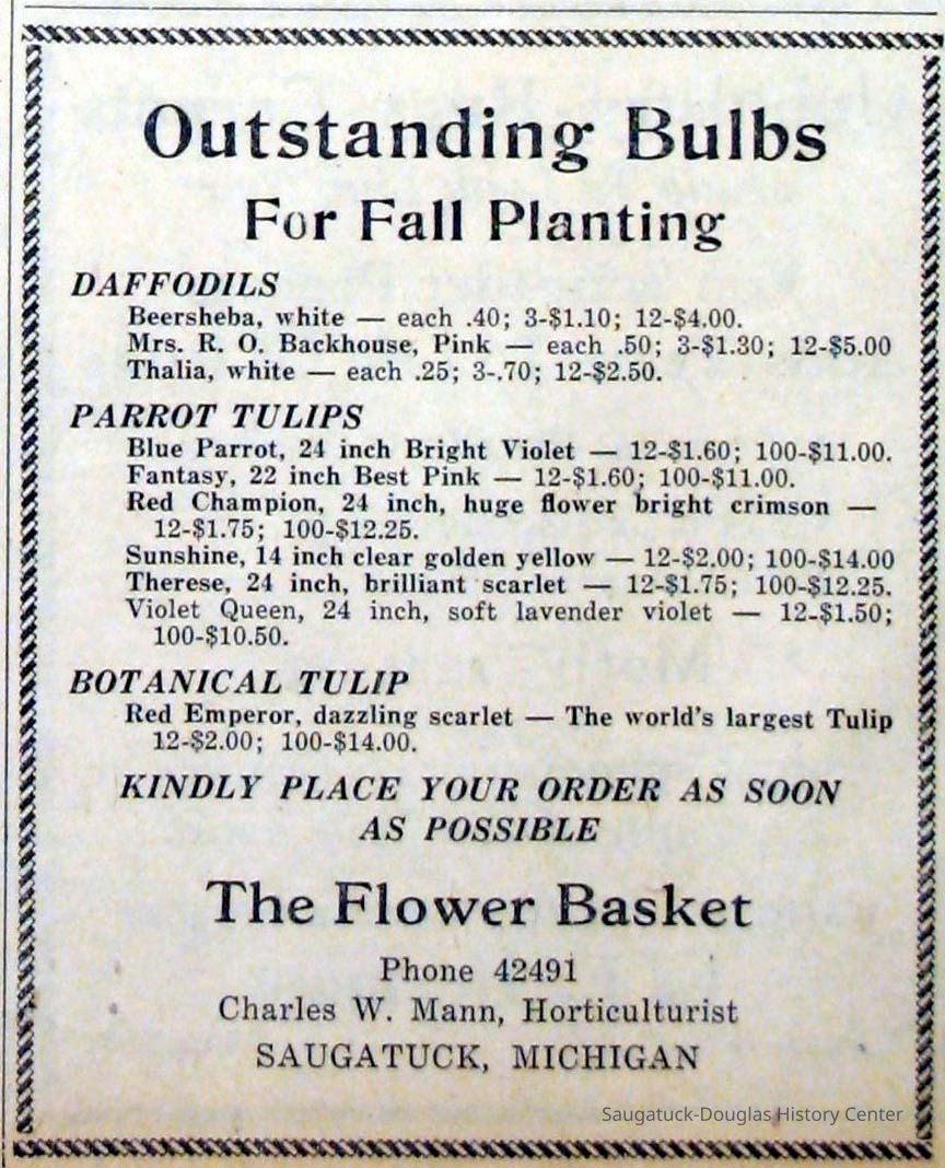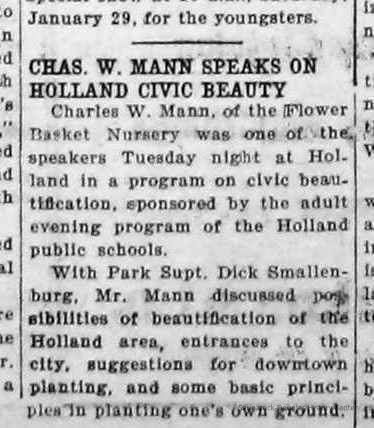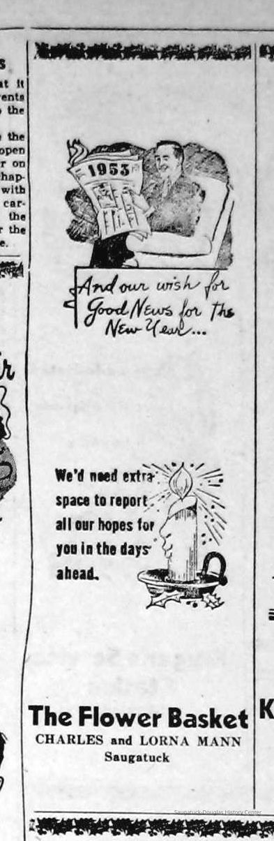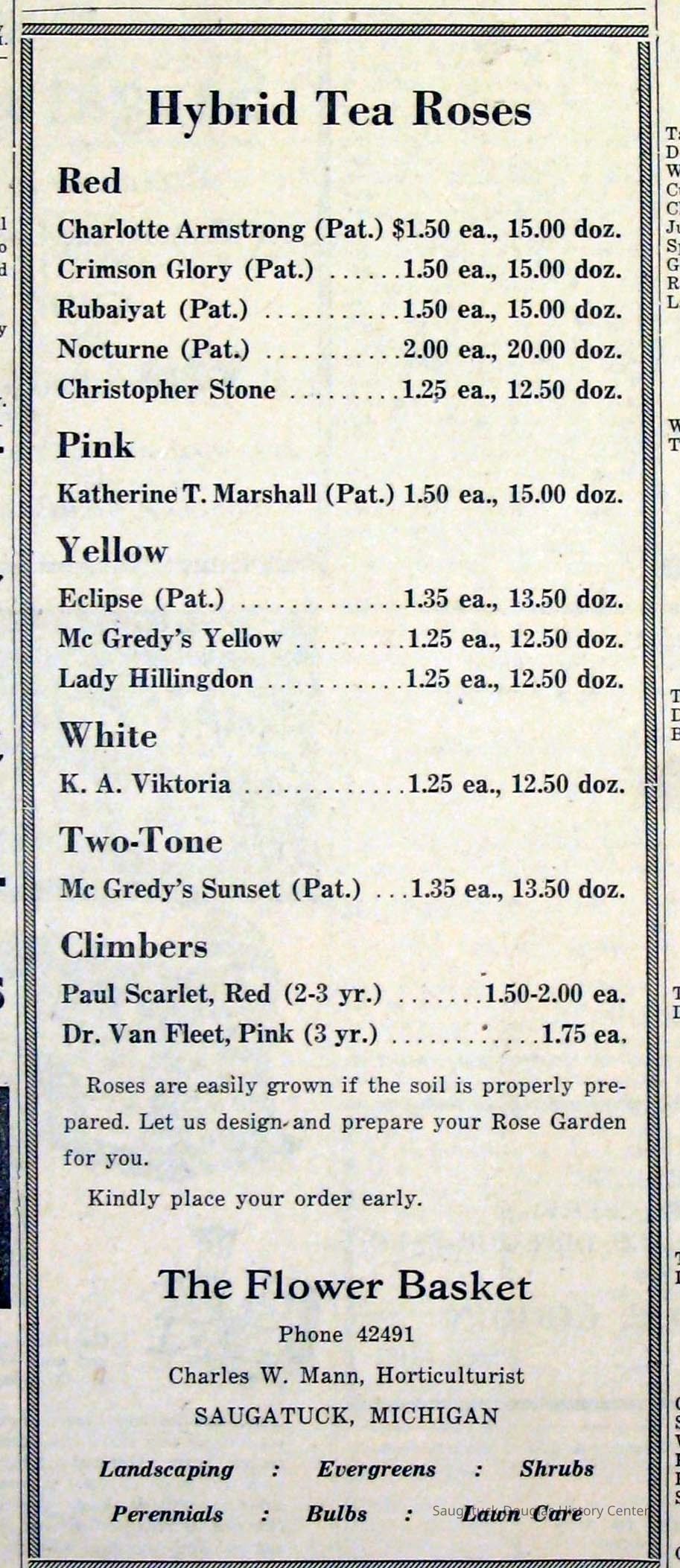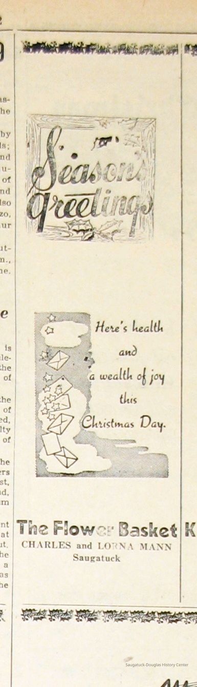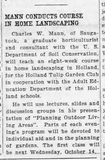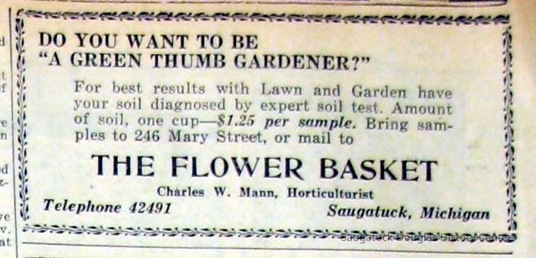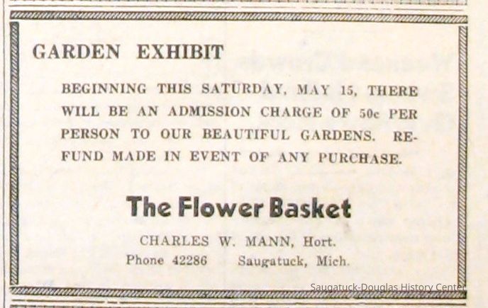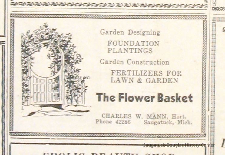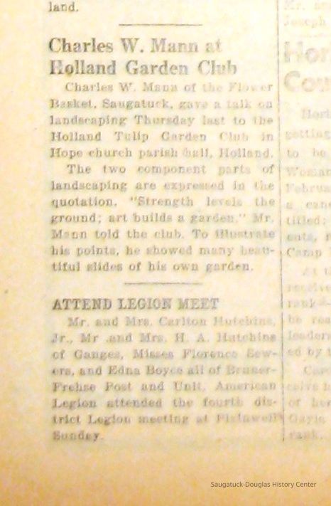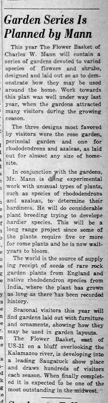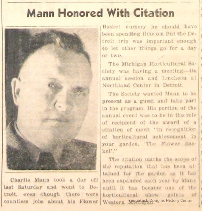 Digital scans of newspaper clippings from 1949 to 1957 about horticulturalist Charles "Charlie" Mann including ads for Mann's Flower Basket.