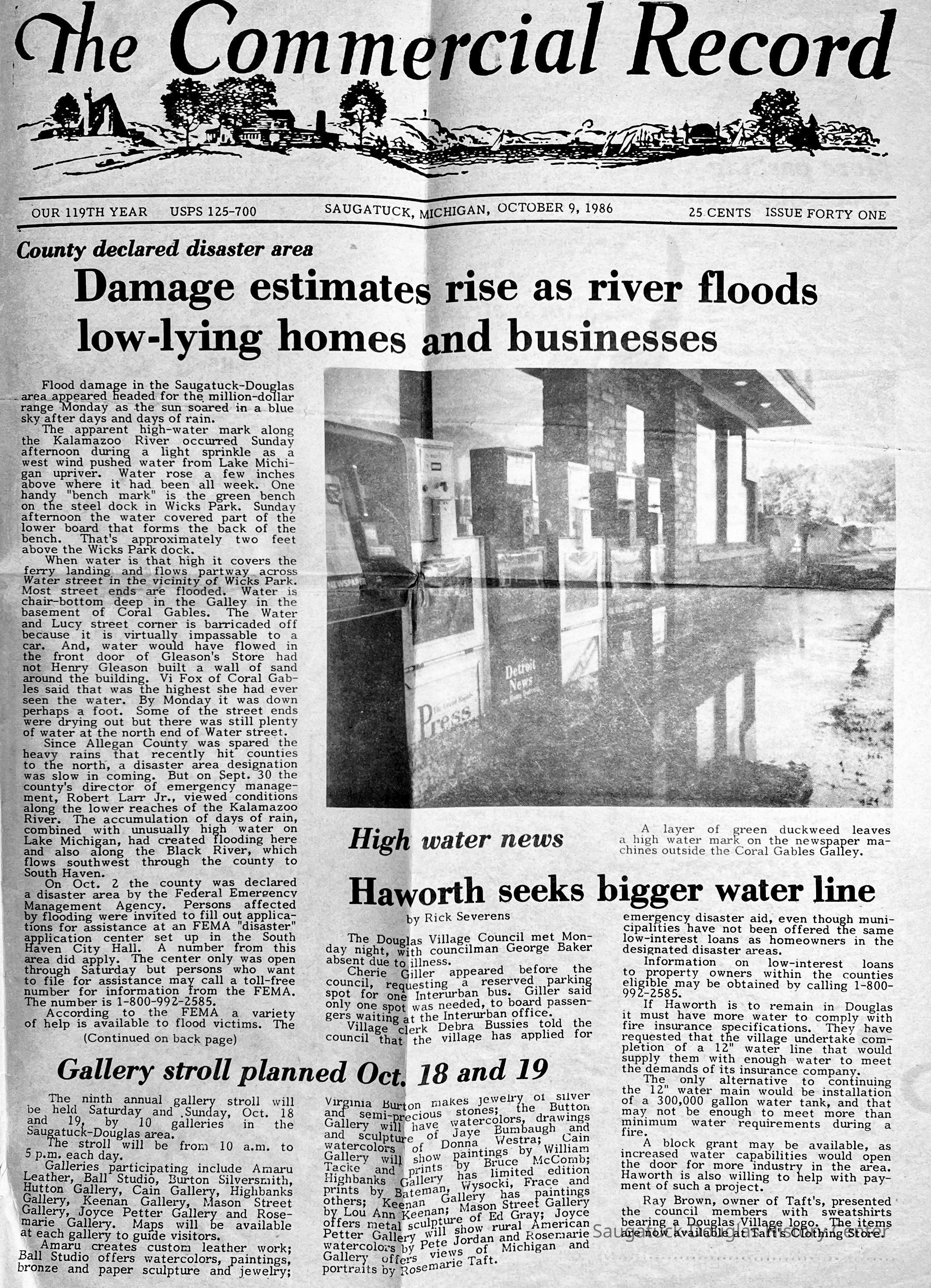 Flooding Oct. 86 and high water in Saugatuck and Oval Beach dune erosion, Dec. 1985