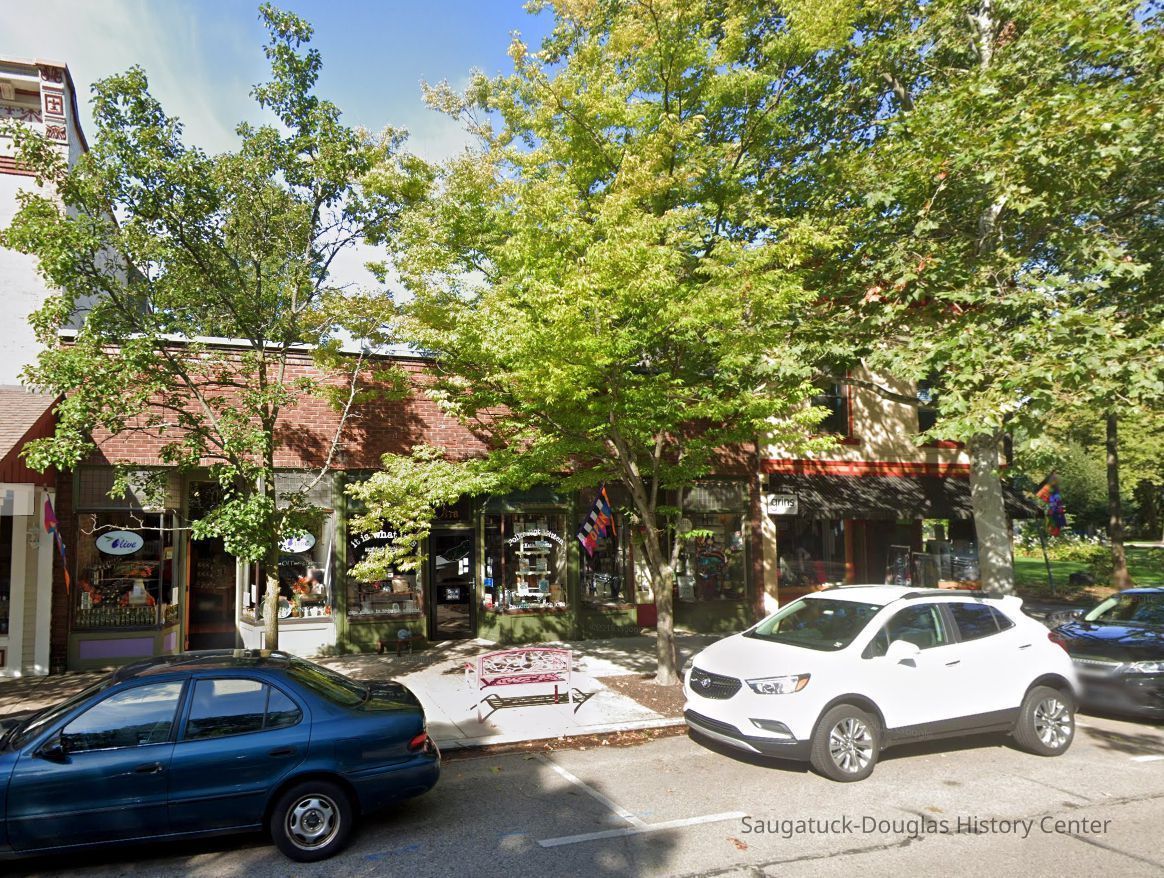 Clark, Margaret Ruth (Sessions) 1927-?308 Butler/American Spoon/Sessions IGA/Corkill, Clifford 1896-1955Newnham, Harry W. 1891-1970Bolton, Red, John, William and RobertBird, Charles Edmund Sr. 1855-1941306 Butler/Landsharks/Tripp's/Kruger's/C.E. Bird's/Ensign Drug Store/Wilcox BuildingBird, John Moffat 1899-1973310 Butler/Fenn Valley Tasting Room/Consumers Power/Village News & Tobacco314 Butler/Olive Mill/Huff Antiques/Jarvis/Niles Jewelery StoreJarvis, Leroy Dillon “Roy" or "Jarvie” 1887-1949318 Butler/It Is What It Is South/Hopper/Zwemer AgencyNaughtin, SaburniaZwemer, Joseph Benjamin 1879-1945Walker, Robert J.1869-1944Whipple, Henrietta (Hopkins) 1865-1951Hotel Casablanca/Grace Hotel/Roamers Inn 1904-1969Christian Science Church/Barnett Bldg.Waugh, Lloyd Hall "Doc" 1897-1955428 Butler/Maplewood Hotel b.1860/facade 1923Big Pavilion 1909-1960238 Butler/James Brandess Gallery/Old Post Office ShopsGlik's/Oostings/Saugatuck/Seymour/Ross Phelps/Schnobel's Hardware Company218 Butler/Village Newstand/Funk's News152 Butler/Kilwins/Flint's Quality Store/Landmark Building/A.B. Taylor Store/Odd Fellow HallKreager, Herman E. 1883-1939106 Mason/Good Goods/White House/James Dole house/106 Mason325 Butler/Santa Fe Trading Company/Old World Bakery/Rosemarie/Wilson Ice Cream326 Butler/Grins/Martha Shop/Dr. Walker's office/Miller Robinson/Turell Building133 Main/Design Shop/Whipple Sister's House252 Butler/Tuck's Pandora Christmas Shop/East of the Sun/Cabin Tavern/Walz's Butcher Shop/Nichols Bldg.132 Mason/'Round the Corner Ice Cream Shoppe/Model Laundry/Metzger Building220 Water/Coral Gables/Hotel Saugatuck/Columbia Hotel/Leiendecker's Inn/Ebmeyer Shingle Mill