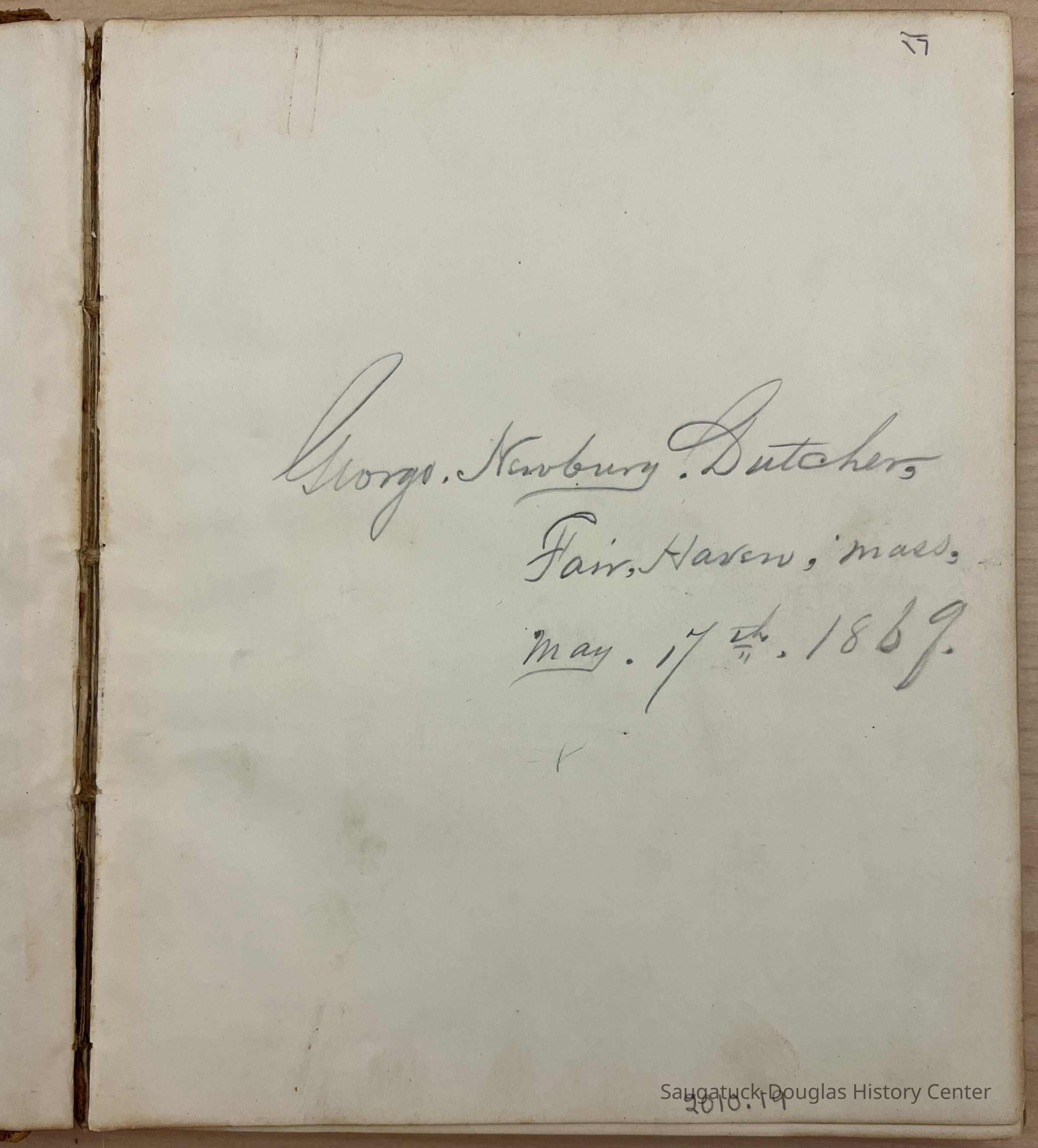 A transcription of much of this diary can be found in Kit Lane's "The Letters of William G. Butler and Other Tales of Saugatuck" Pavilion Press, 1994