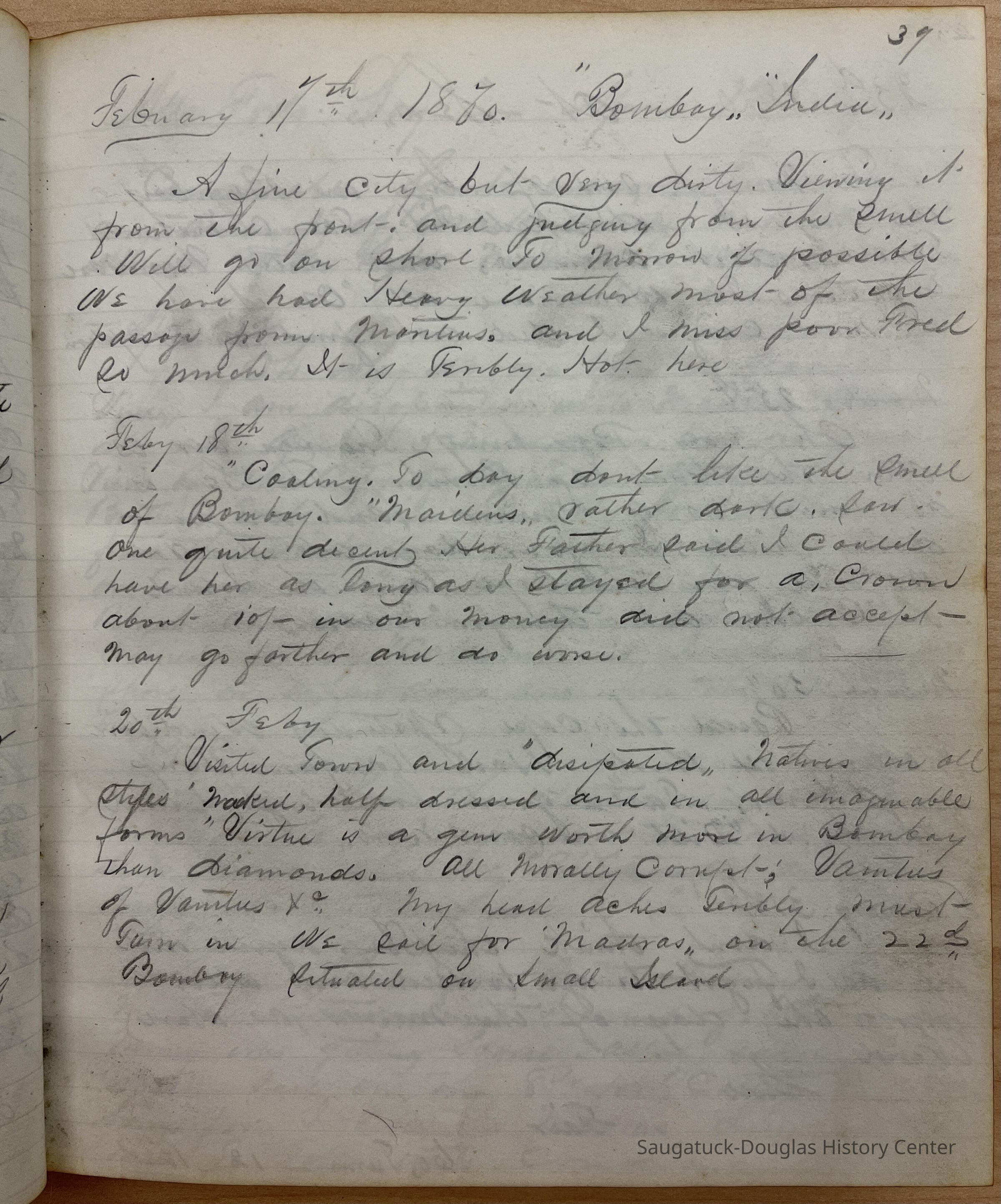 Diary of George Newbury Dutcher 1869 - 1870 of his trip around the world