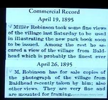 According to Jack Sheridan, this image may be the one reported in the April 19, 1895 Commercial Record as taken by Miller Robinson for an early tourist guide. The photo does not match the view printed in "Beauties of Saugatuck and Douglas, Michigan 1898" See 2006.01.01
