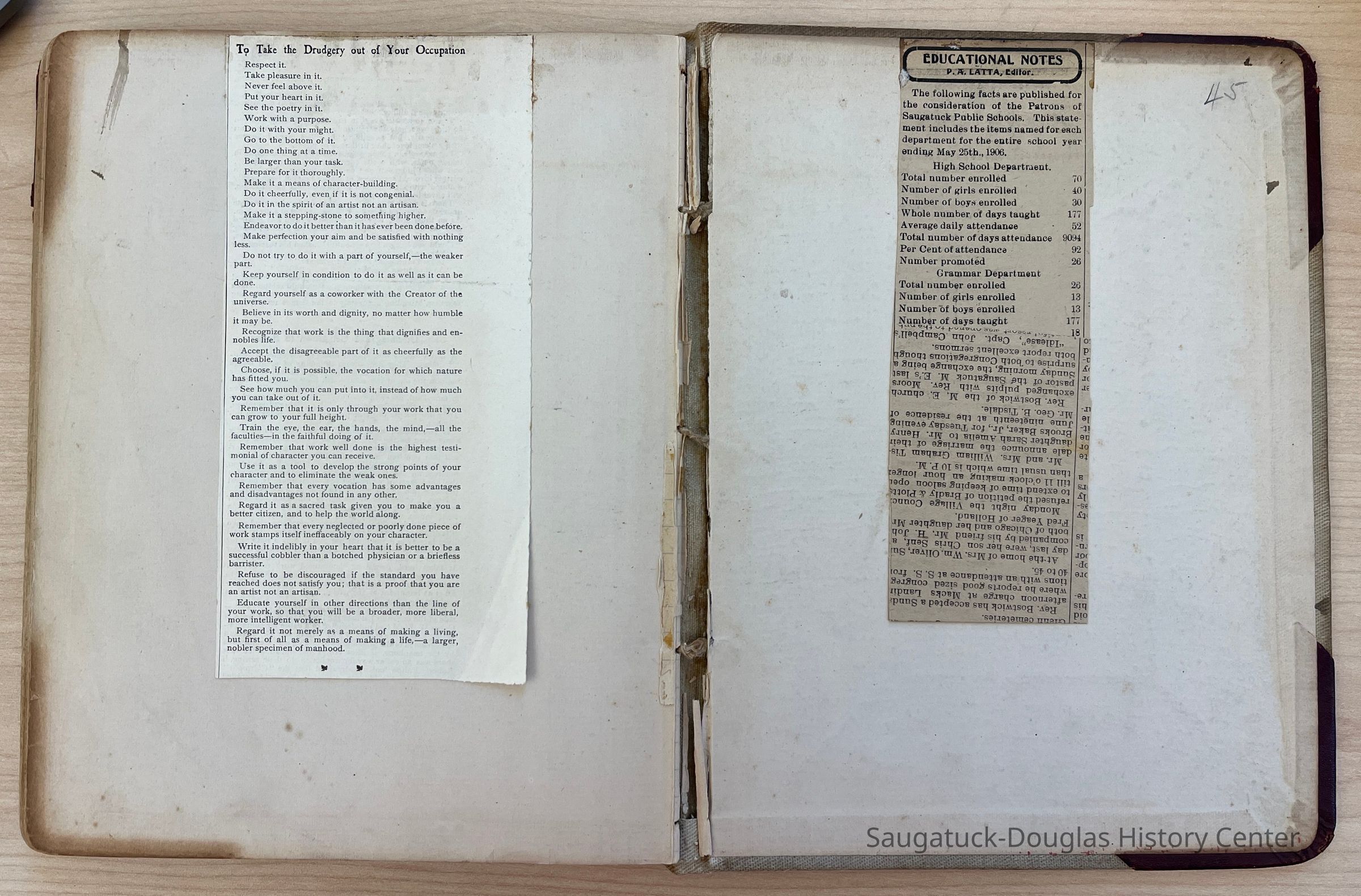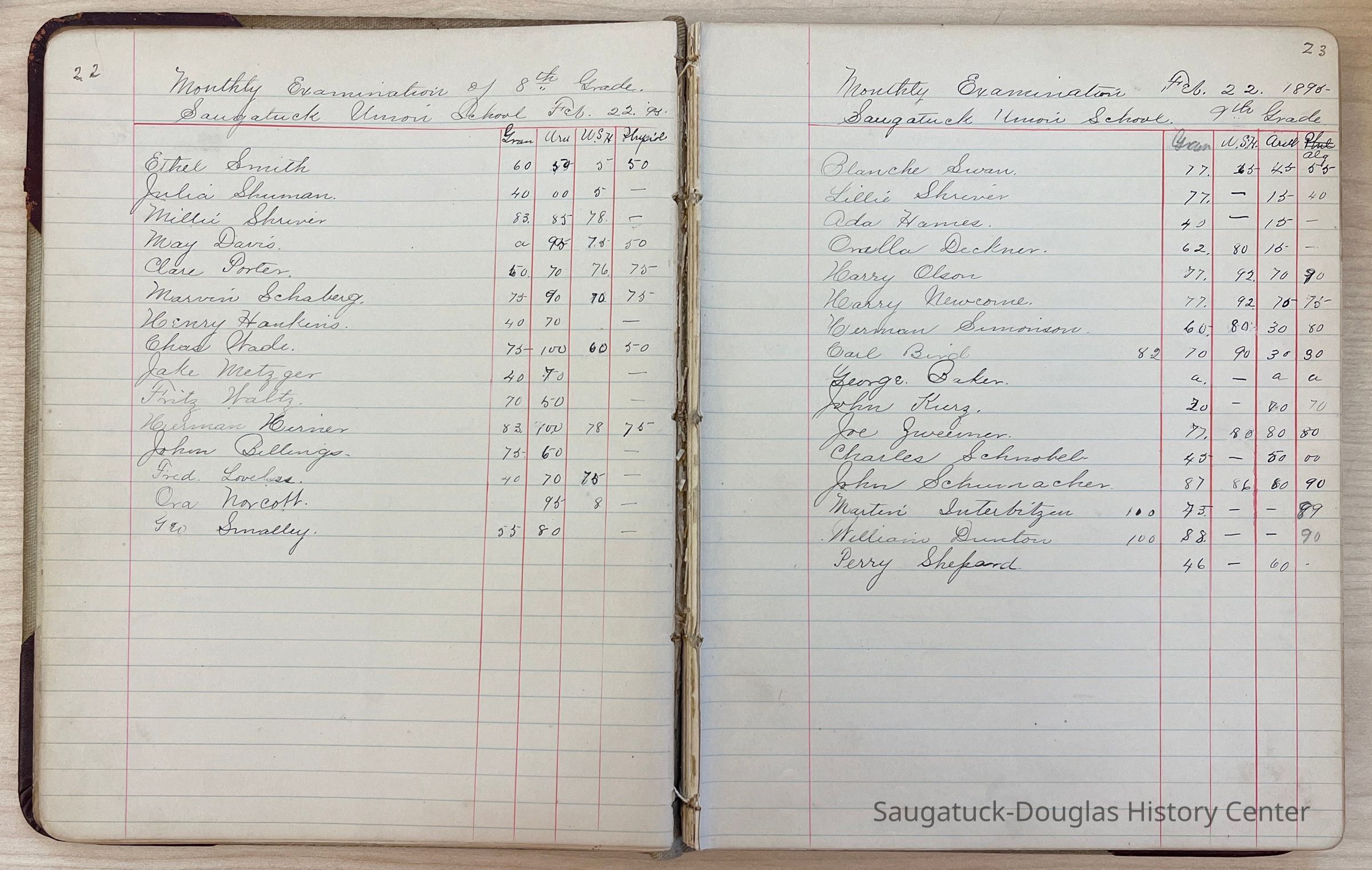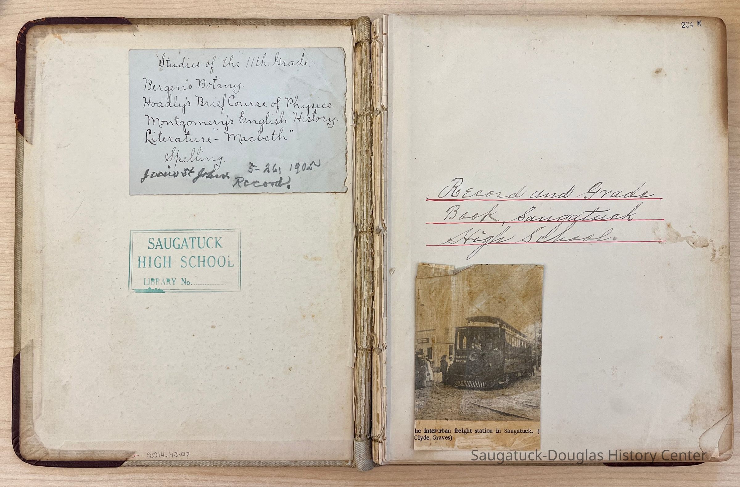 A handwritten record book of the grades of Saugatuck High School/Saugatuck Union School students from 1893 to 1906.