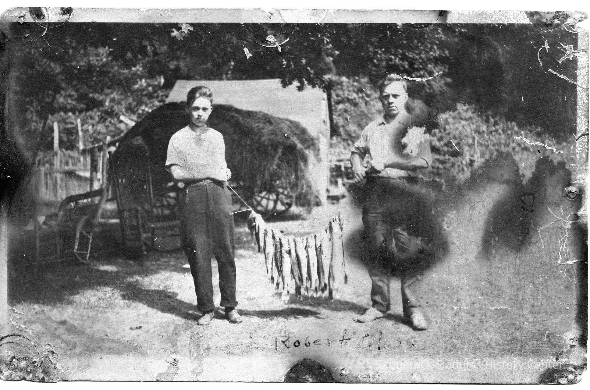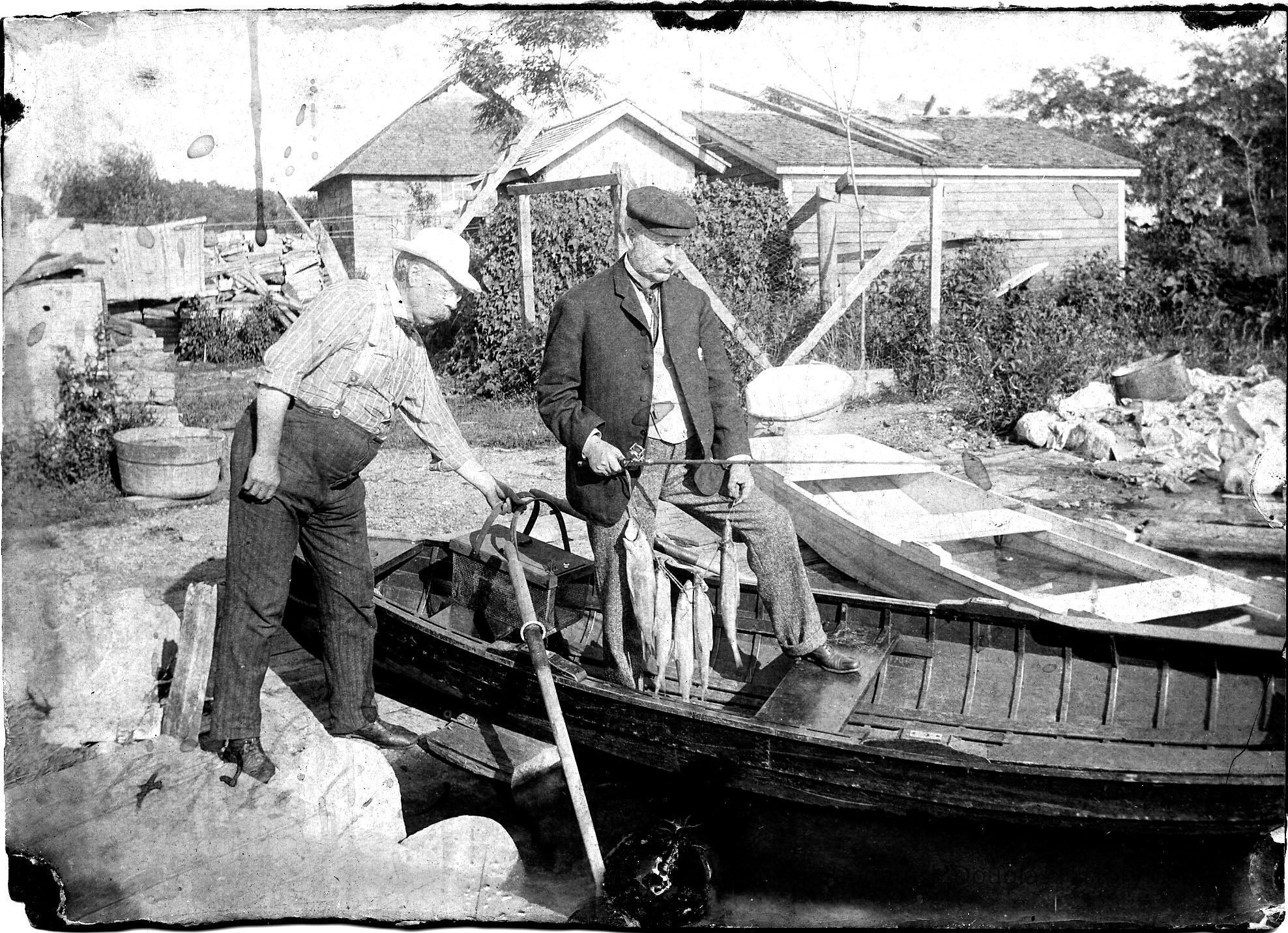 e. One gent in a rowboat, the other standing on the shore, 4x5.5"