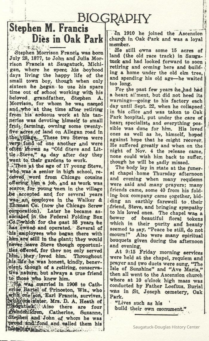 Francis, Stephen Morrison "Steve" 1877-1942Francis, Leo 1881-1895