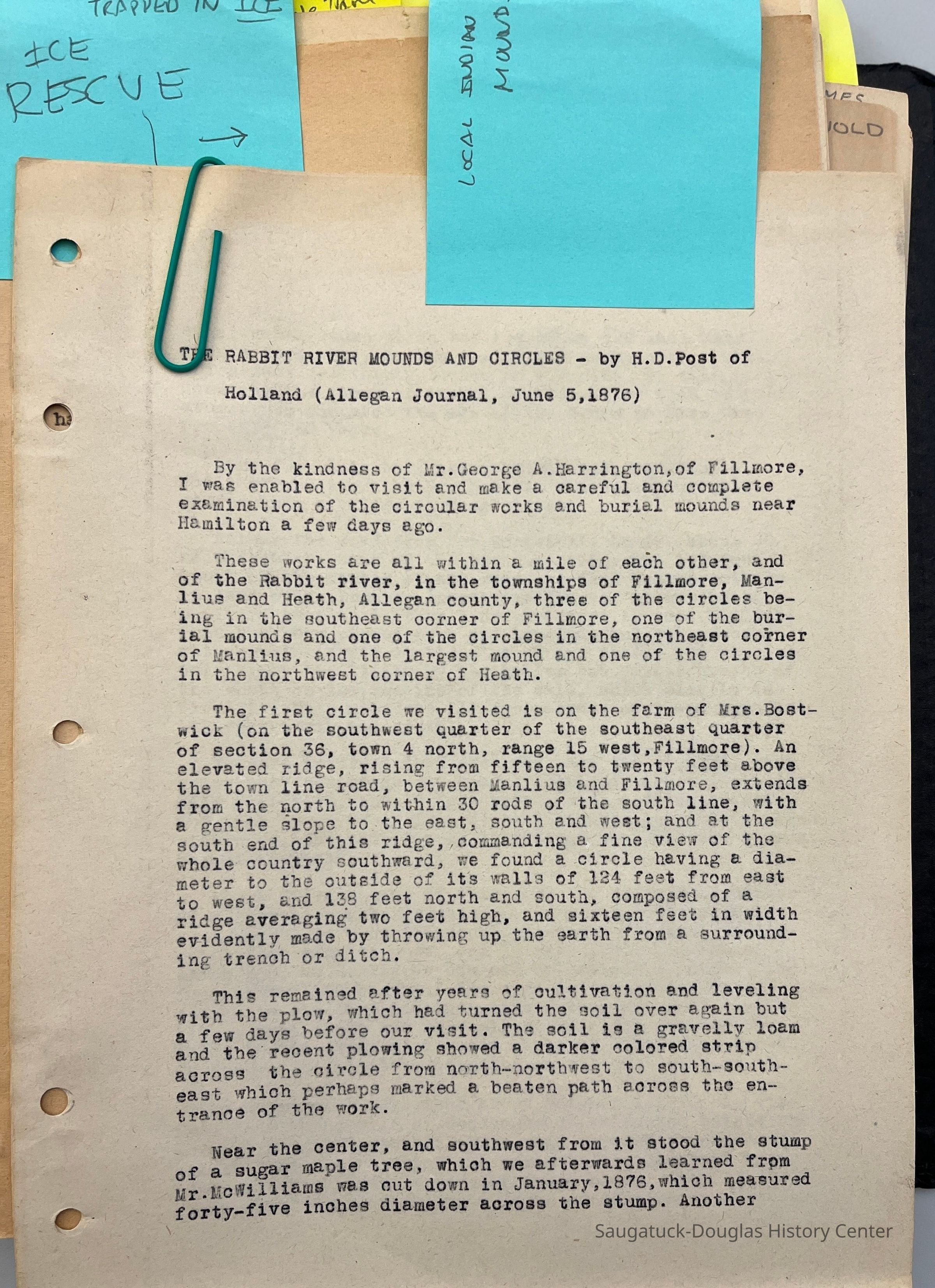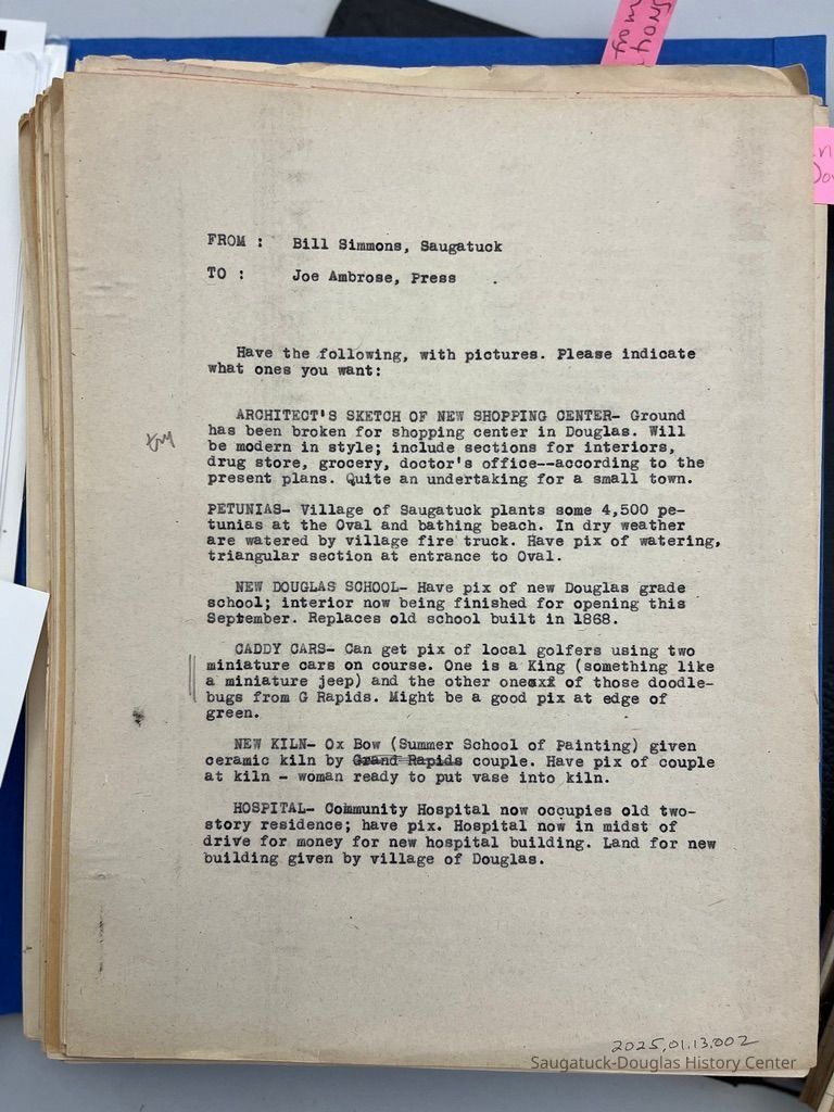 Dark Blue Folder - transcripts from Saugatuck-Douglas newspapers thought interesting enough to document.