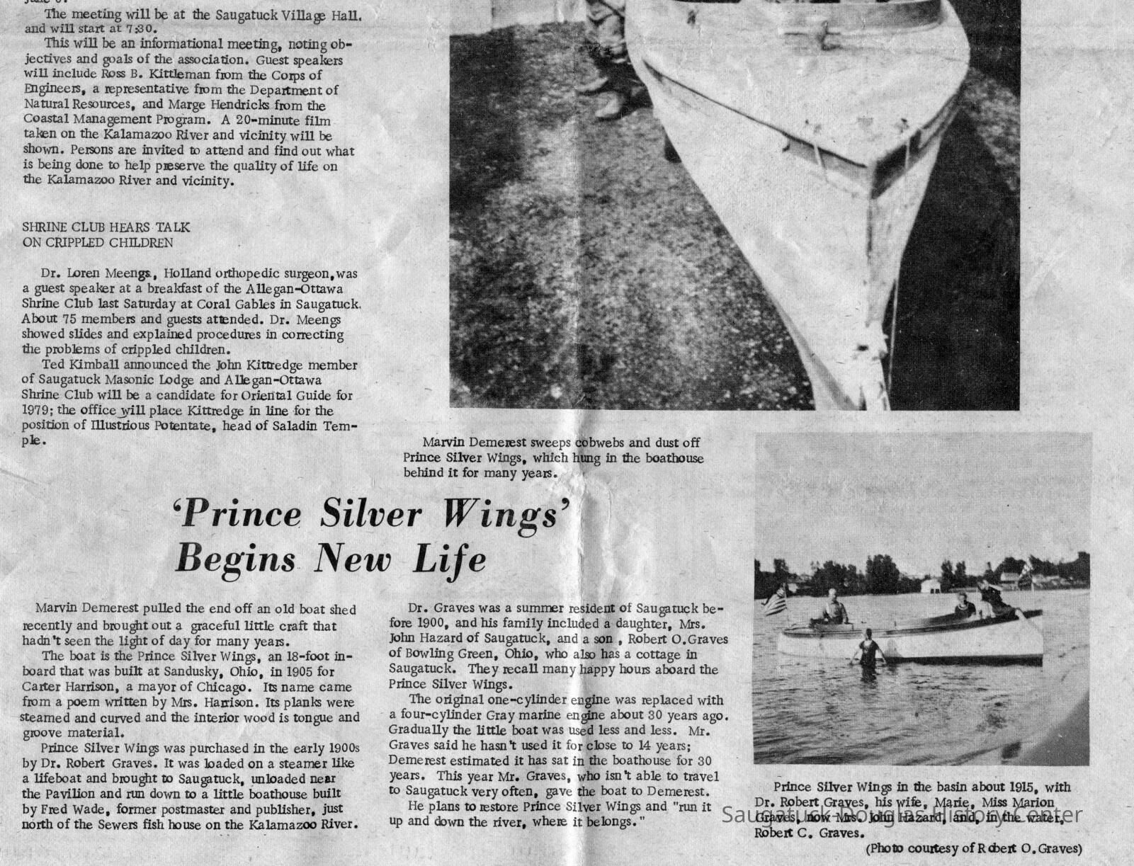 3 -- "Bow of old inboard engine boat which once belonged to mayor of Chicago. Stored in Marv. Demerest's garage - 263 Randolph, Douglas"