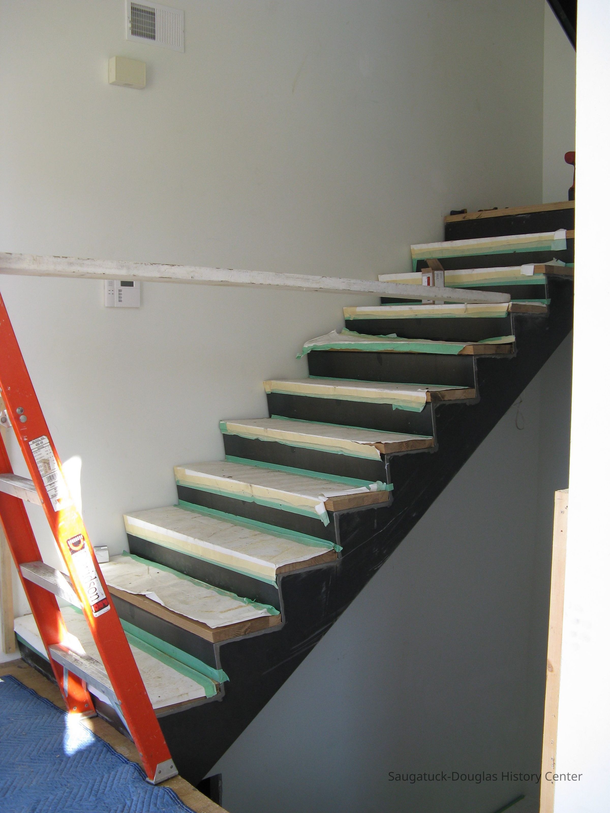 CD of 2008 photos of the Old School House interior staircase being built and trees on the property.