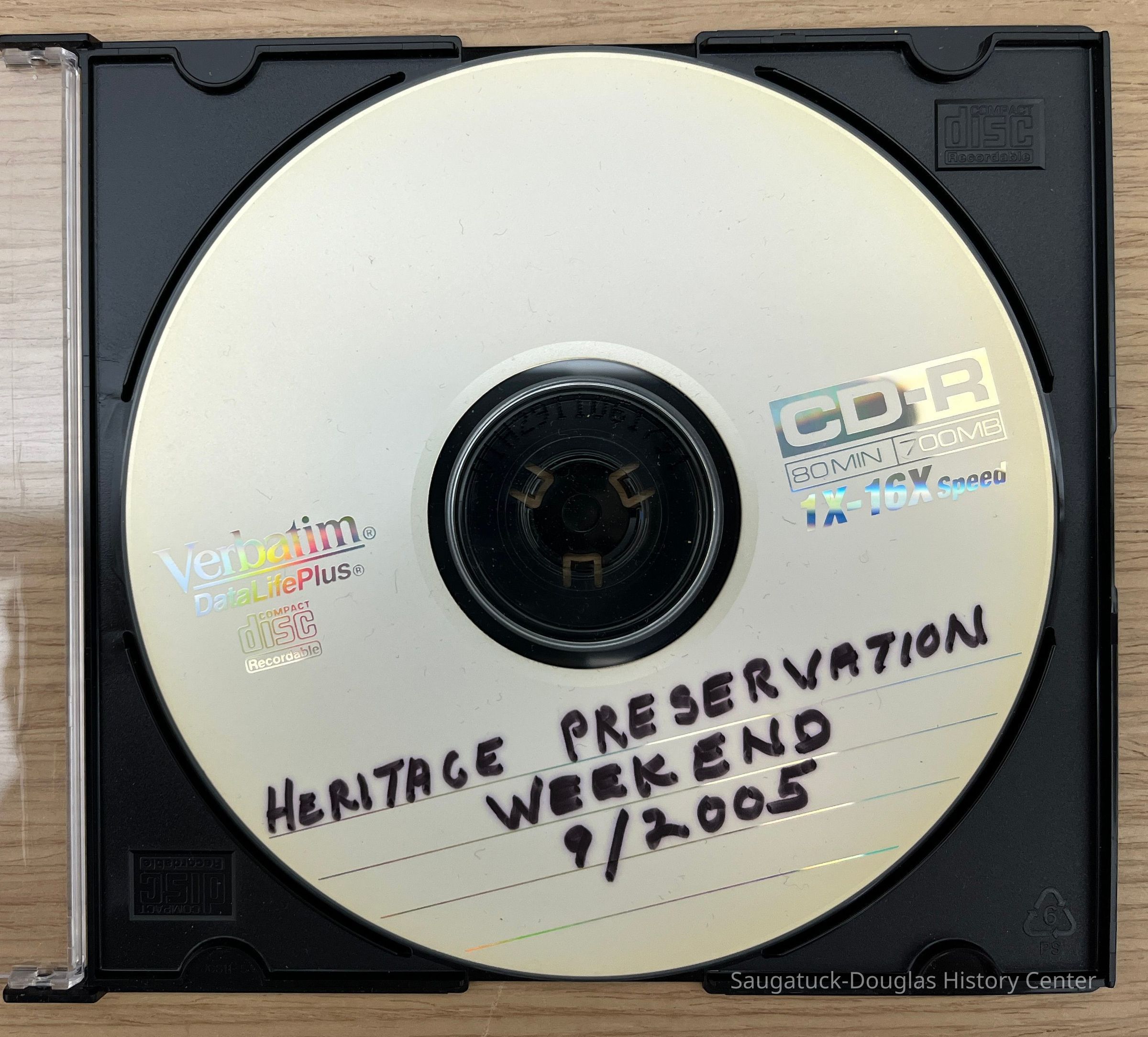 Compact Disc containing photos from the September 2005 SDHC Heritage Festival including many shots of SDHC members and winners at the Heritage Preservation Awards party at Petter Gallery, the Casco Band, docents and guests on the home tours, plein air painters, tour information booths and refreshment stops, a Douglas Dutchers base ball club game, trolley tours out to Pier Cove, Micheal Sweeney playing bongos at the Riverfire Spectacle night display, clothesline art show and folk musicians playing at Beery Field, the Duck tour amphibious vehicle R Knoll and Jim Schmiechen's "Victorians at Home" presentation at the SCA. Photos are between 700 KB and 1MB.